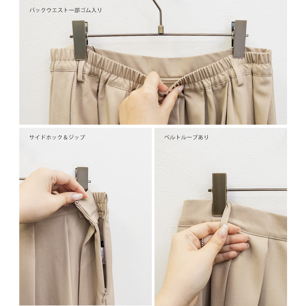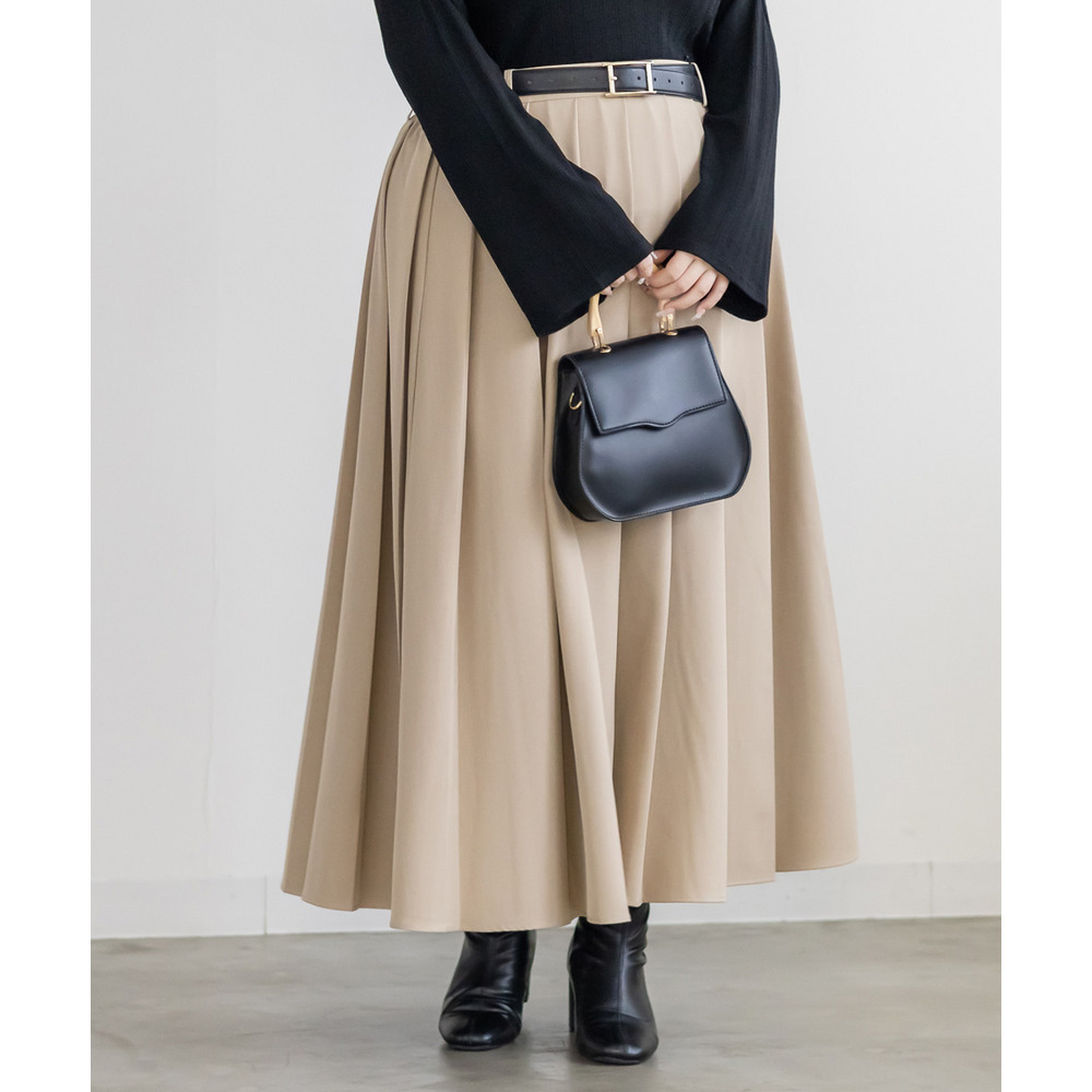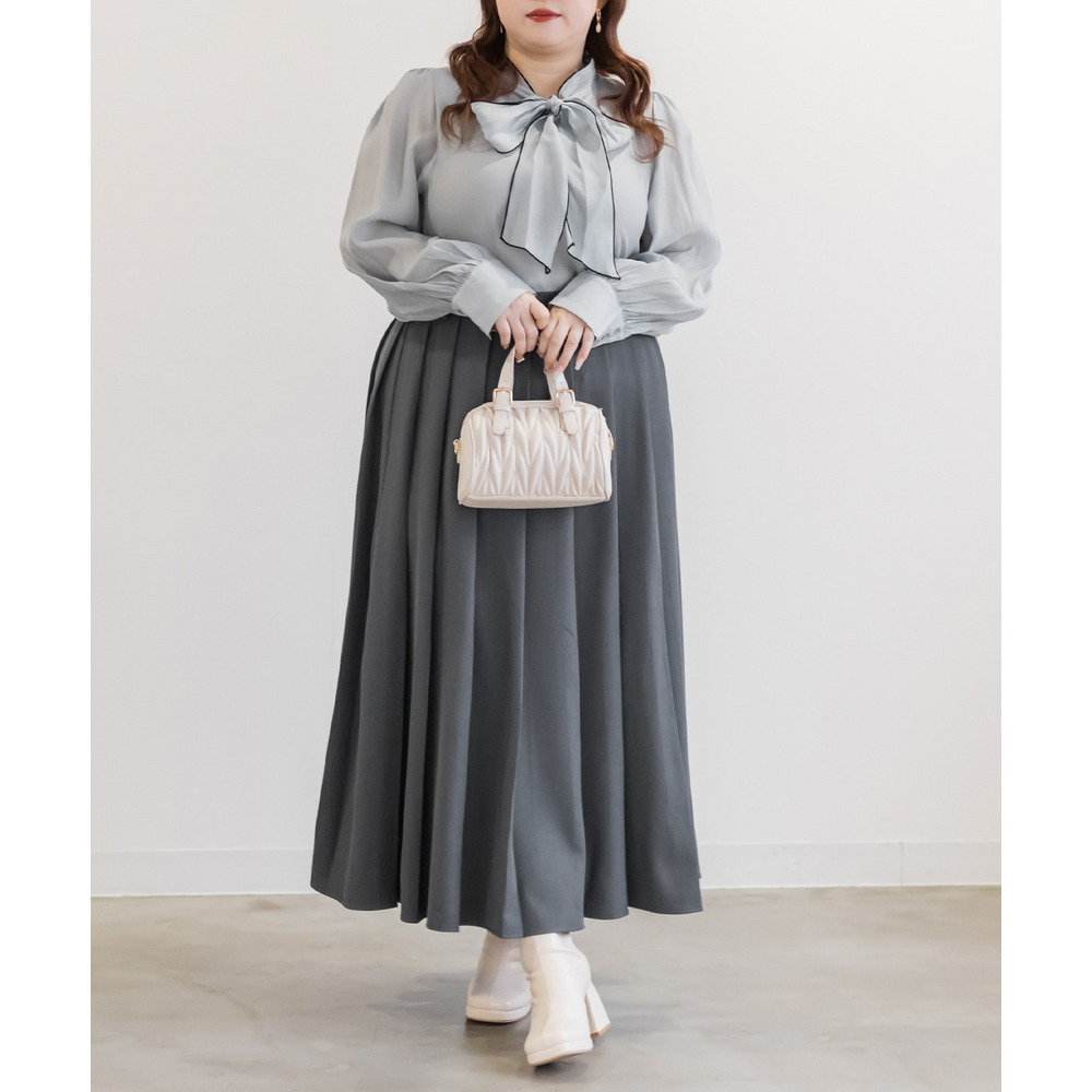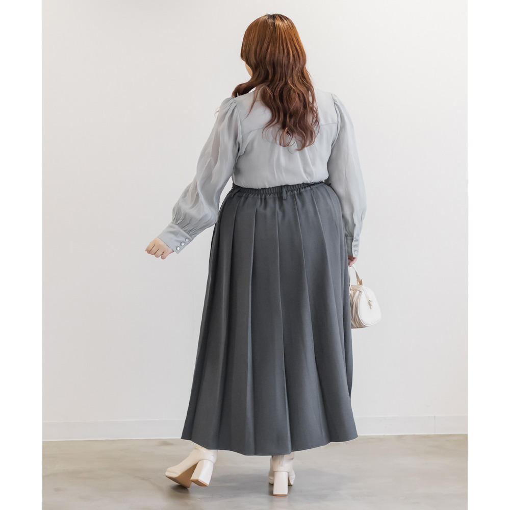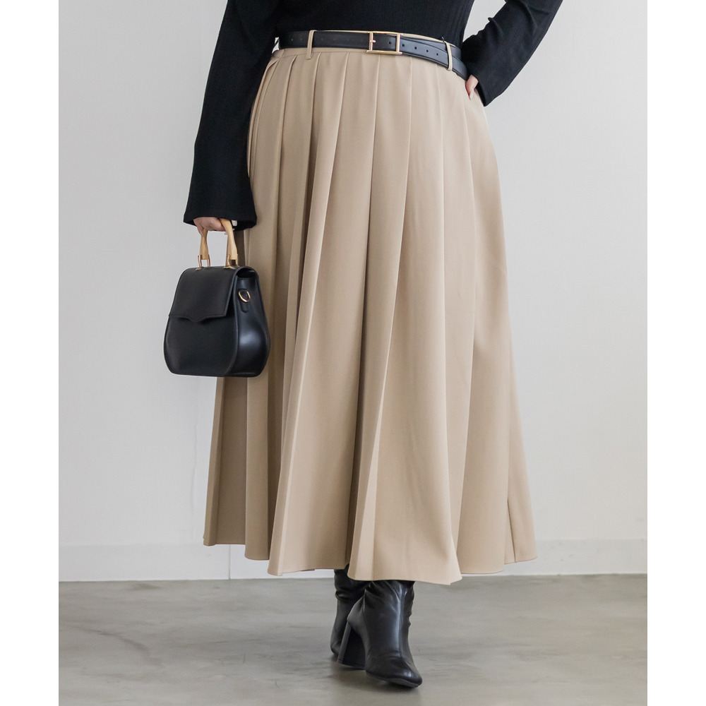 | 3Lサイズを着用しました。ウエストは後ろゴム仕様で楽に穿けるのに、プリーツの落ち感がきれいで上品見えします。トレンドコーデにぴったりです!ウエストからきれいに広がるプリーツスカートがお腹周りや腰回りをカバーしてくれて、ブーツ合わせはもちろん、フラットシューズでもヒールでもバランスよく合わせられそうです!きれいめにもカジュアルにも使えて、オンオフ問わず活躍してくれるスカートです! |
