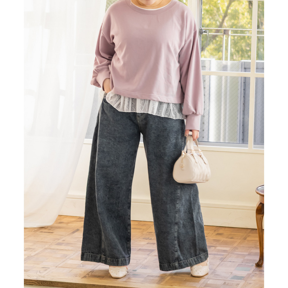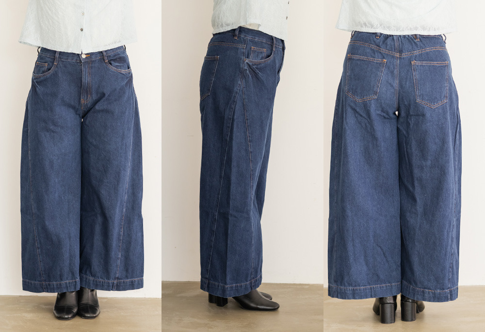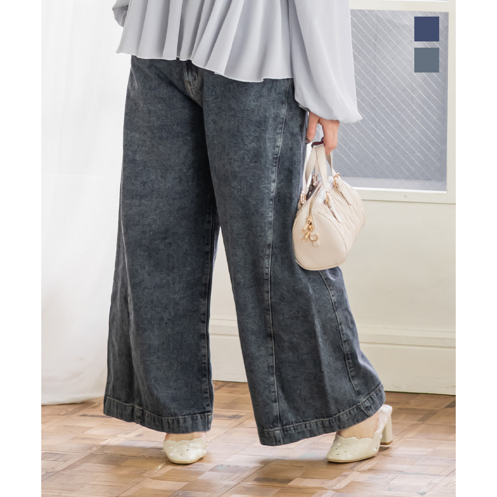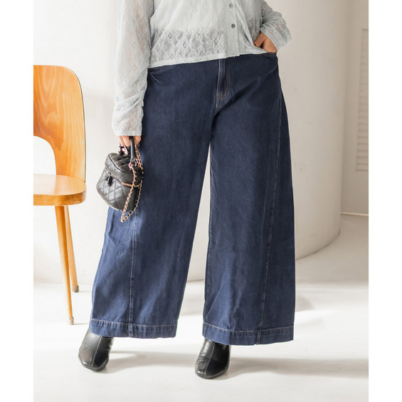 | 3Lサイズを着用して楽に履けました。かなりワイドシルエットなのと後ろゴムで窮屈感の無い着心地でした。今っぽいルーズ感でトレンドコーデにぴったりです◎シルエットも可愛いですが、どちらのカラーも今っぽく着回し力の高いアイテムです。脚のラインを拾わないワイド感なので、トップスをコンパクトめにすると着痩せ効果も抜群でおすすめです! |