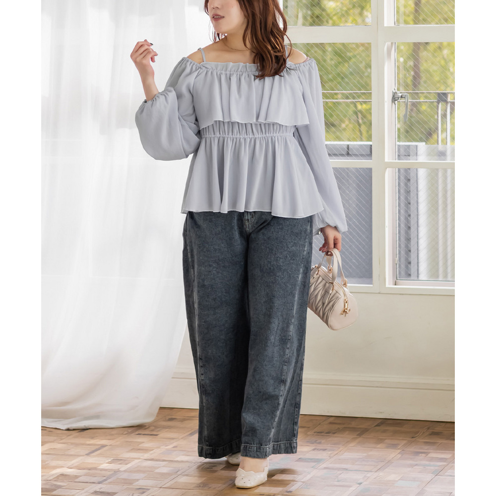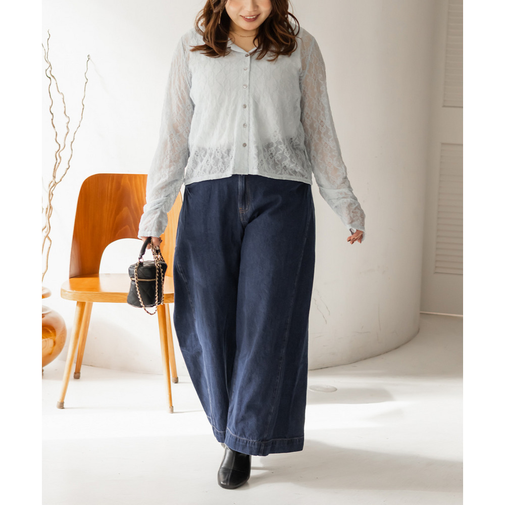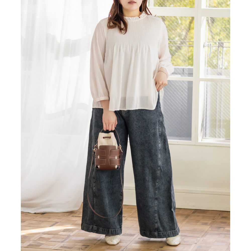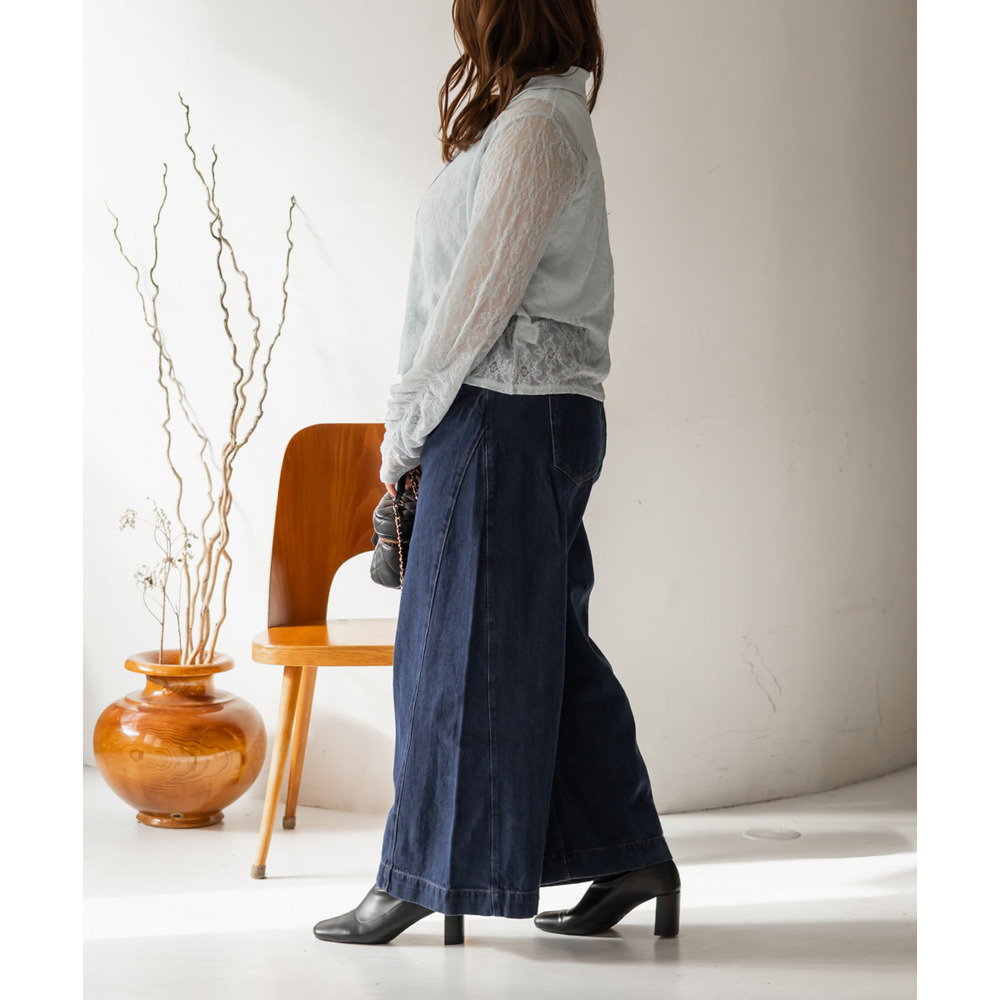 | 3Lサイズを着用して楽に履けました。かなりワイドシルエットなのと後ろゴムで窮屈感の無い着心地でした。今っぽいルーズ感でトレンドコーデにぴったりです◎シルエットも可愛いですが、どちらのカラーも今っぽく着回し力の高いアイテムです。脚のラインを拾わないワイド感なので、トップスをコンパクトめにすると着痩せ効果も抜群でおすすめです! |