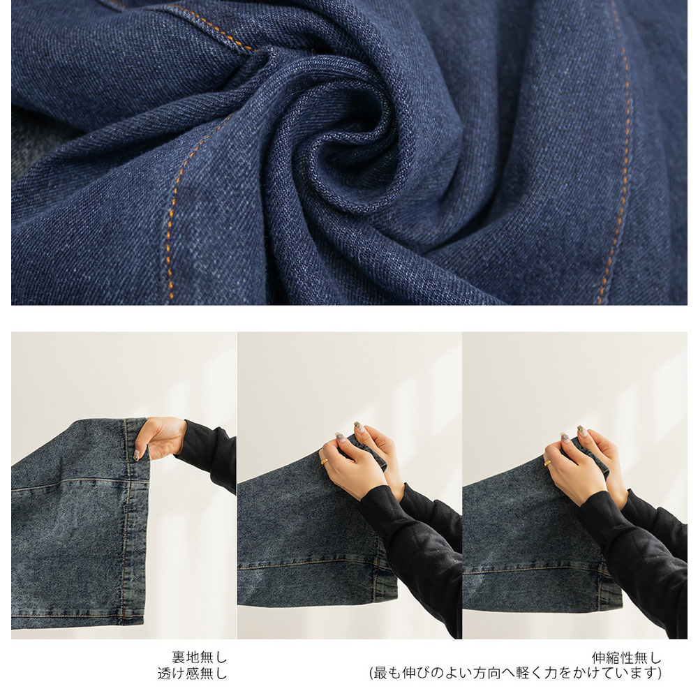 | 素材 | ■素材 綿100% ■裏地・透け感・伸縮性 裏地無し、透け感無し、伸縮性無し ■ポケット 有り ■生地感 しっかりとしたデニム素材です。 |