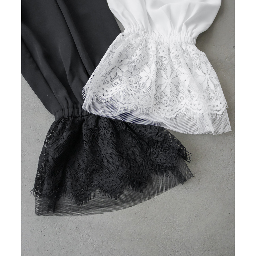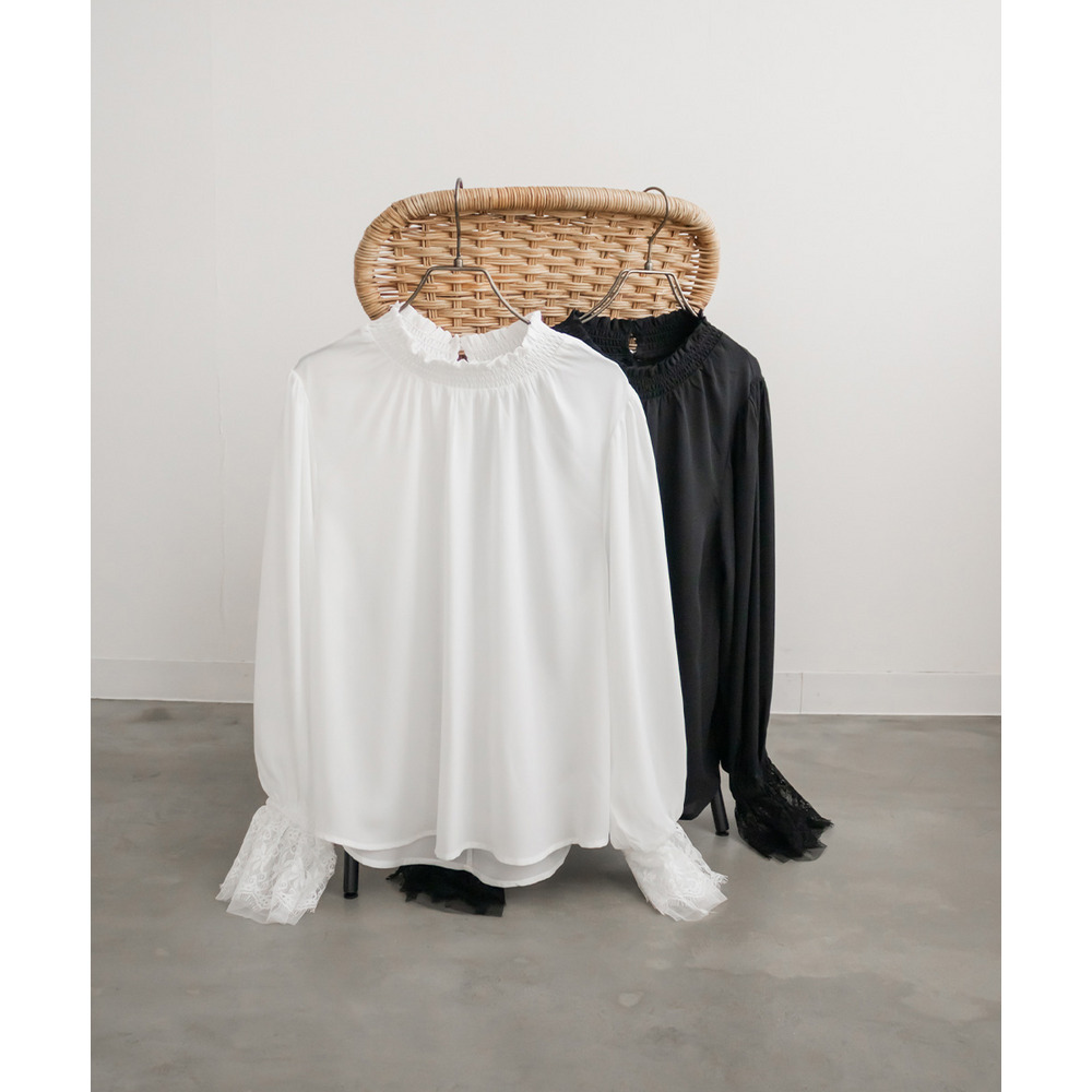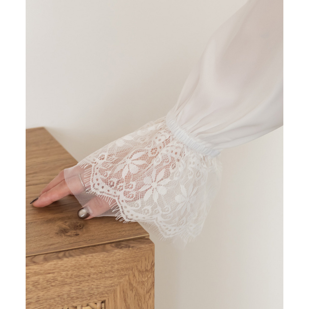 CLETTEオリジナル袖レースシャーリング襟ブラウス