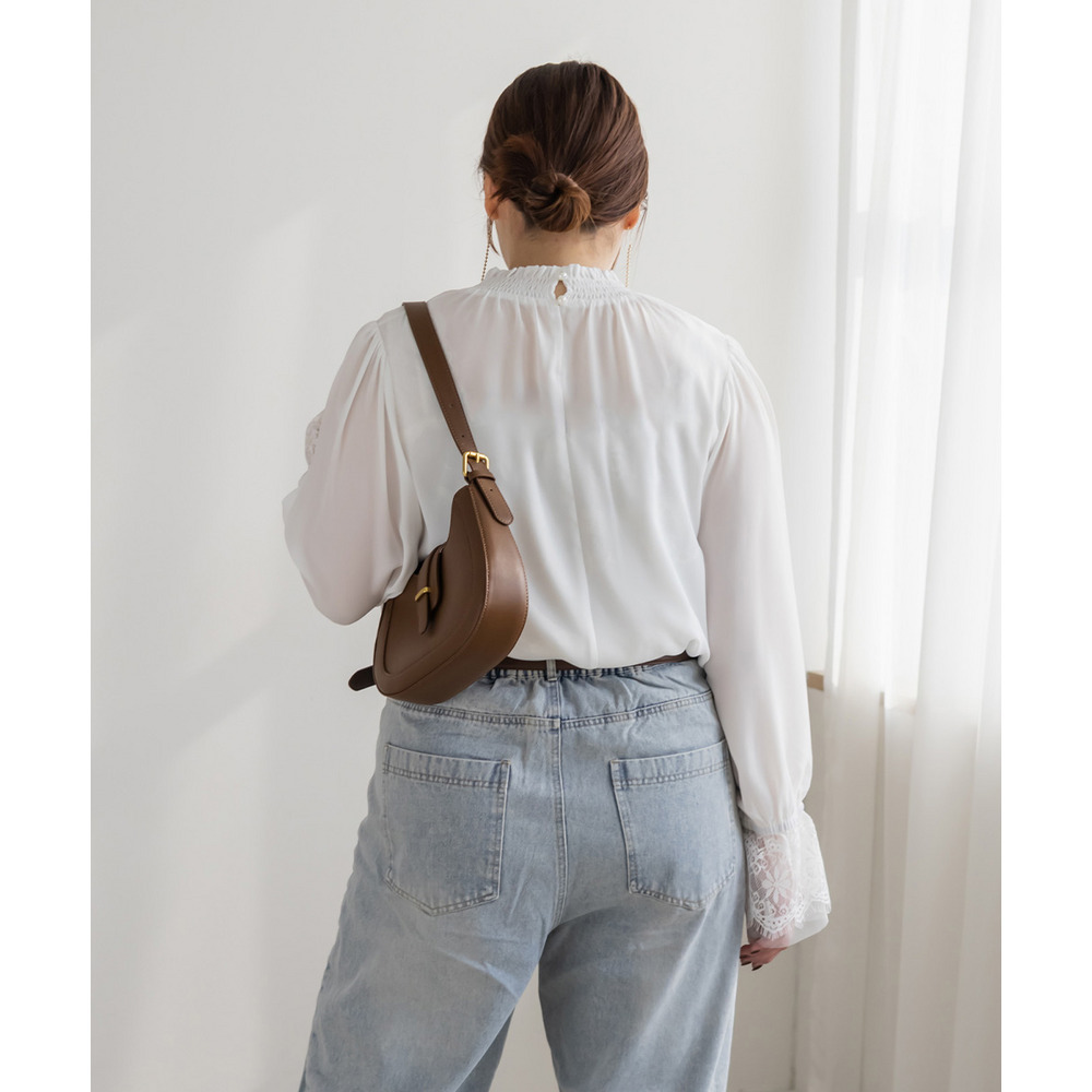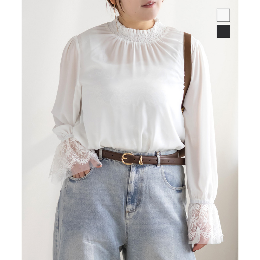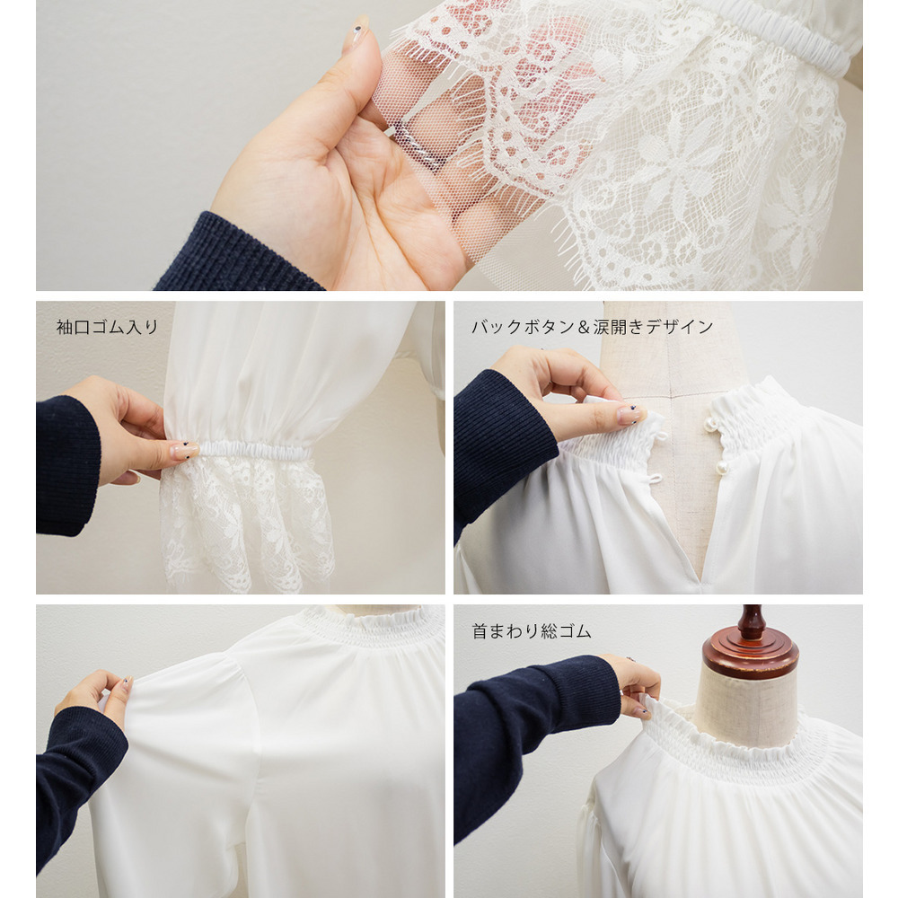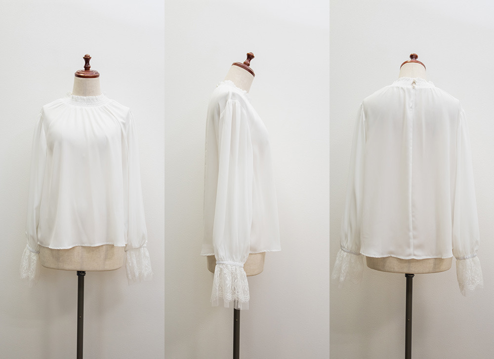 CLETTEオリジナル袖レースシャーリング襟ブラウス