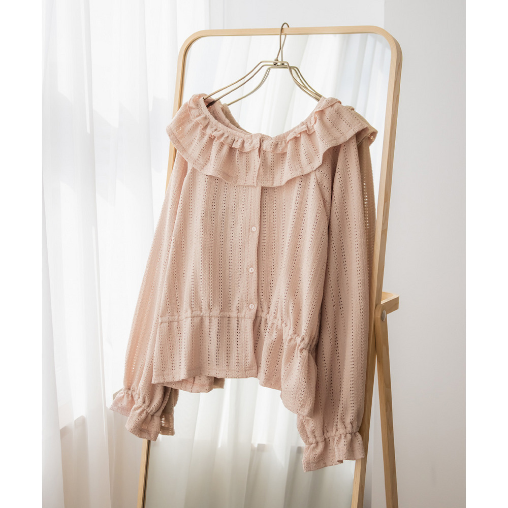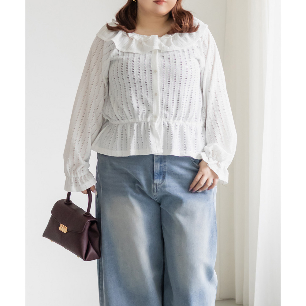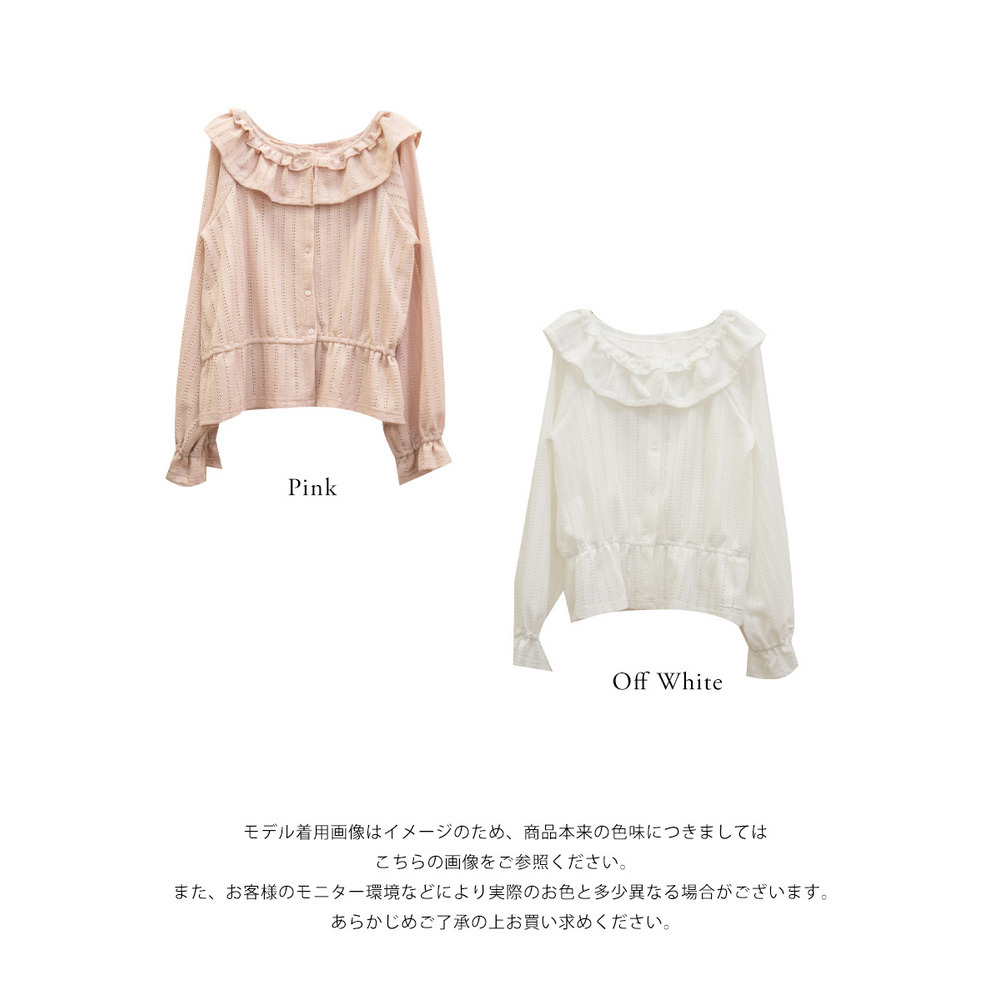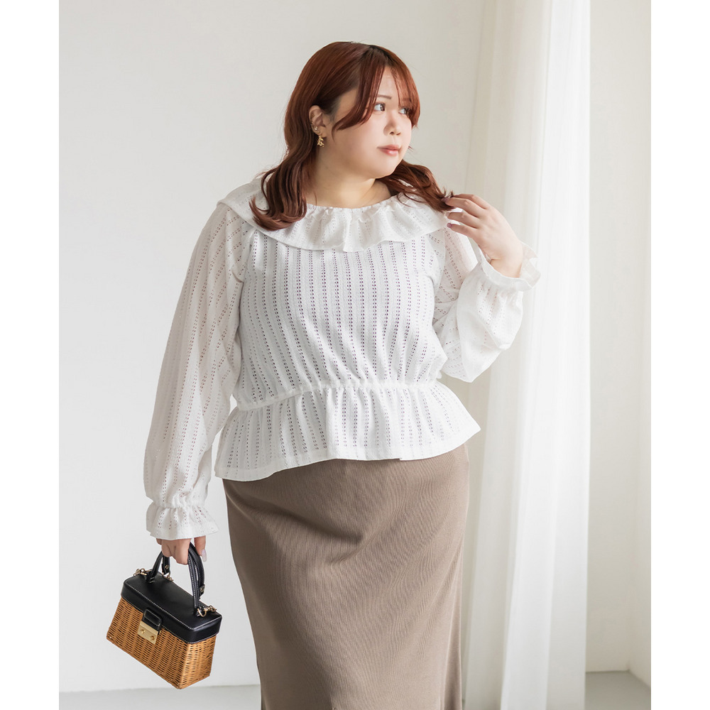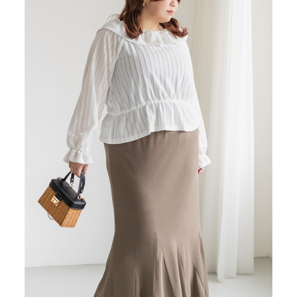 3Lサイズを着用しました。身頃や腕まわりに程よくゆとりがあり、全体的にちょうどいい着心地でした。フリルデザインがさりげなく華やかで、着るだけでフェミニンな雰囲気に仕上がるのが嬉しいポイントです♪ 前後2WAYで着られるデザインなので、その日のコーデや気分に合わせて着こなしを変えられるのも魅力でした。ボタンを前にしてカーディガンとして羽織るのはもちろん、プルオーバー風に着るのも可愛くておすすめです◎ パンツにもスカートにも合わせやすく、デイリーコーデに取り入れやすいアイテムだと思いました。