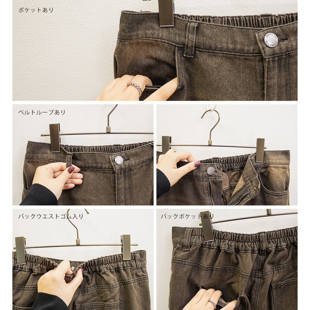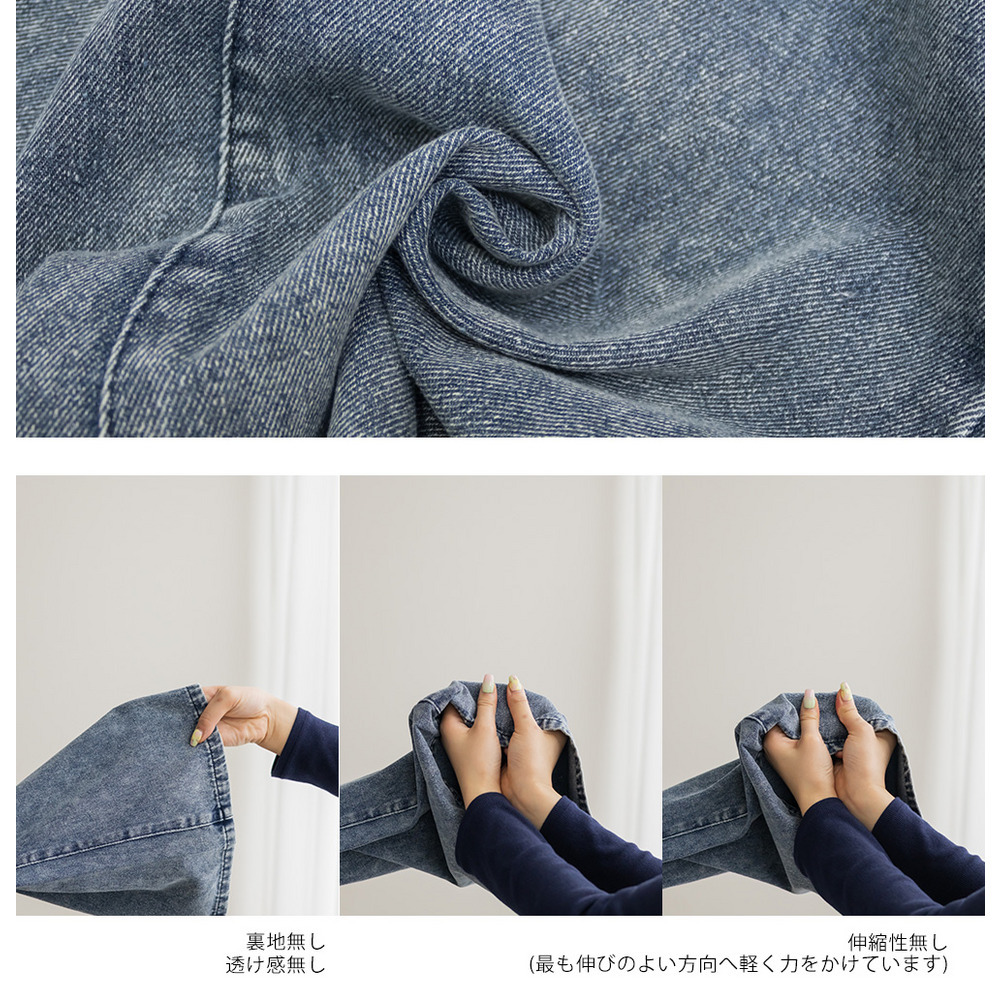 | 素材 | ■素材 綿50%、ポリエステル22%、レーヨン21%、ナイロン3%、ポリウレタン2%、再生繊維(セルロース)2% ■裏地・透け感・伸縮性 裏地無し、透け感無し、伸縮性無し ■ポケット 有り ■生地感 一般的なデニム素材です。 |