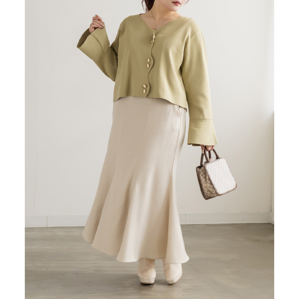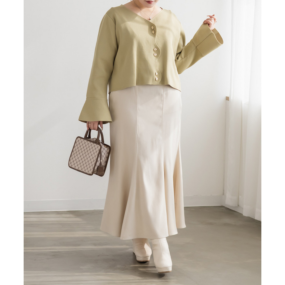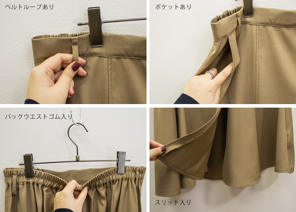 | 3Lサイズを着用して丁度いいサイズ感でした。いつも通りのサイズ選びで問題なさそうです。やわらかい生地でさらっと揺れ感が綺麗なスカートでした。ウエストベルトがウエストマークで引き締めてくれます◎別のベルトに変えたりベルト無しコーデも楽しめます!すっきり見えるパネル切替デザインなのでトップスインしても綺麗にまとまります!オールシーズン使えるので1枚あれば色々なシーンで活躍できそうです。 |