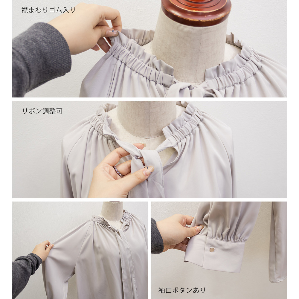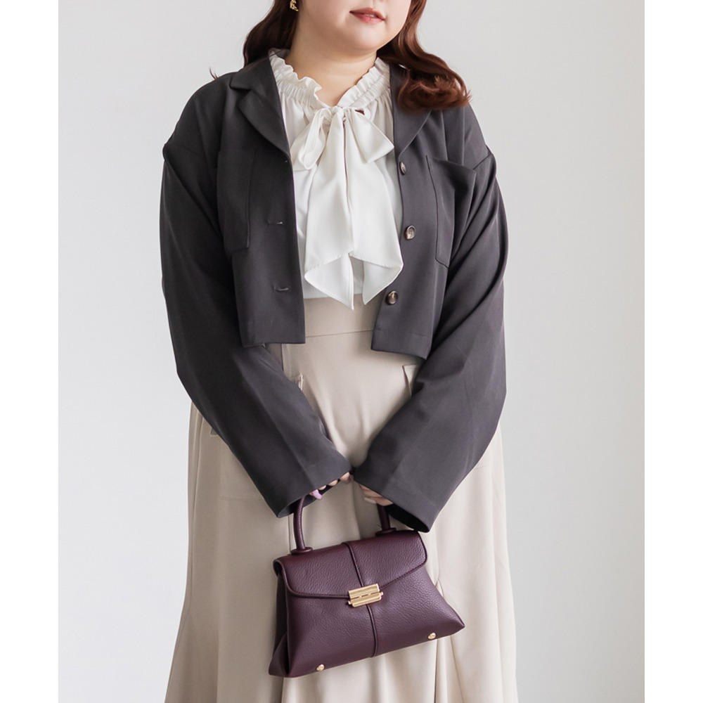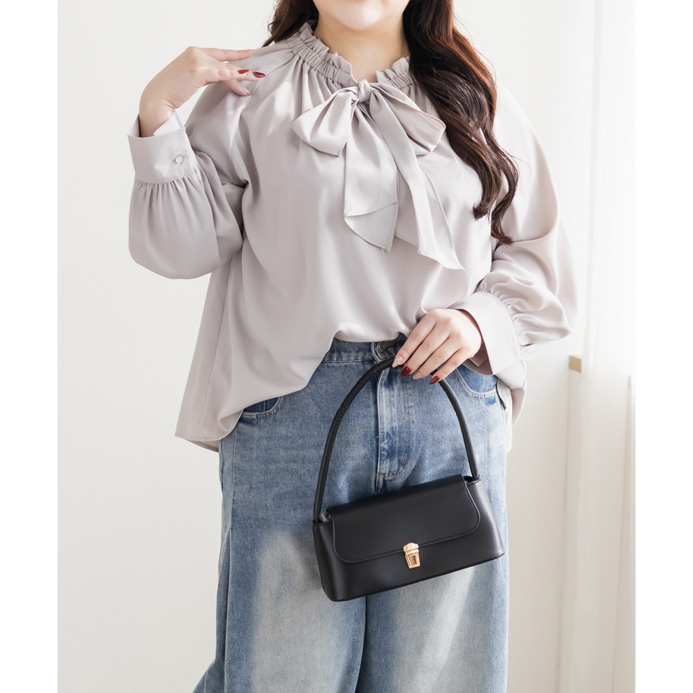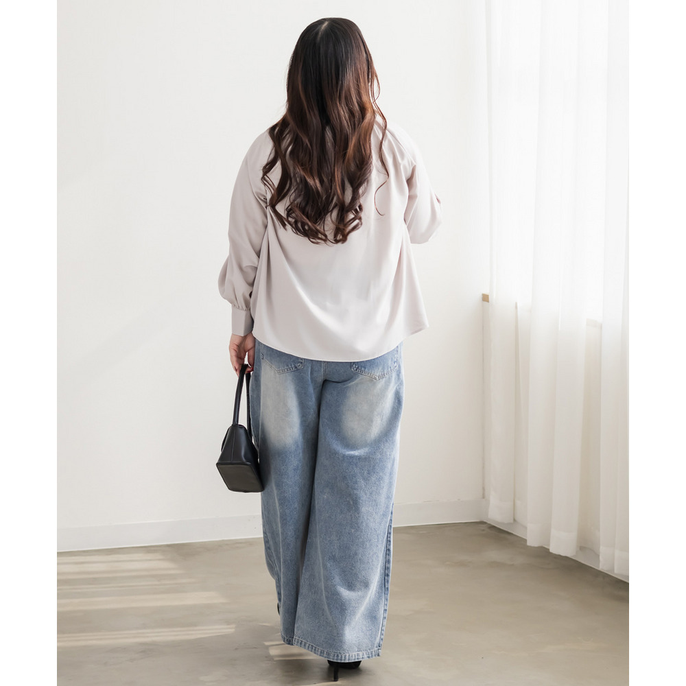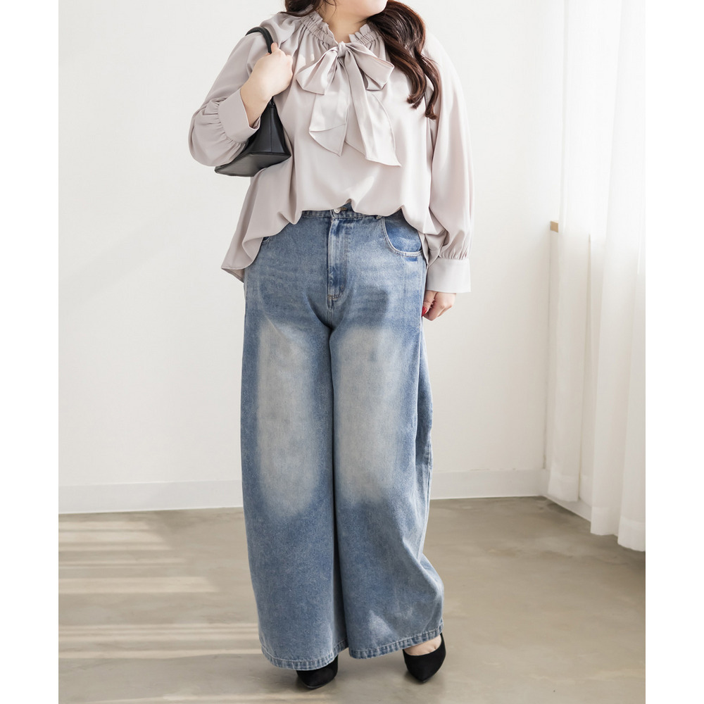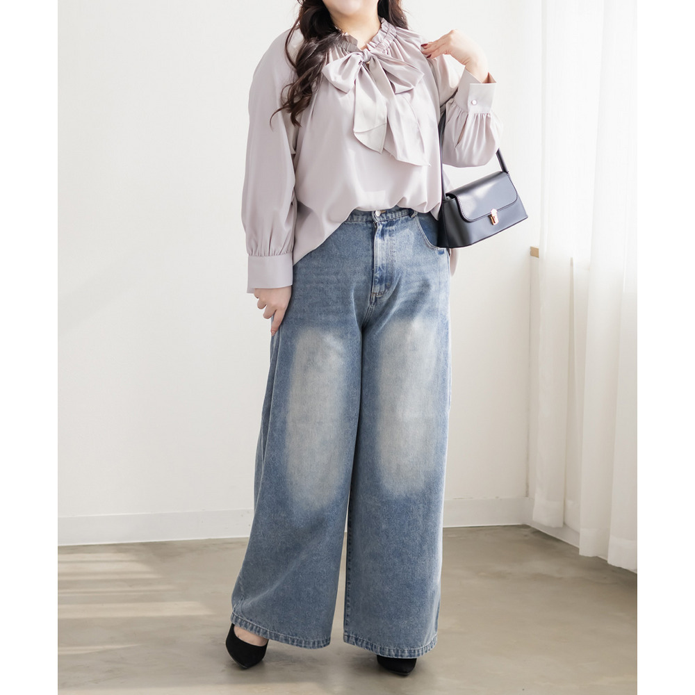| 3Lサイズを着用しました。身頃や腕まわりに程よくゆとりがあり、全体的にちょうどいい着心地でした。首元のボウタイとフリルギャザーが華やかな印象で、1枚でコーデが決まる主役ブラウスです♪ ふんわりとしたシルエットで気になる体型を自然にカバーしてくれるのも嬉しいポイントでした。ボウタイは結び方で雰囲気を変えられるので、きれいめにもフェミニンにもアレンジできます◎ パンツ合わせできちんと感のあるスタイルに、スカート合わせでより華やかな着こなしにするのもおすすめです。オンオフどちらにも活躍してくれるブラウスだと思いました。 |
