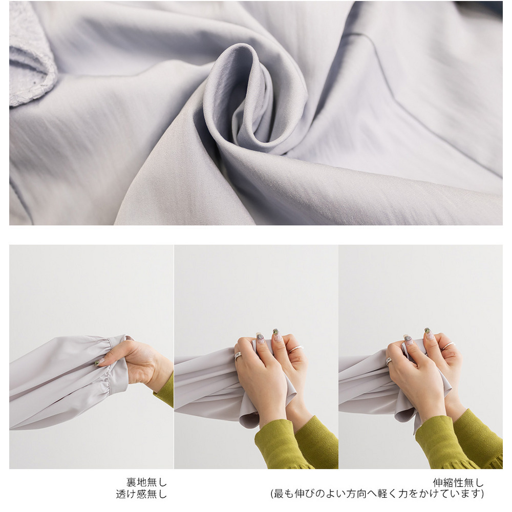 | 素材 | ■素材 ポリエステル100% ■裏地・透け感・伸縮性 裏地無し、透け感無し、伸縮性無し ■ポケット 無し ■生地感 さらっとした布帛素材。 |