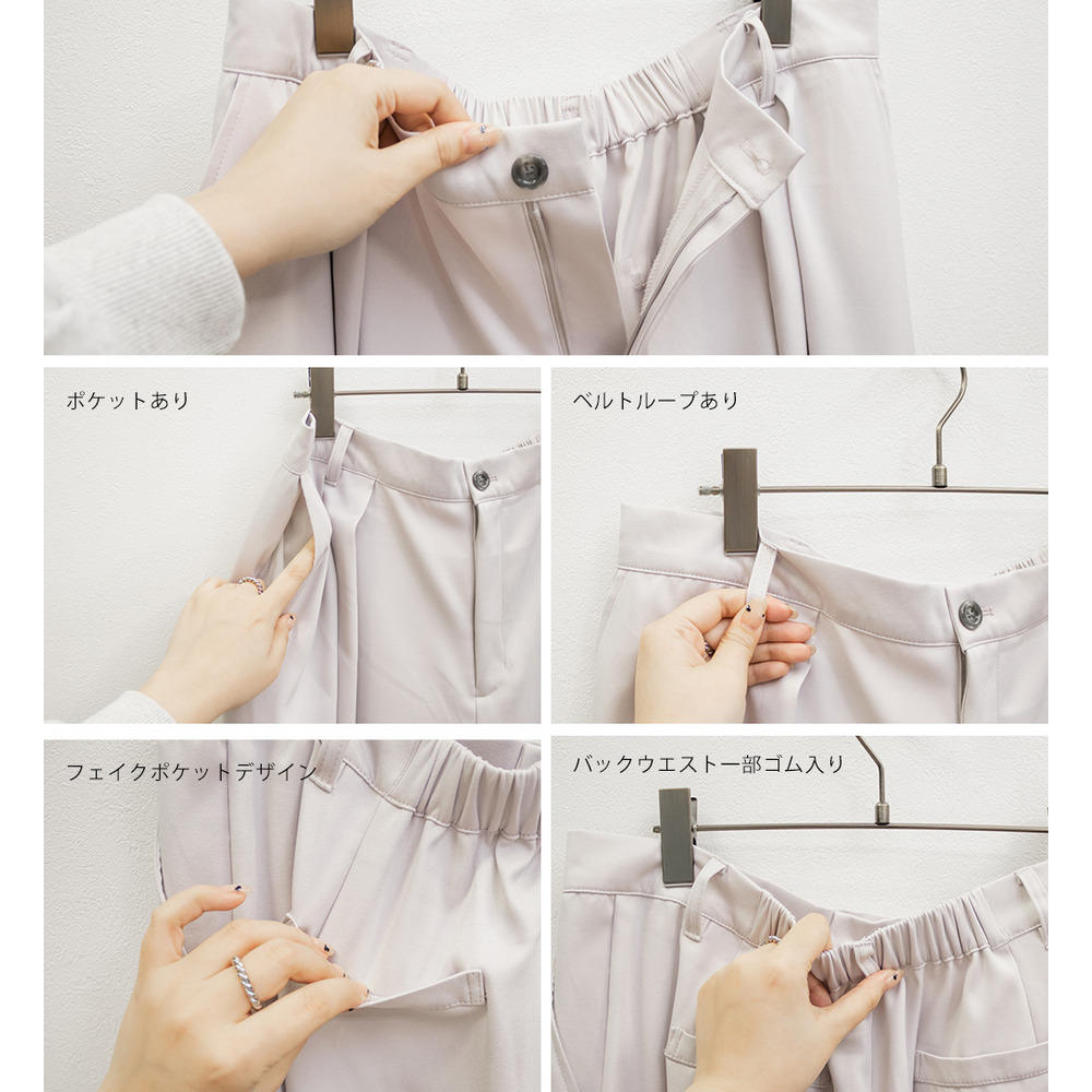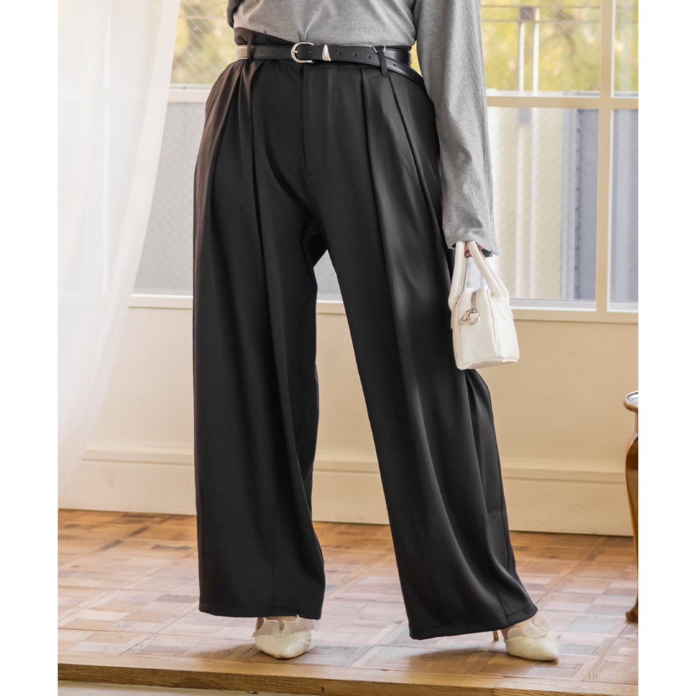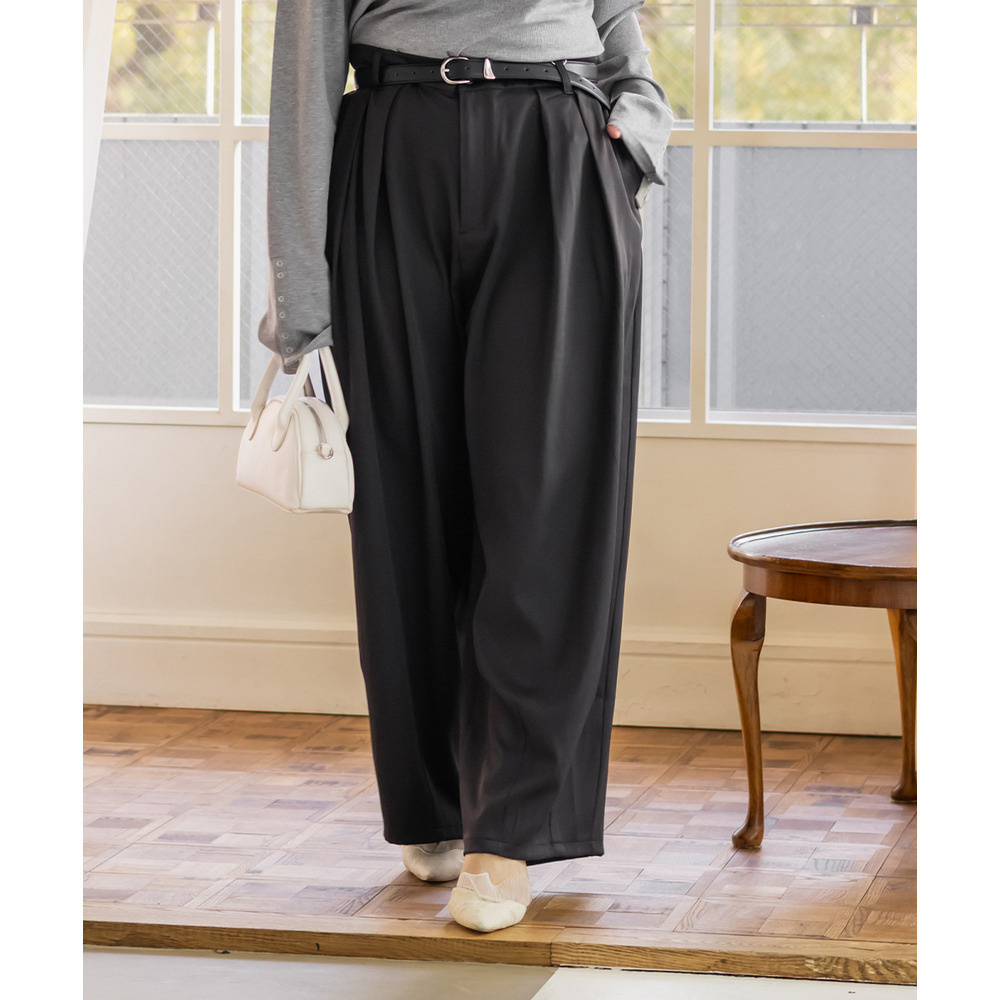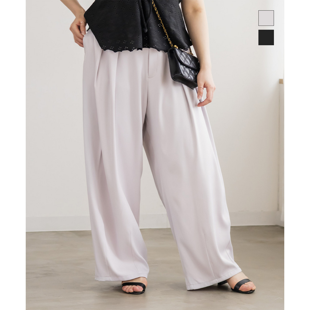 | 3Lサイズを着用してゆとりを持って着られてちょうどよかったです。いつも通りのサイズ選びで問題なさそうです◎大人っぽくすっきり見えるシルエットで、ワイドなので楽ちんな着心地です!フロントのタックのデザインが可愛くて、シンプルだけどお洒落な印象にもなれるアイテムです。フェミニンなトップスとも、シンプルなトップスとも相性がいいのでおすすめです。ブラックは同生地のジャケットとセットアップが可能です!シルエットがトレンド感たっぷりで、オールシーズン使える便利な1枚です! |