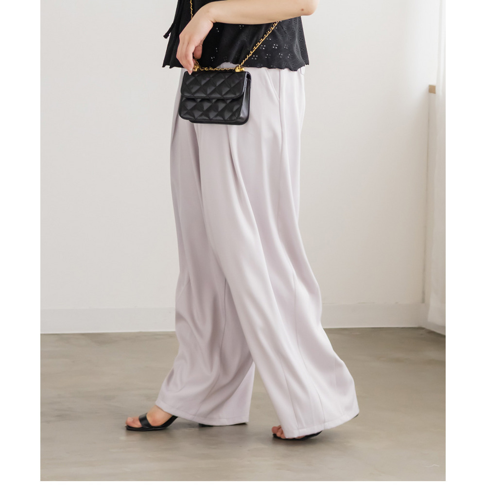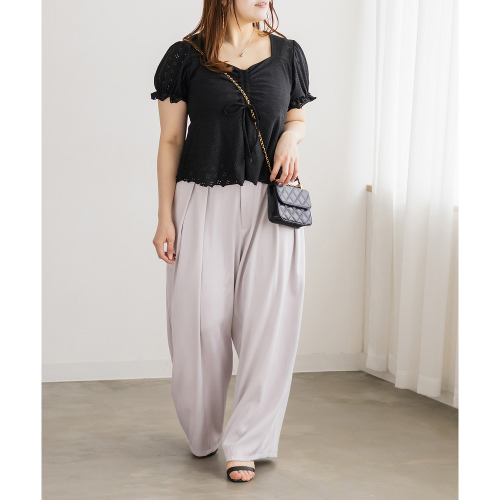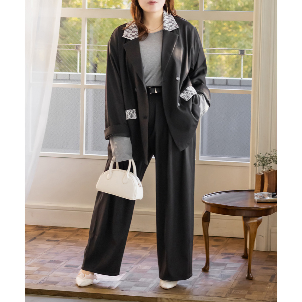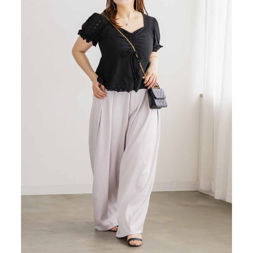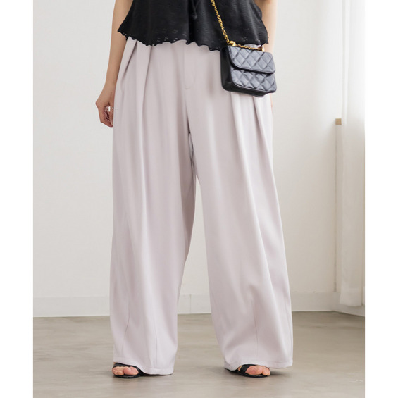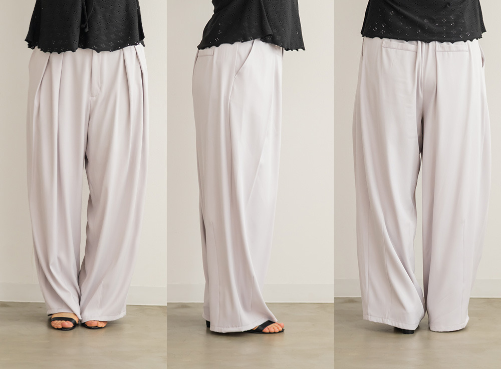 | 3Lサイズを着用してゆとりを持って着られてちょうどよかったです。いつも通りのサイズ選びで問題なさそうです◎大人っぽくすっきり見えるシルエットで、ワイドなので楽ちんな着心地です!フロントのタックのデザインが可愛くて、シンプルだけどお洒落な印象にもなれるアイテムです。フェミニンなトップスとも、シンプルなトップスとも相性がいいのでおすすめです。ブラックは同生地のジャケットとセットアップが可能です!シルエットがトレンド感たっぷりで、オールシーズン使える便利な1枚です! |