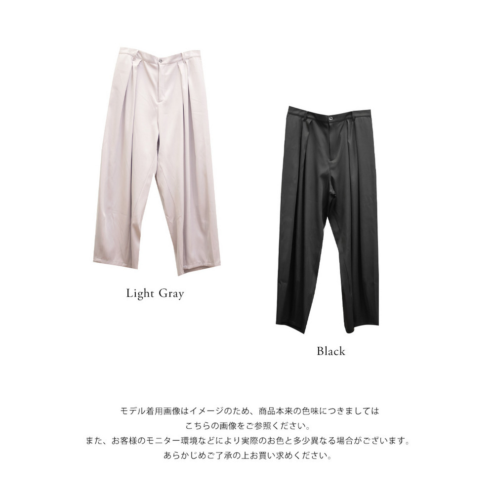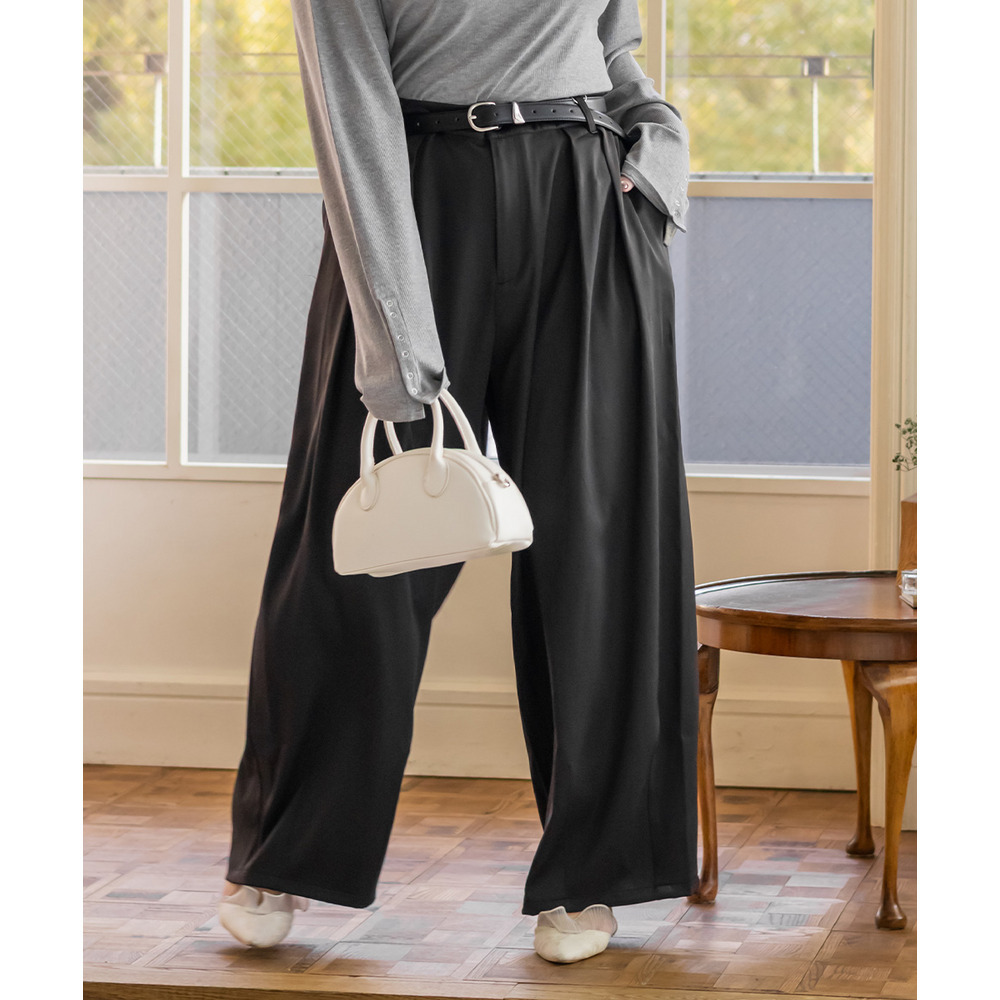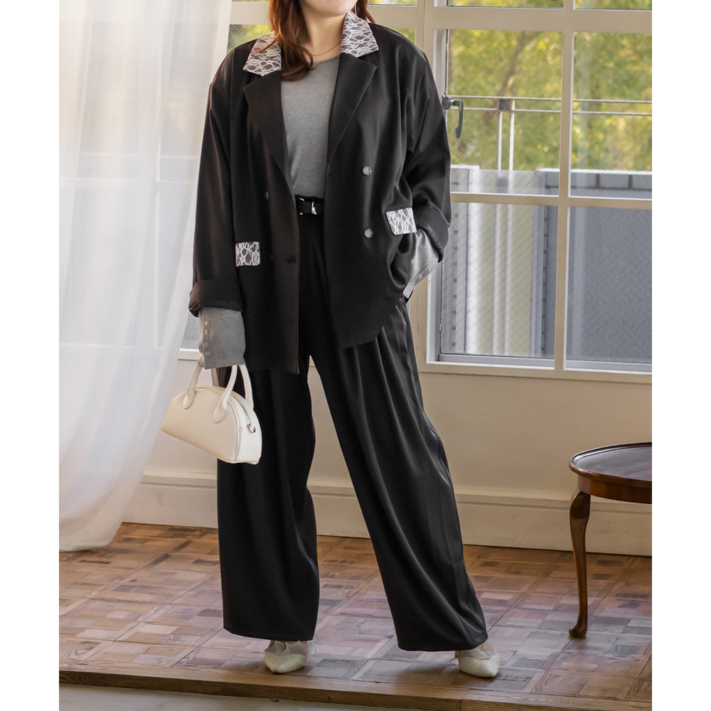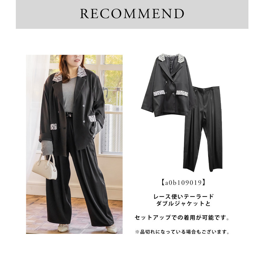 | 3Lサイズを着用してゆとりを持って着られてちょうどよかったです。いつも通りのサイズ選びで問題なさそうです◎大人っぽくすっきり見えるシルエットで、ワイドなので楽ちんな着心地です!フロントのタックのデザインが可愛くて、シンプルだけどお洒落な印象にもなれるアイテムです。フェミニンなトップスとも、シンプルなトップスとも相性がいいのでおすすめです。ブラックは同生地のジャケットとセットアップが可能です!シルエットがトレンド感たっぷりで、オールシーズン使える便利な1枚です! |