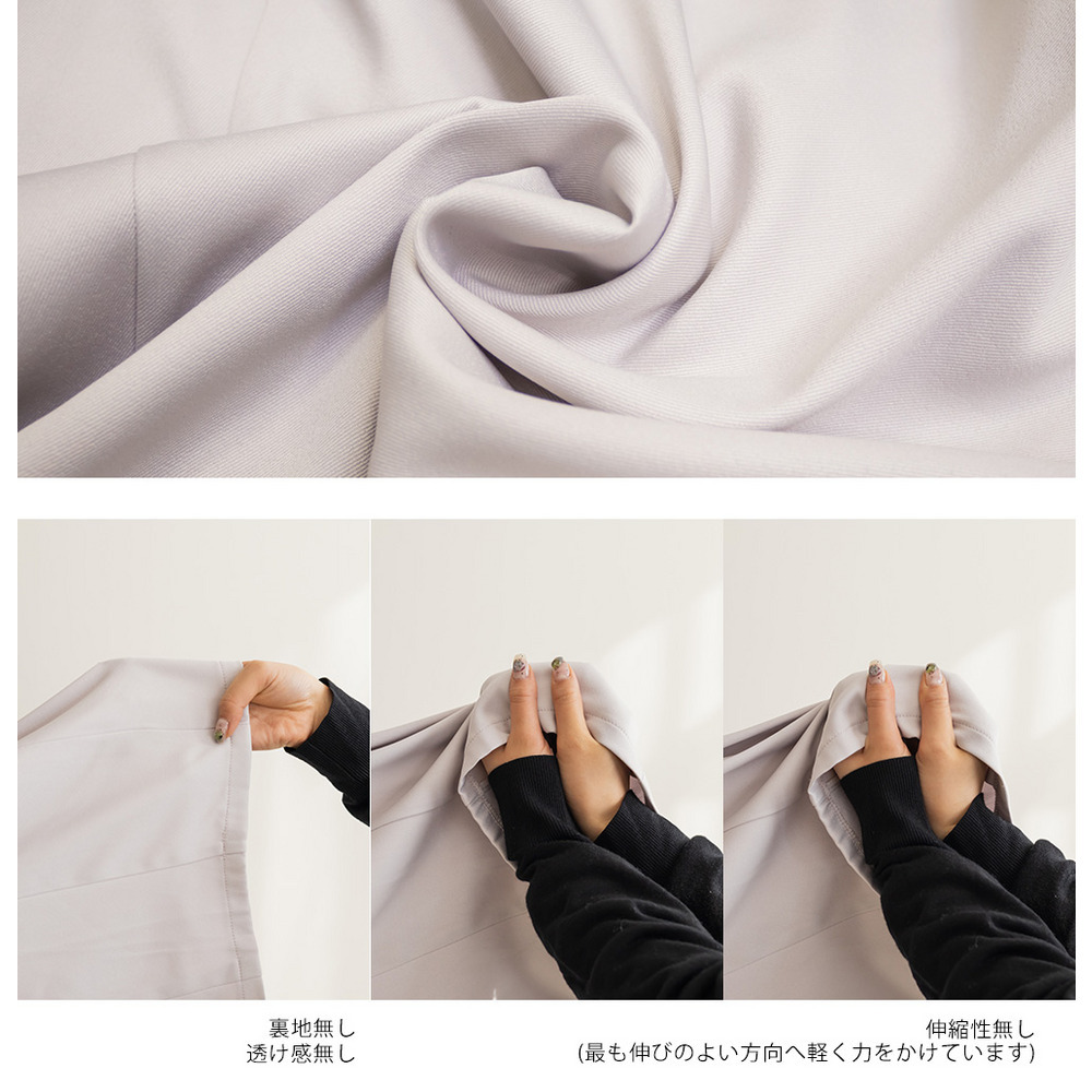 | 素材 | ■素材 ポリエステル96%、ポリウレタン4% ■裏地・透け感・伸縮性 裏地無し、透け感無し、伸縮性無し ■ポケット 有り ■生地感 程よくしっかりとしたさらっとした素材です。 |