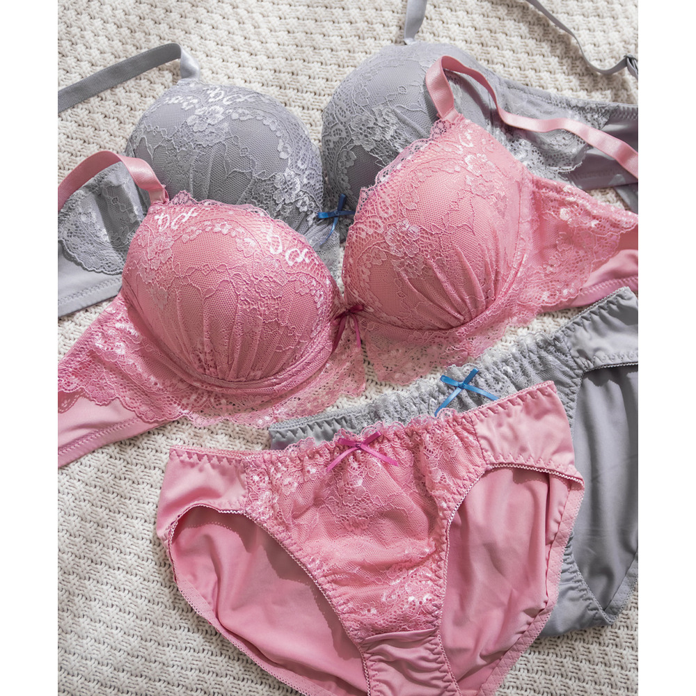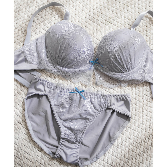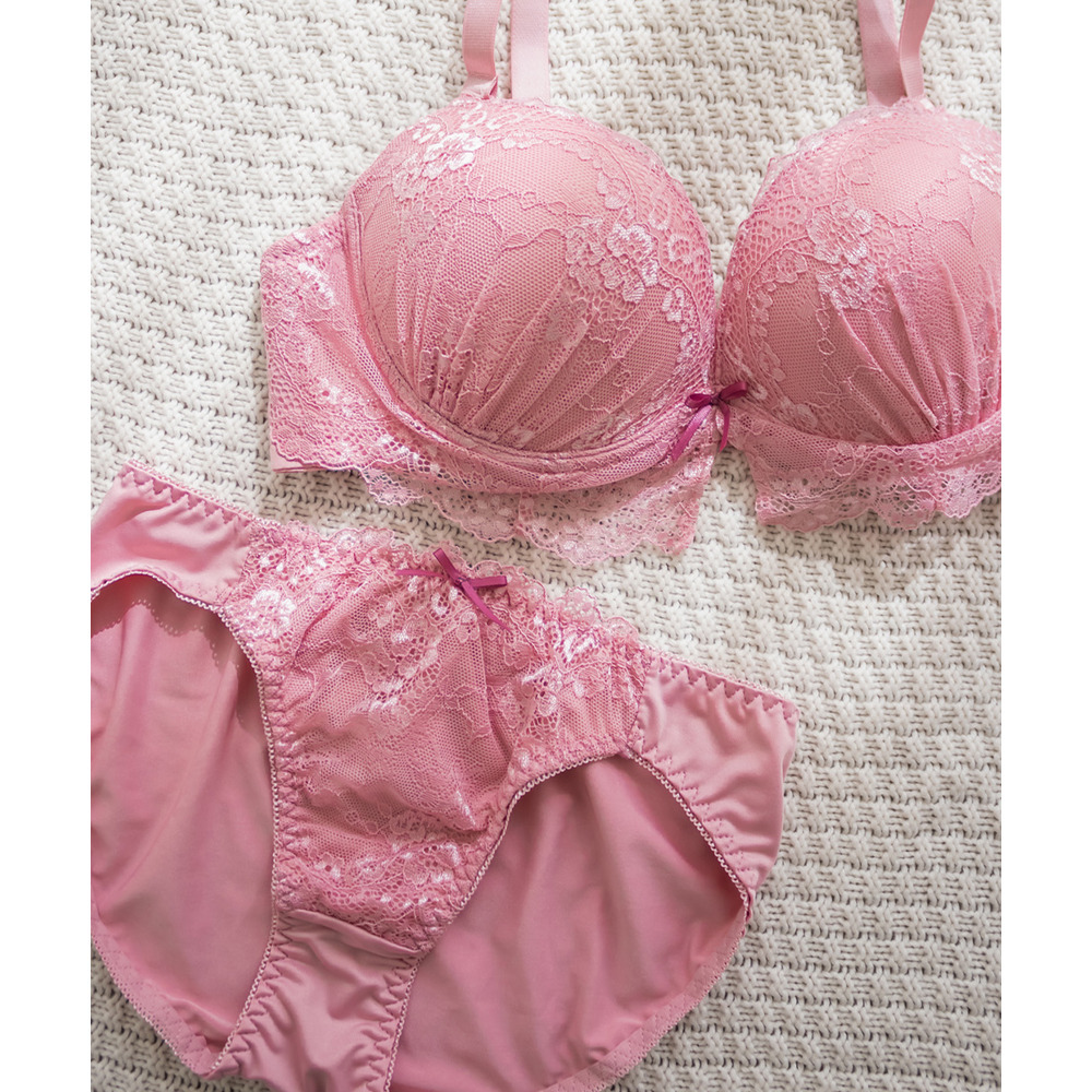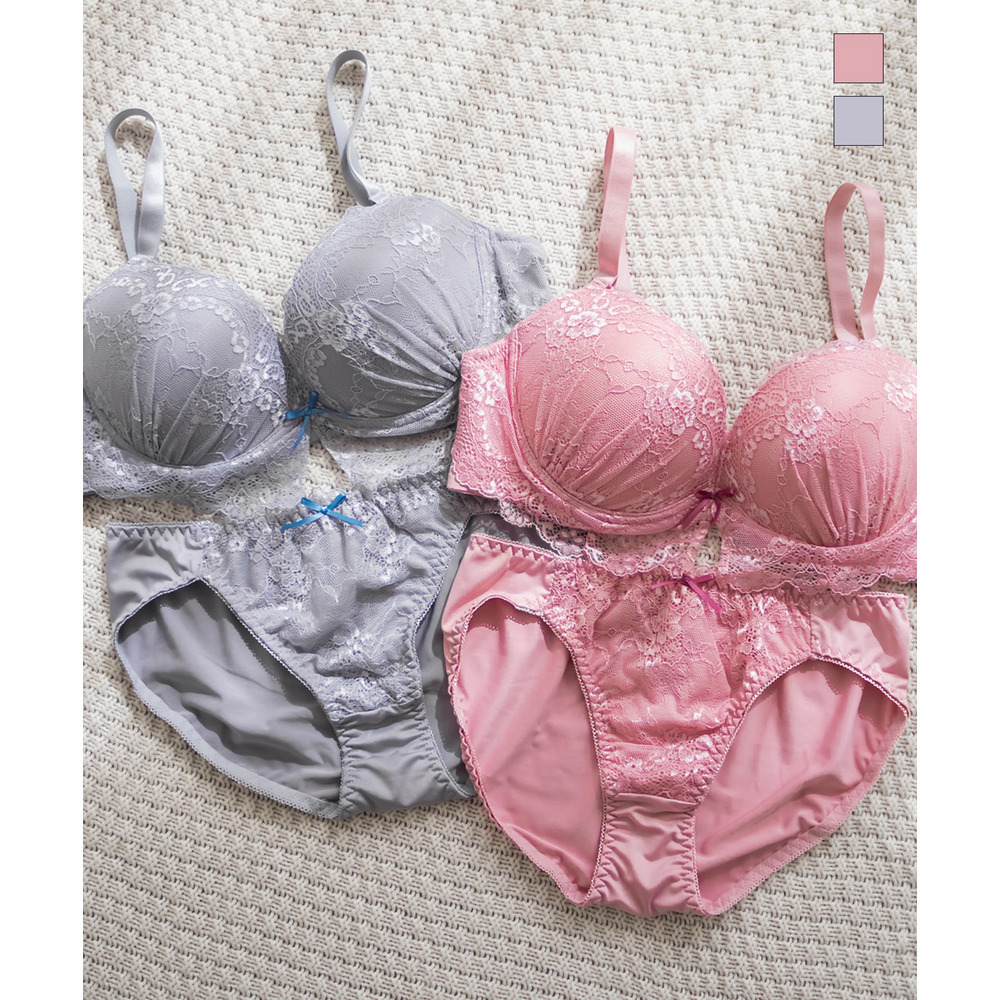 クラシカルレース配色リボンブラジャー&ショーツセット