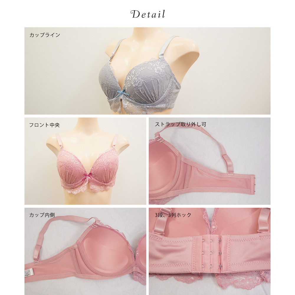 | 素材 | ■素材 【ブラジャー】ナイロン、ポリエステル、その他、【ショーツ】ポリエステル、ナイロン、その他 ■裏地・透け感・伸縮性 裏地無し、透け感有り、伸縮性有り ■その他 【カップタイプ】3/4カップ・モールドカップ(丸みを形成した厚みのあるカップです)、【ホックの数】3段3列、【パット付属】なし、【パットポケット】なし、【ストラップ取外し】可、【ワイヤー】あり、※タンブル乾燥禁止 |