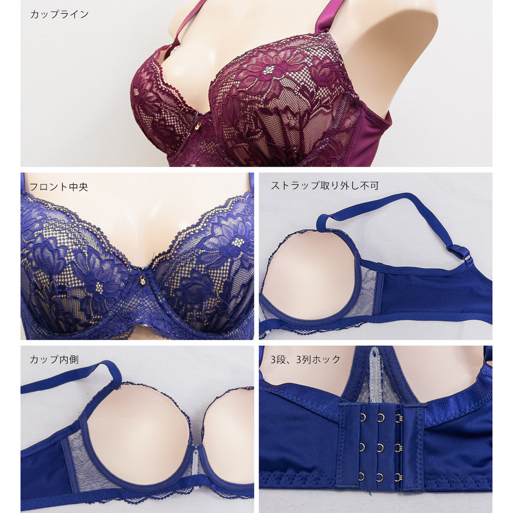 | 素材 | ■素材 【ブラジャー】ナイロン、ポリエステル、その他、【ショーツ】ポリエステル、ナイロン、その他 ■裏地・透け感・伸縮性 裏地無し、透け感有り、伸縮性有り ■その他 【カップタイプ】3/4カップ・モールドカップ(丸みを形成した厚みのあるカップです)、【ホックの数】3段3列、【パット付属】なし、【パットポケット】なし、【ストラップ取外し】不可、【ワイヤー】あり、※タンブル乾燥禁止 |