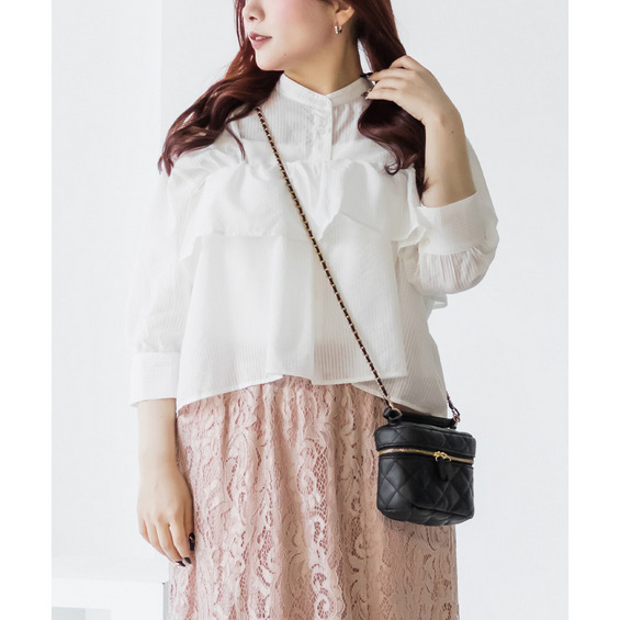 3Lサイズを着用しました。ブラウス・ビスチェともにちょうどいいサイズ感で、腕まわりや身頃にも窮屈感はありませんでした◎ 春夏にピッタリな、さらっとした軽い生地感です!セットで着るとメリハリのあるレイヤードスタイルが完成して、一気におしゃれ感がアップしビスチェがふんわりお腹周りもカバーしてくれて、すっきり着やます♪せして見えます!ブラウス単体でも使えるので、着回し力も抜群です。