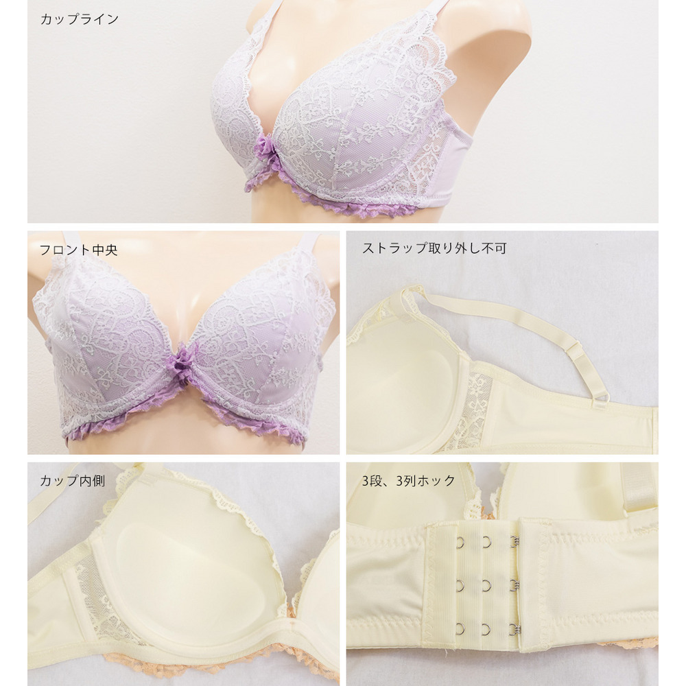 素材 ■素材 ナイロン、ポリエステル、その他、ポリエステル、ナイロン、その他 ■裏地・透け感・伸縮性 裏地無し、透け感有り、伸縮性有り ■その他 【カップタイプ】3/4カップ・モールドカップ(丸みを形成した厚みのあるカップです)、【ホックの数】3段3列、【パット付属】なし、【パットポケット】なし、【ストラップ取外し】不可、【ワイヤー】あり、※タンブル乾燥禁止