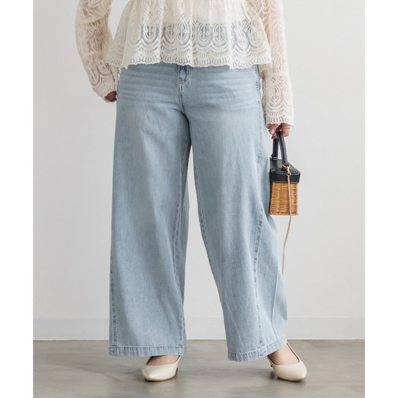 3Lを着てちょうどいいサイズ感でした!ワイドシルエットなのが今っぽくて可愛いです!ウエストゴムや股上もしっかりトあるディティールなので、綺麗に着用出来ました!トレンド感たっぷりのワイドシルエットのデニムパンツで、着るだけでお洒落な印象です♪カジュアルな素材とだけど、キレイめにも合わせやすいので、ジャケットやシャツ・ブラウスと相性良くコーデできます。デニム生地だけど薄めで重たくないので、オールシーズン着やすい素材なのもうれしいです!
