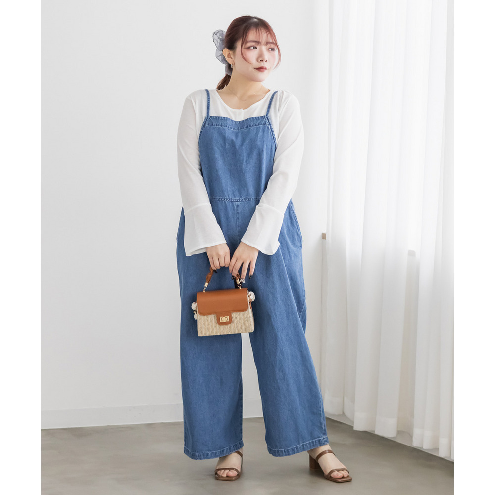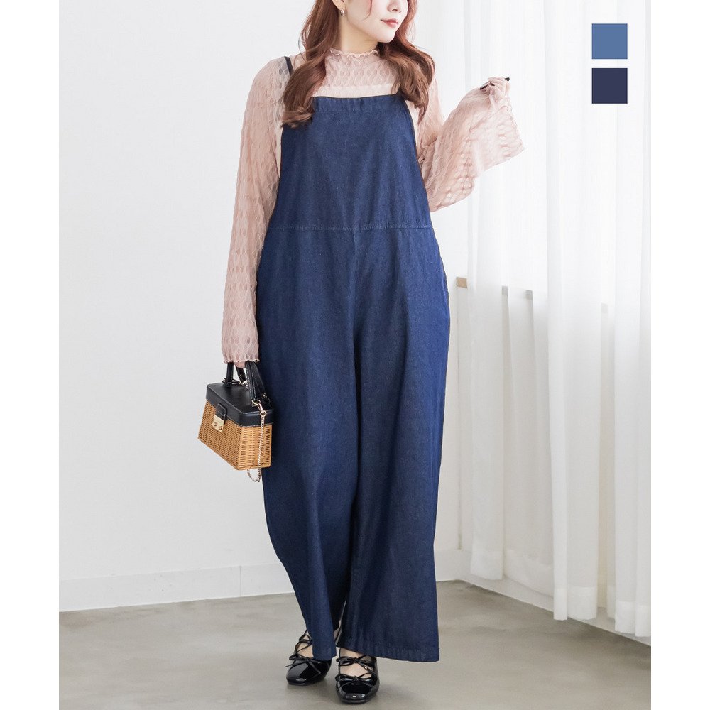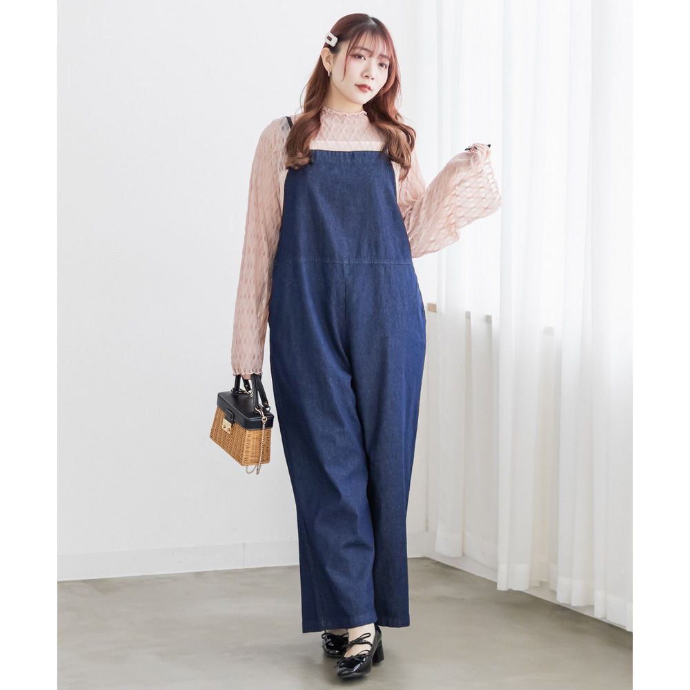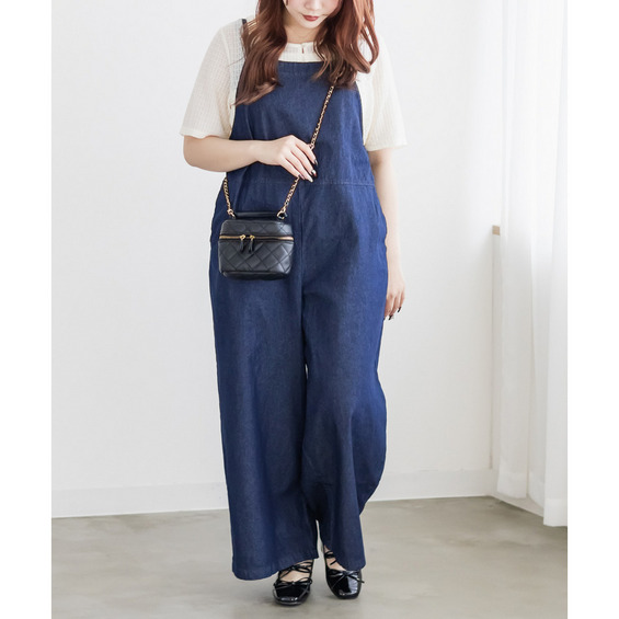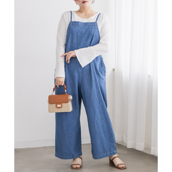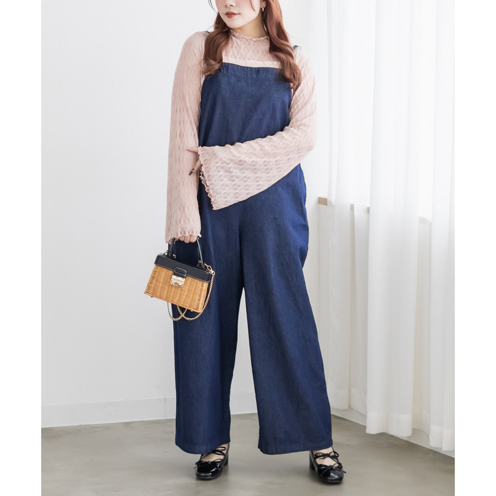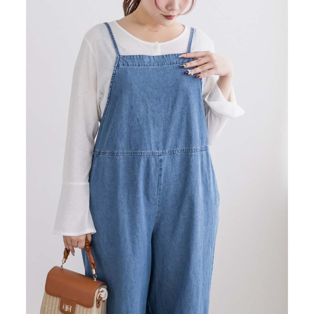 3Lサイズを着用して、程よくゆとりを持って着られました◎ウエストなどにゴムはないですがしっかりゆとりを持って着られてらくちんでした!長さは紐で調節できて便利です!生地はデニム素材でハリがあり肉感を拾いづらいのも嬉しいです。インナー次第で季節問わず着まわせる万能アイテムです!
