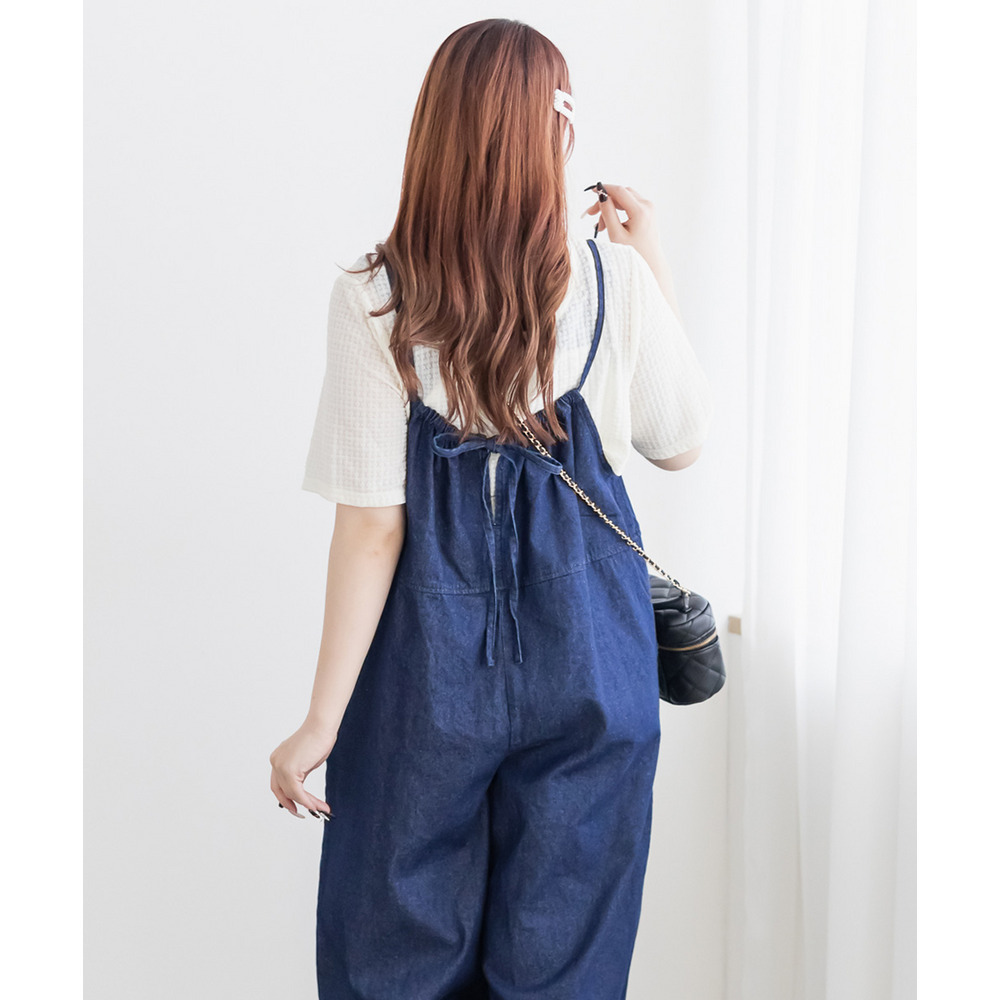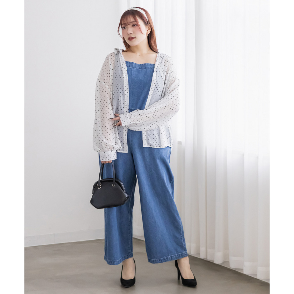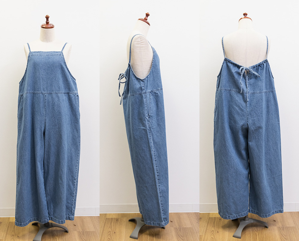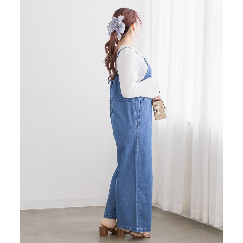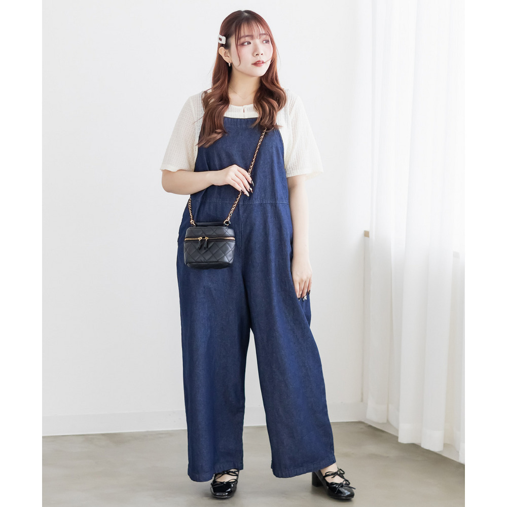 3Lサイズを着用して、程よくゆとりを持って着られました◎ウエストなどにゴムはないですがしっかりゆとりを持って着られてらくちんでした!長さは紐で調節できて便利です!生地はデニム素材でハリがあり肉感を拾いづらいのも嬉しいです。インナー次第で季節問わず着まわせる万能アイテムです!
