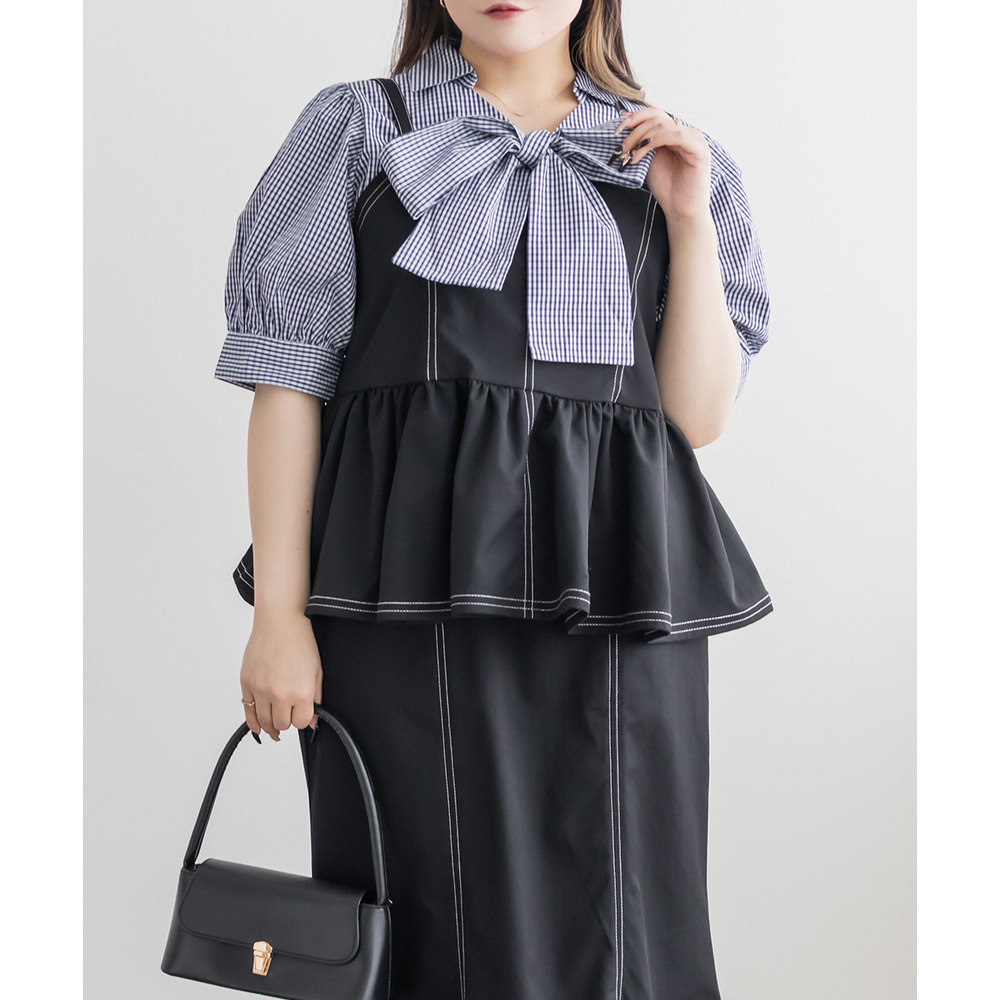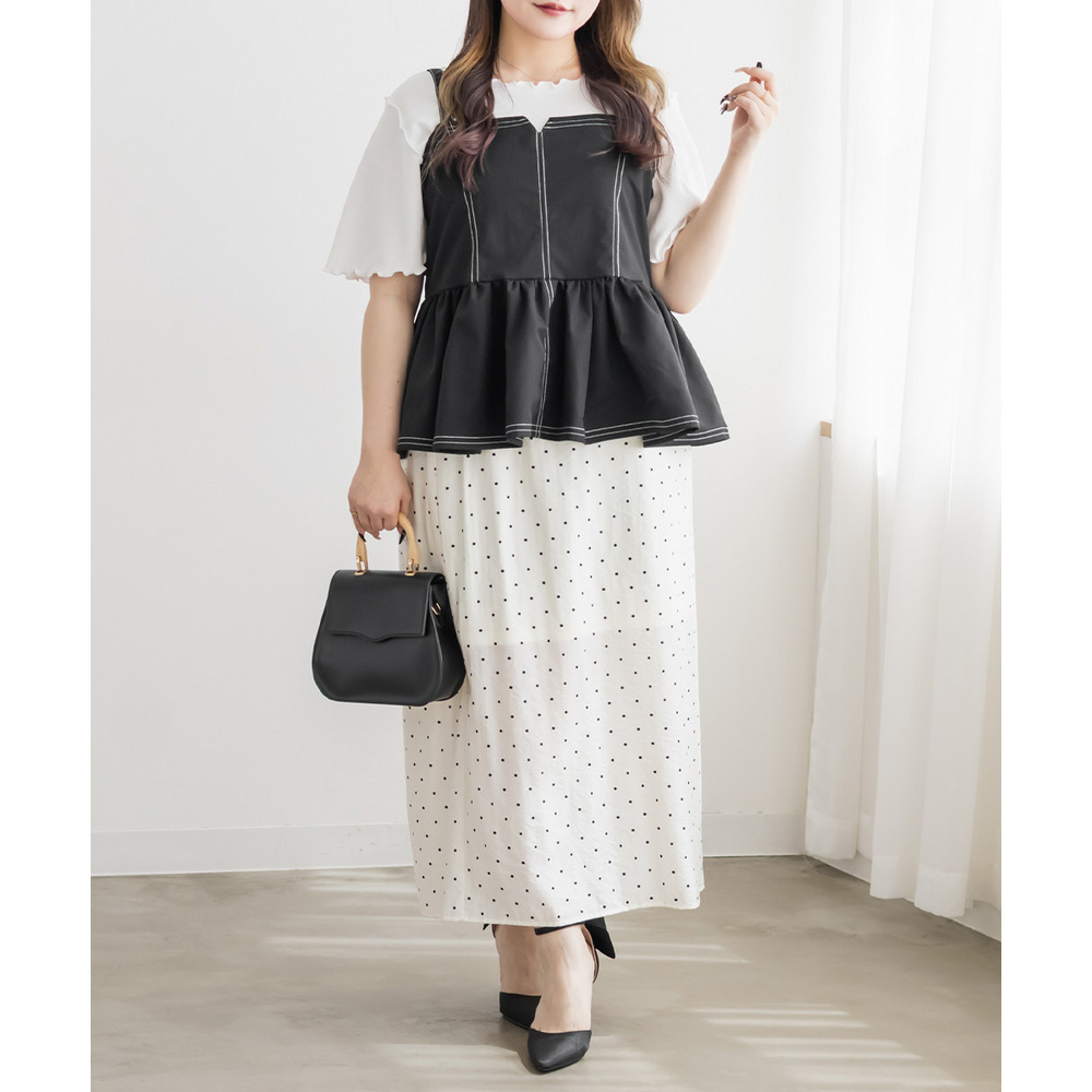 | 3Lを着てちょうどいいサイズでした!綺麗なシルエットで着れました。ボディラインを拾わないしっかりとした素材で切替が細かく入っていて身体にメリハリをプラスしてくれます。後ろシャーリングゴムになっているからバストサイズも問題なく楽ちんです。しっかり広がるペプラムがお腹周りをカバーしてくれるし、フェミニンな雰囲気になります◎のオールシーズン使えて1枚で色々なスタイリングに使えてたくさんファッションを楽しめます! |