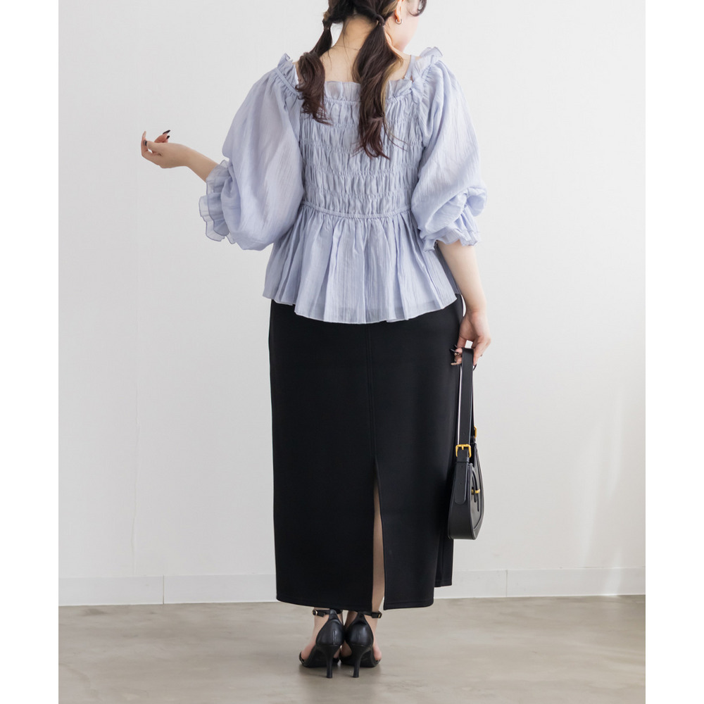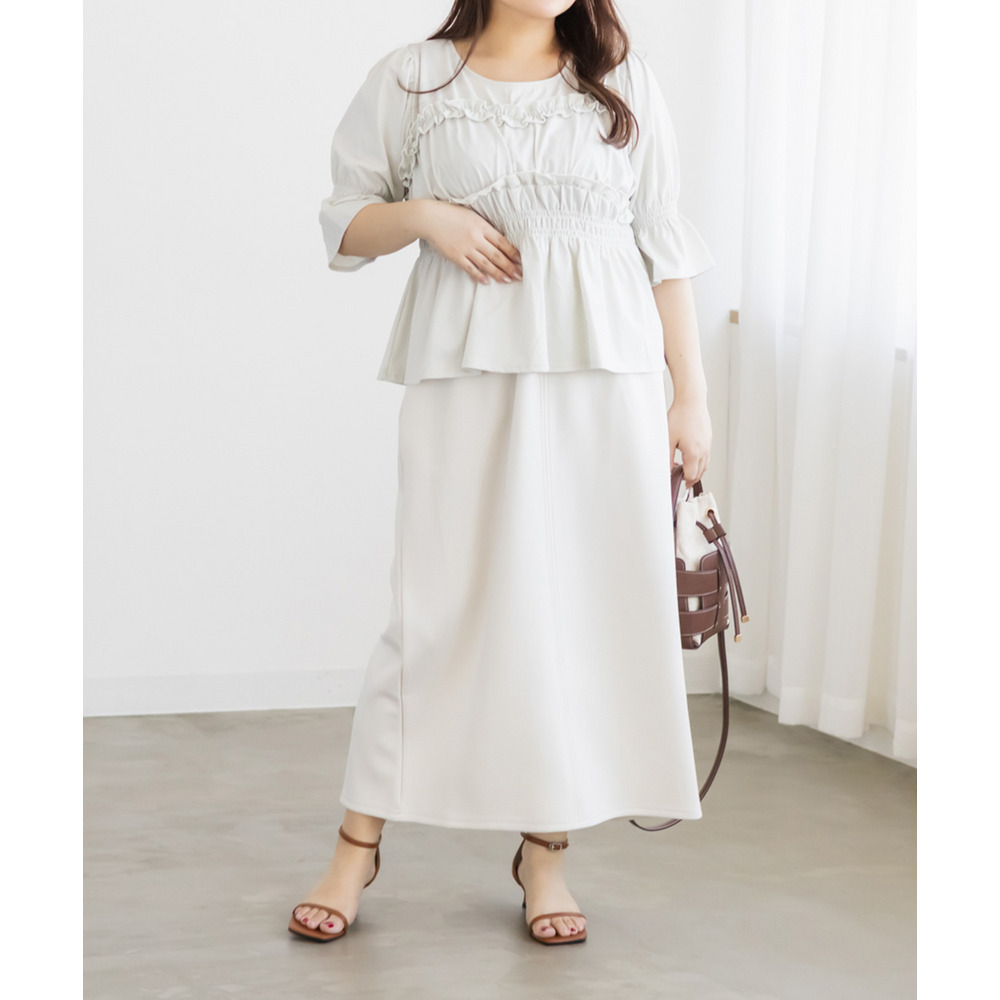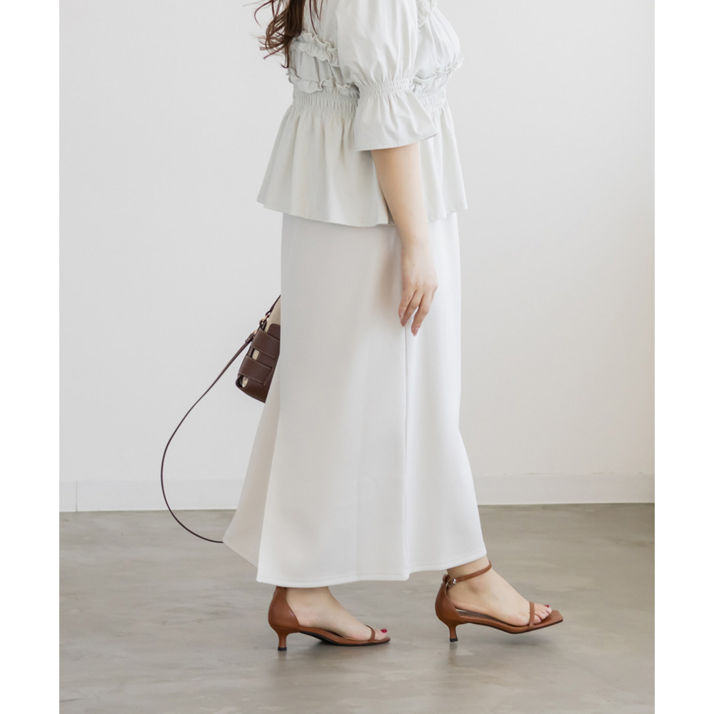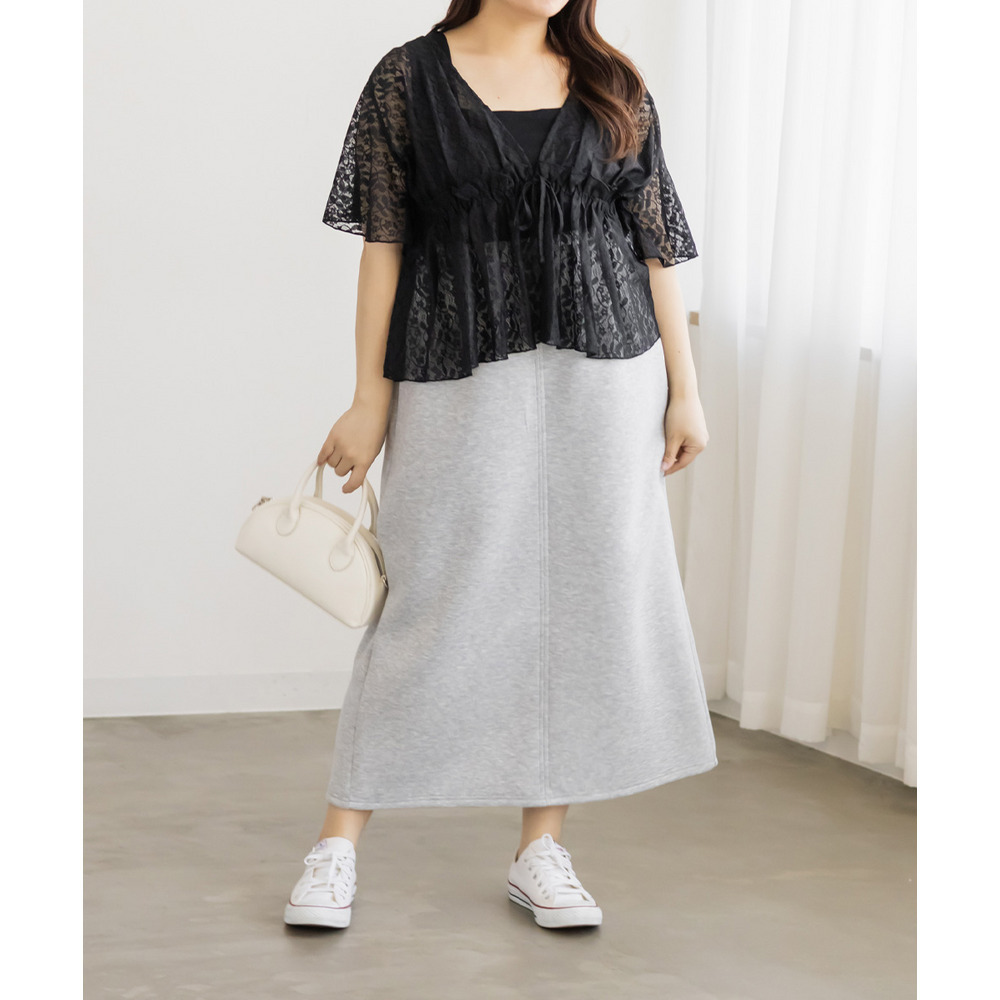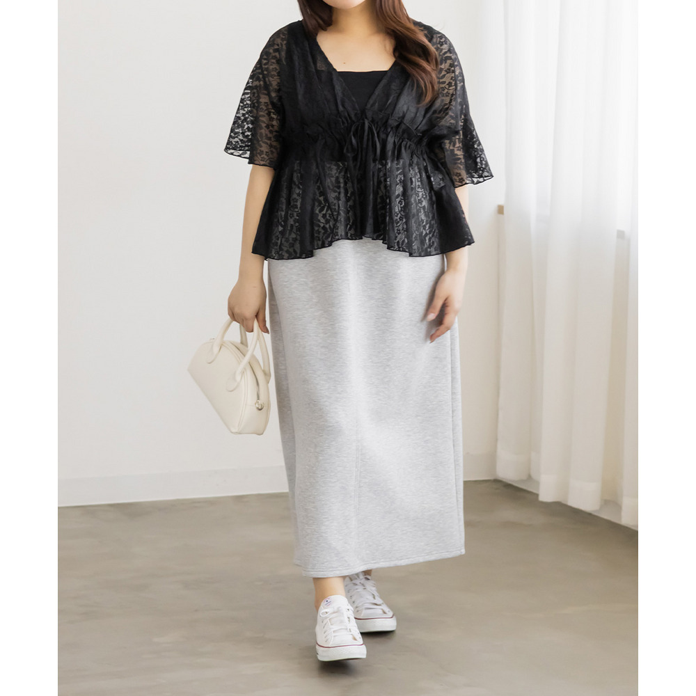 | 3Lを着て丁度いいサイズ感で、窮屈感なくらくちんな着心地でした!いつものナロースカートよりは少しタイトなシルエットですが、ストレスのなく着ていられる生地感で、後ろもゴムだから窮屈感もありません◎スリットはファスナーで自分好みで開けられるのもポイントです!閉めても見えにくいコンシールファスナーなのが嬉しいです!シンプルなデザインだから色々なトップスと合わせやすく、季節問わず使えるので1枚は持っておきたいスカートです! |