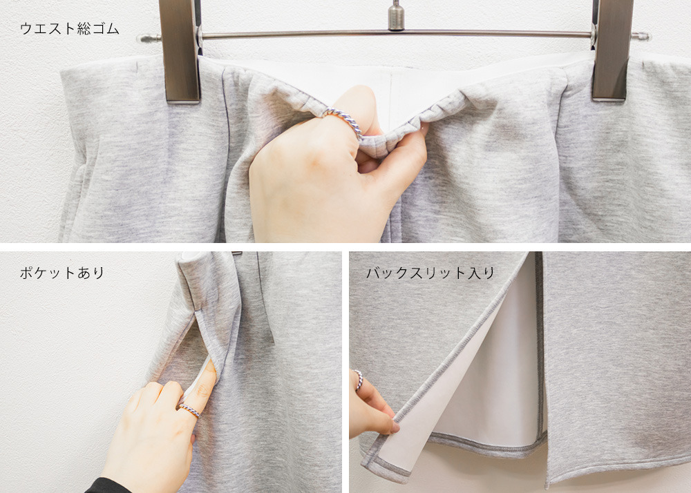 | 素材 | ■素材 【本体】ポリエステル60%、レーヨン35%、ポリウレタン5%、【裏地】ポリエステル100% ■裏地・透け感・伸縮性 裏地無し、透け感無し、伸縮性有り ■ポケット 有り ■生地感 伸縮性があり、しっかりとしたハリのある生地感 |
