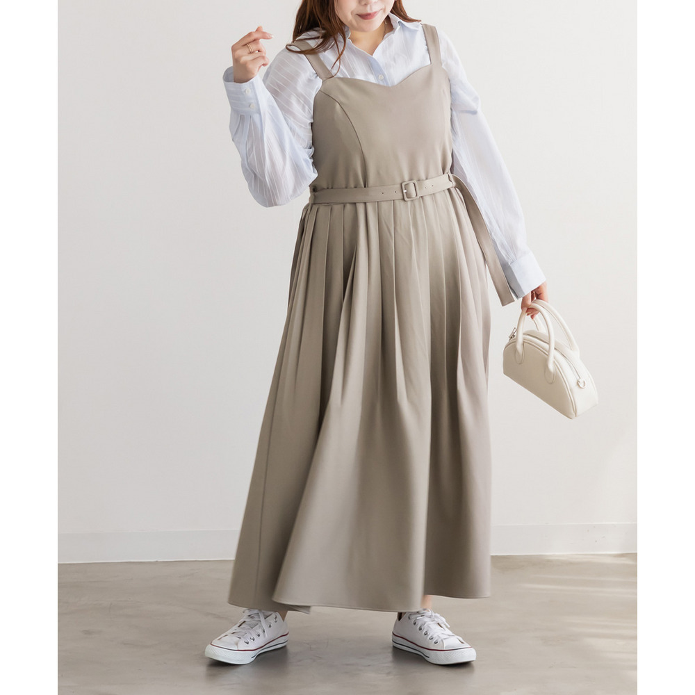| 3Lサイズを着用してちょうどいいサイズ感でした!プリーツデザインが縦ラインを強調してくれて、自然とすっきり見えするのが嬉しいポイントです。付属のベルトでウエストマークできるので、シルエットにメリハリが出てスタイルアップして見えました♪インナー次第で雰囲気を変えられて、ロングシーズン着回しできるのも魅力です!着心地も楽で、きちんと感のあるコーデが簡単に完成します◎ |