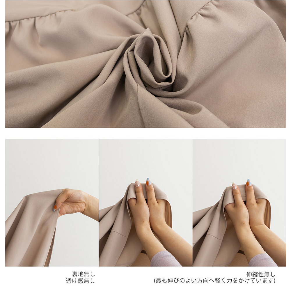 | 素材 | ■素材 ポリエステル95%、ポリウレタン5% ■裏地・透け感・伸縮性 裏地無し、透け感無し、伸縮性無し ■ポケット 有り ■生地感 程よくハリのある伸縮性のない布帛生地。 |