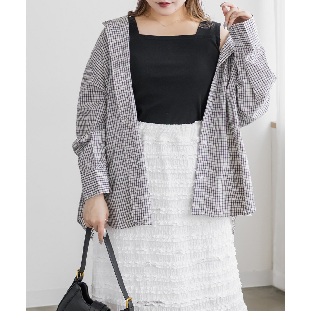 | LLを着てぴったりサイズでした。後ろゴム入りで着脱が楽ちんでバストも窮屈感のないストレスフリーな着心地です。シャツやカーデをさらっとと羽織ったりシアーやレースのトップスのインナーに使ったり、1枚持っておくだけでインナーの悩みを解決してくれる便利なタンクトップです!どんなテイストのスタイリングにも、お仕事やお出かけにもシーンを選ばず使えるので色違いでほしくなるアイテムです◎ |