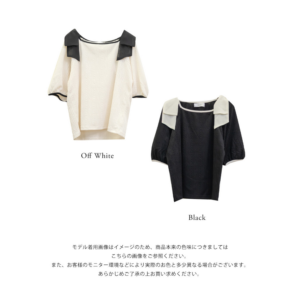 • 肩リボンふくれジャガードプルオーバー2