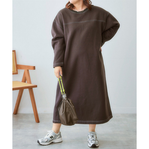 配色ステッチ裏起毛ワンピース 大きいサイズ