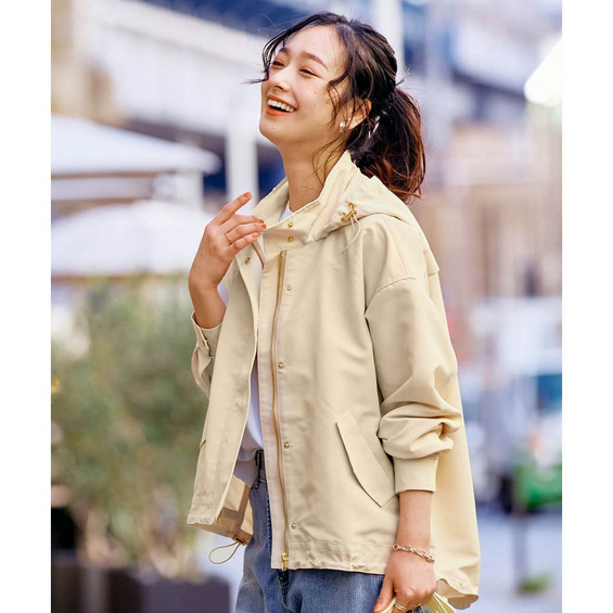 カジュアルになりすぎないシャカシャカ素材が、大人の上質感を演出。