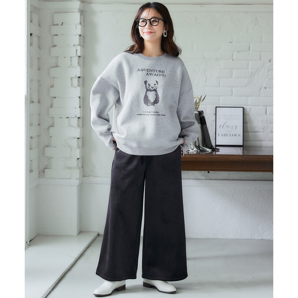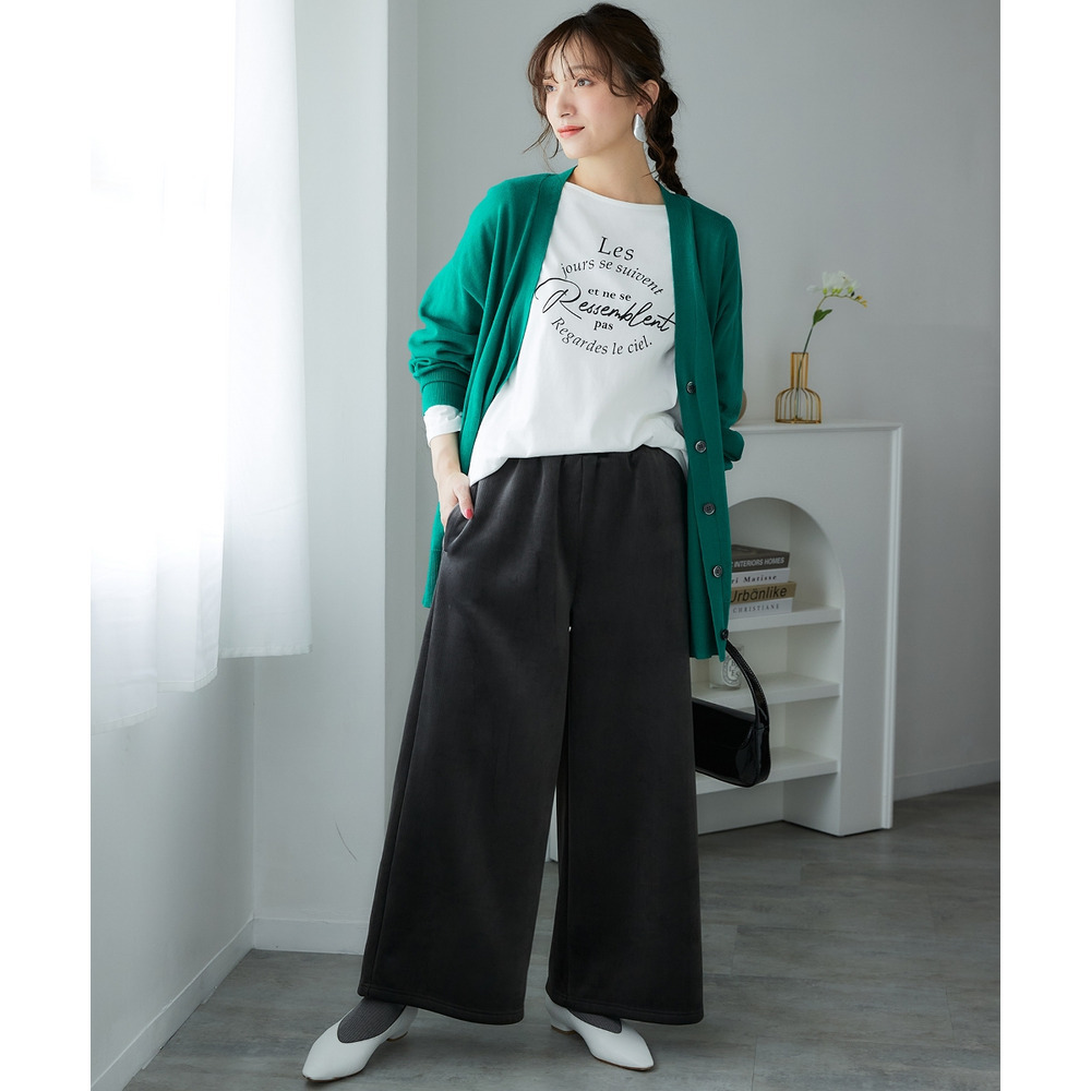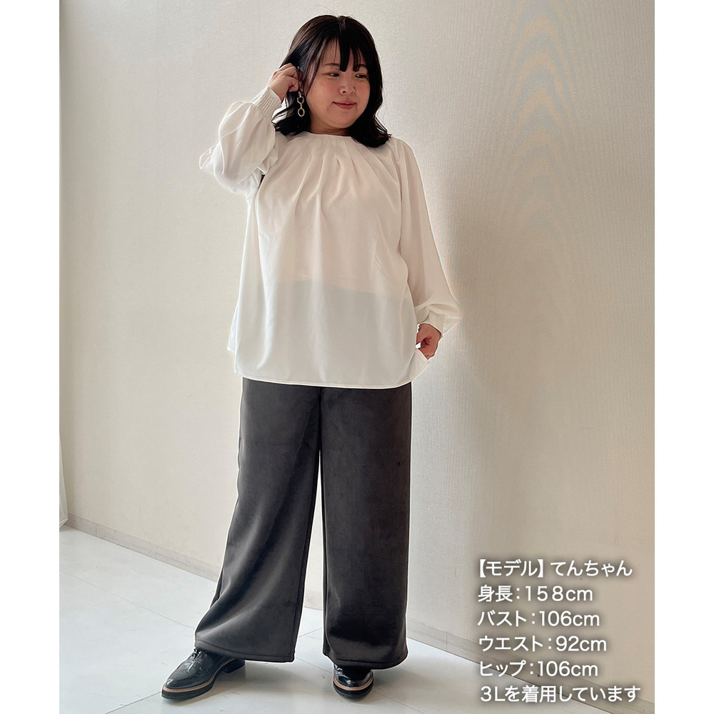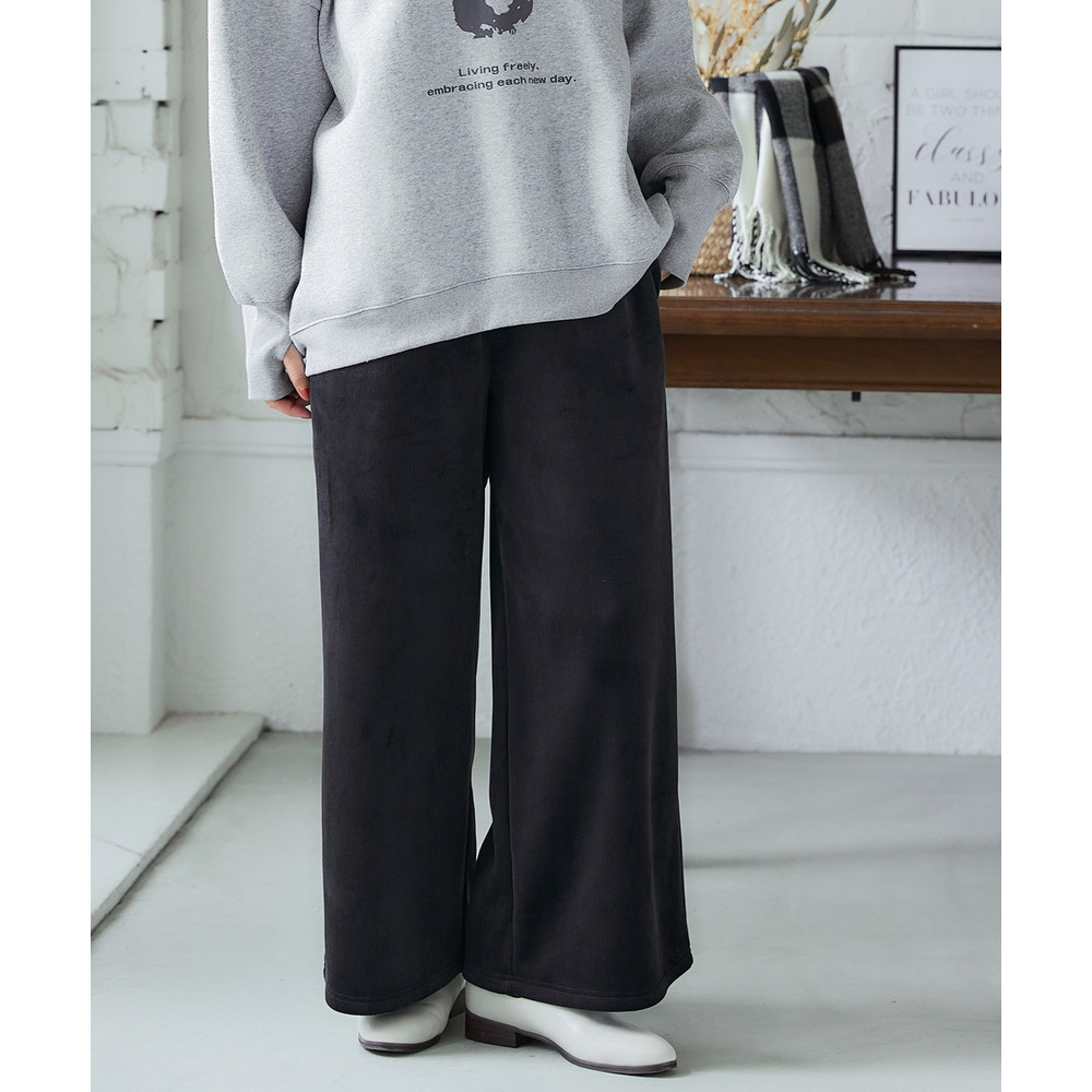裏フリースリブベロアワイドパンツ 大きいサイズ