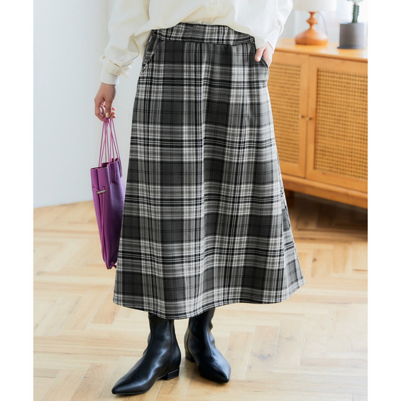 ややAラインのシルエットで程よく体型カバー叶う、女性らしい雰囲気を演出するスカート。