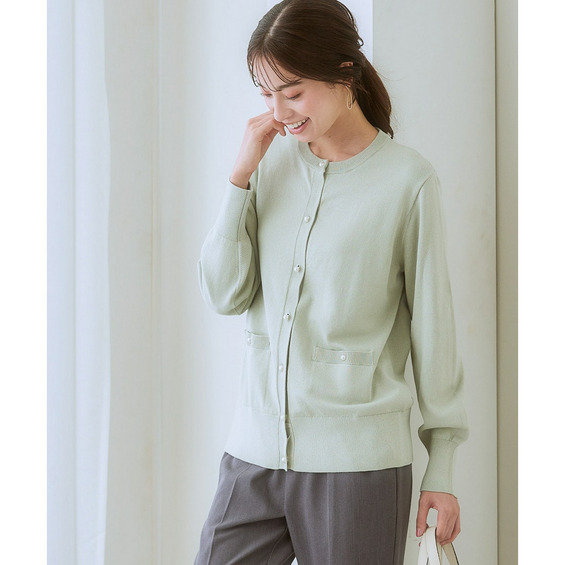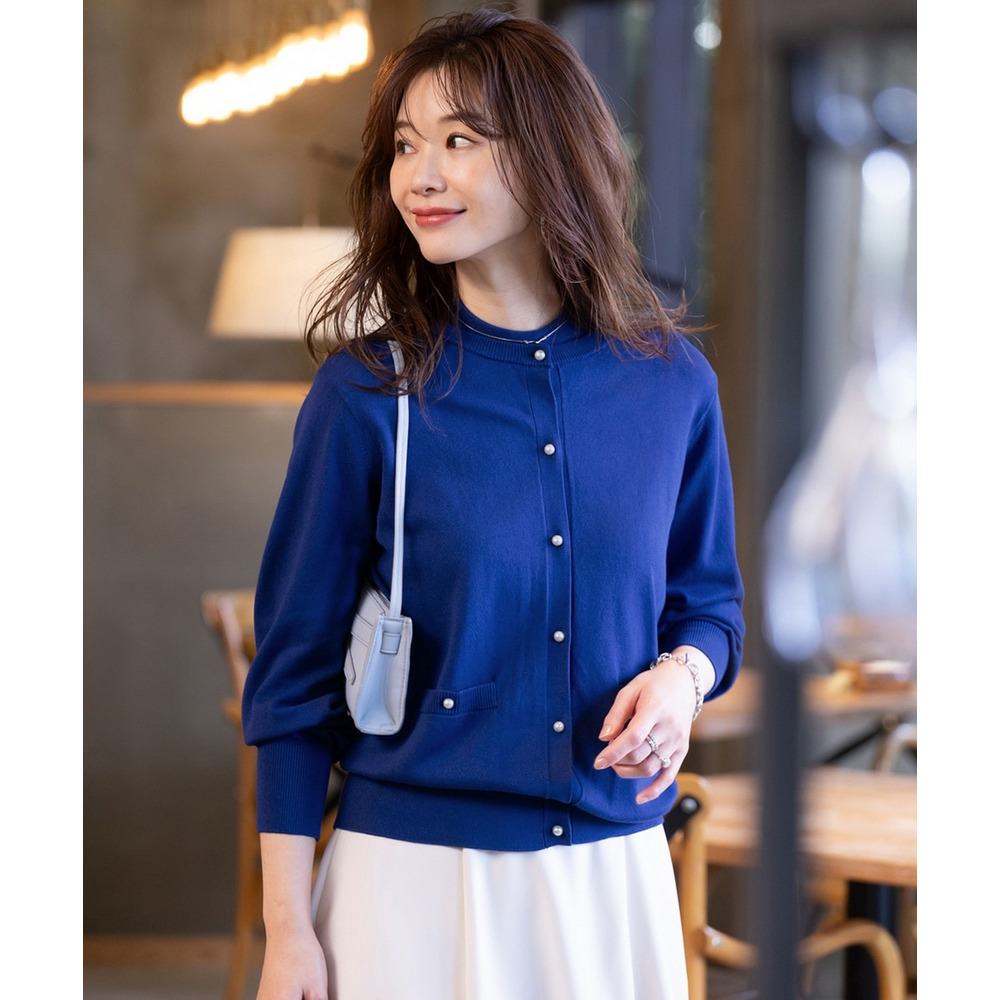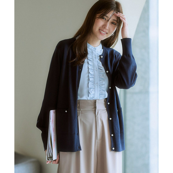 ・ちょっとしたものを入れるのに便利なポケット、投票で決定したパールボタン、使いやすい着丈やサイズ感にこだわったきれいめデザイン。