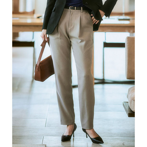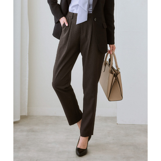 【レディーススーツ】セットアップ対応洗えるウール調ストレッチテーパードパンツ(上下別売) 大きいサイズ