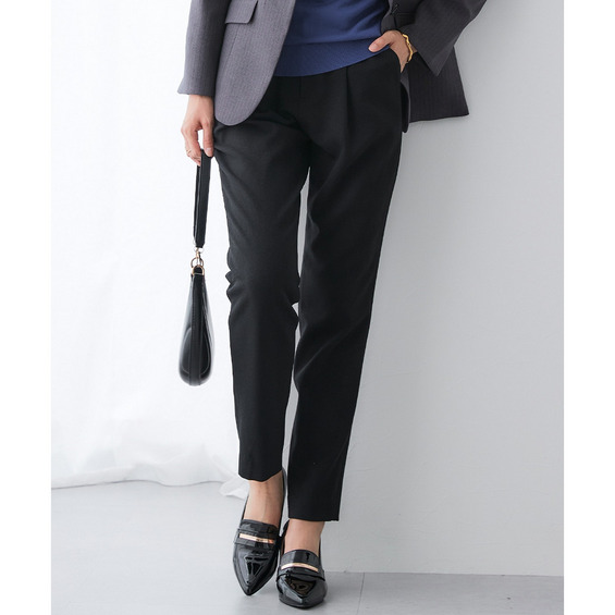 シンプルなシルエットのテーパードパンツは足首見せですらりと見えるのが◎!!