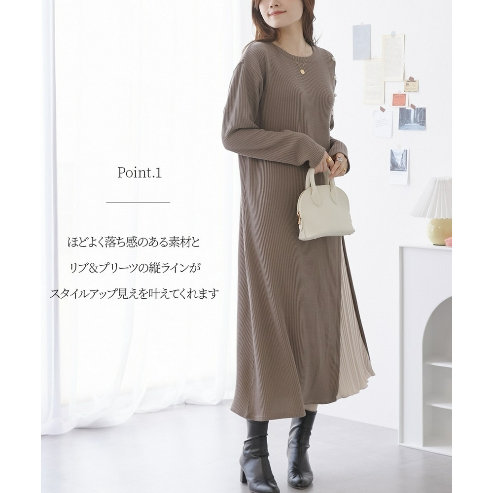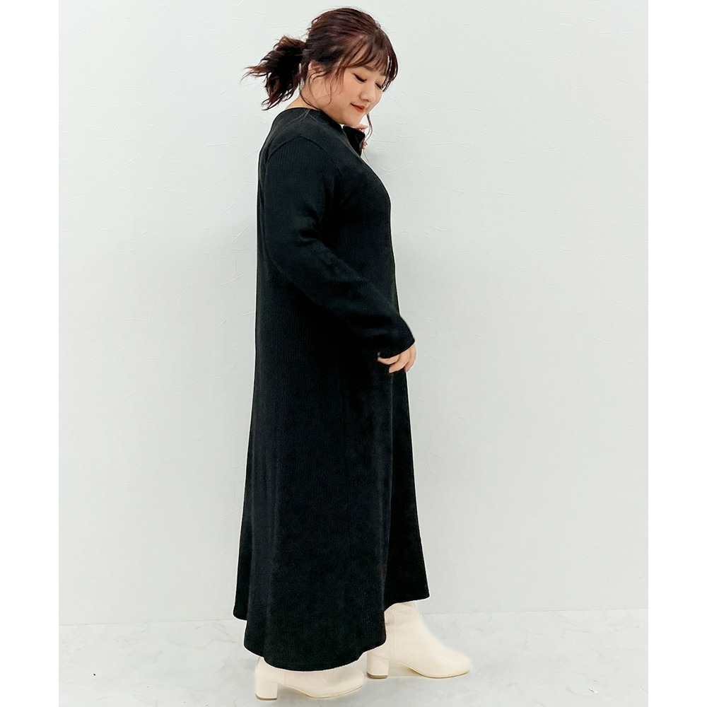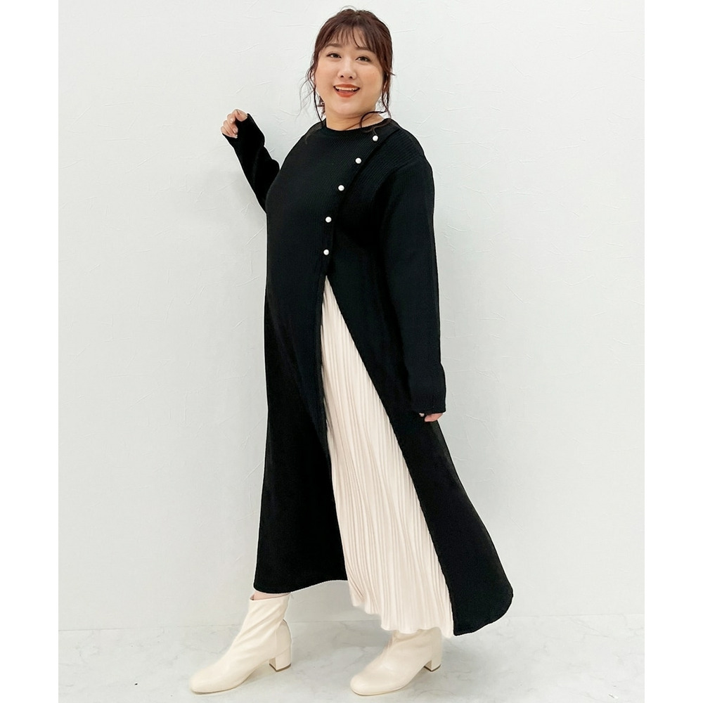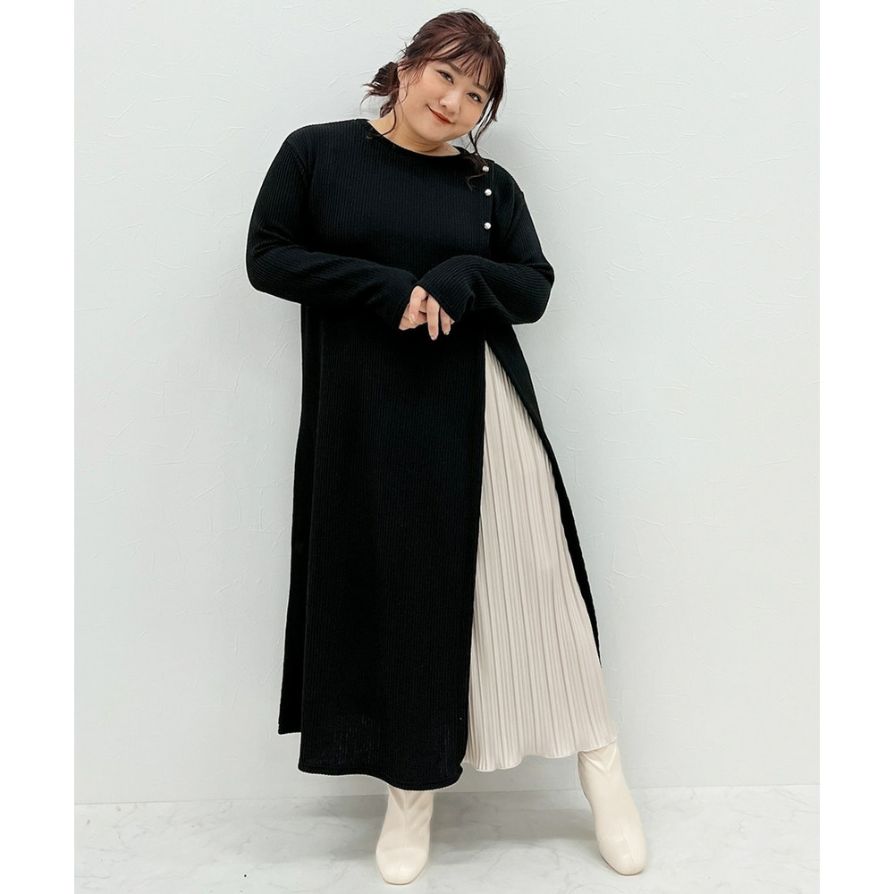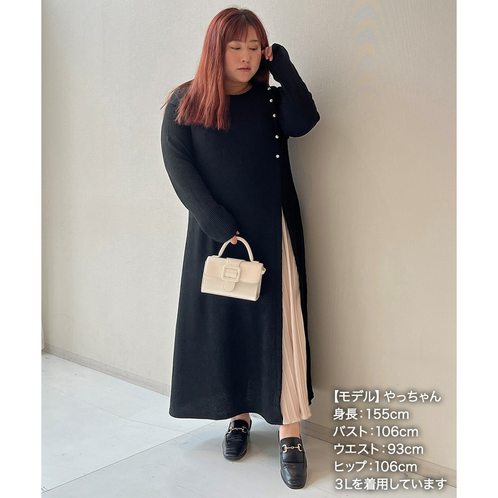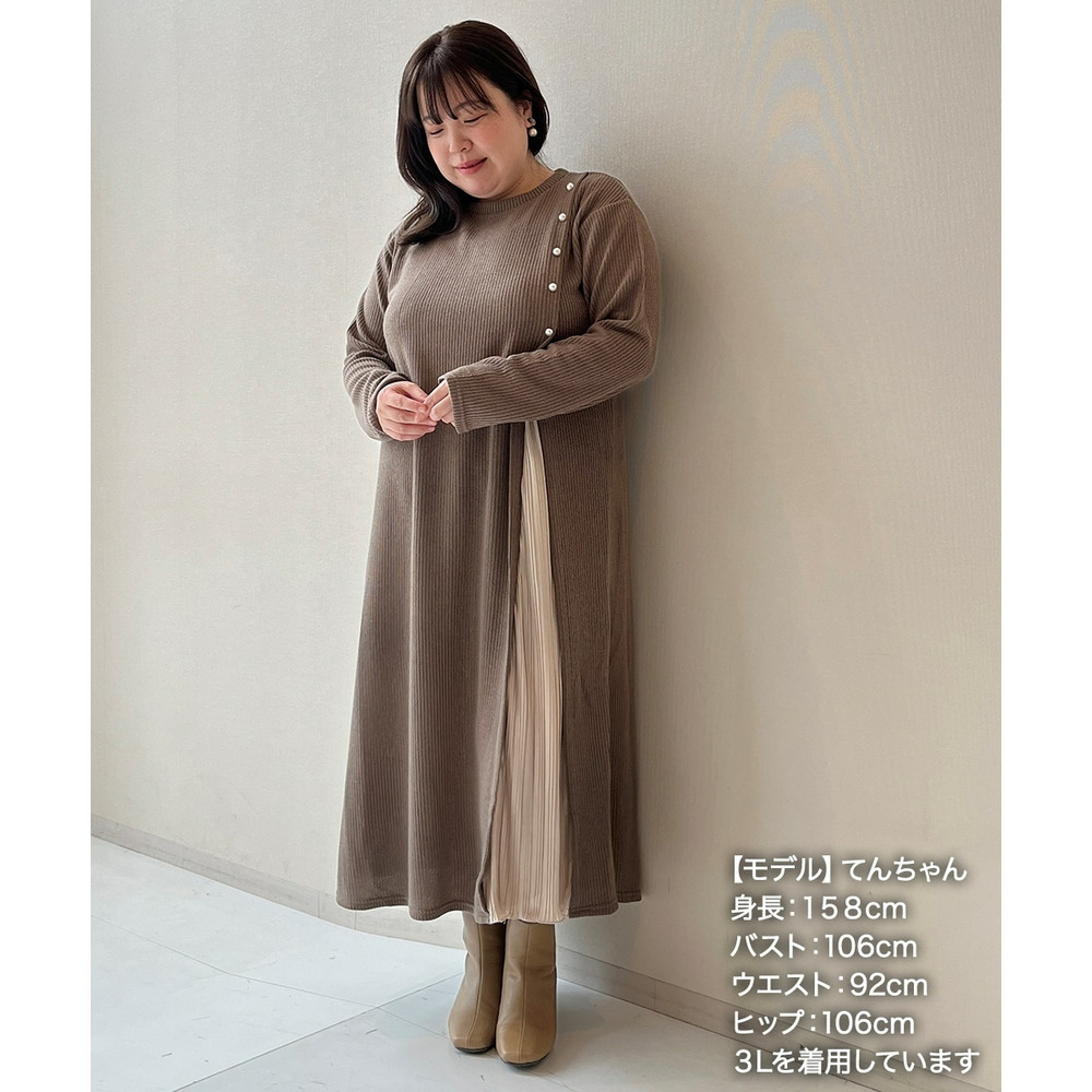 ふんわりリブニットソープリーツ切替ワンピース 大きいサイズ