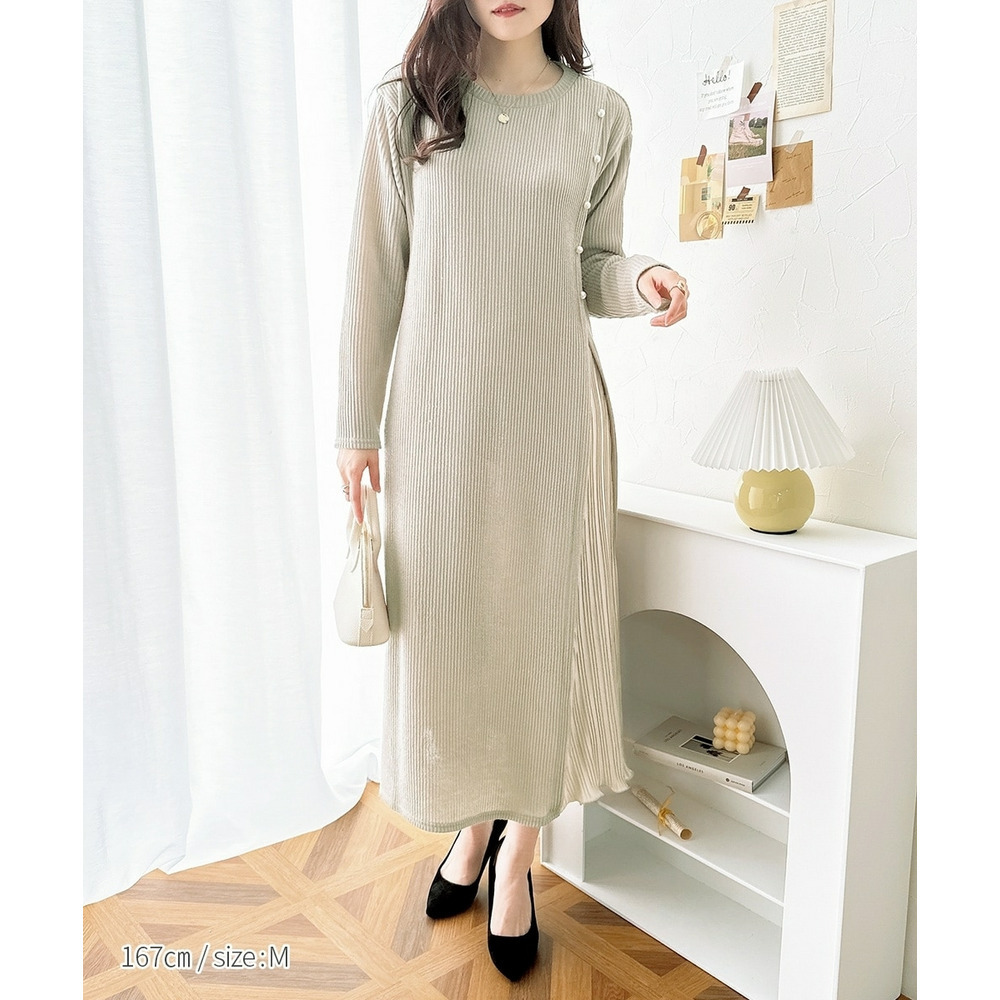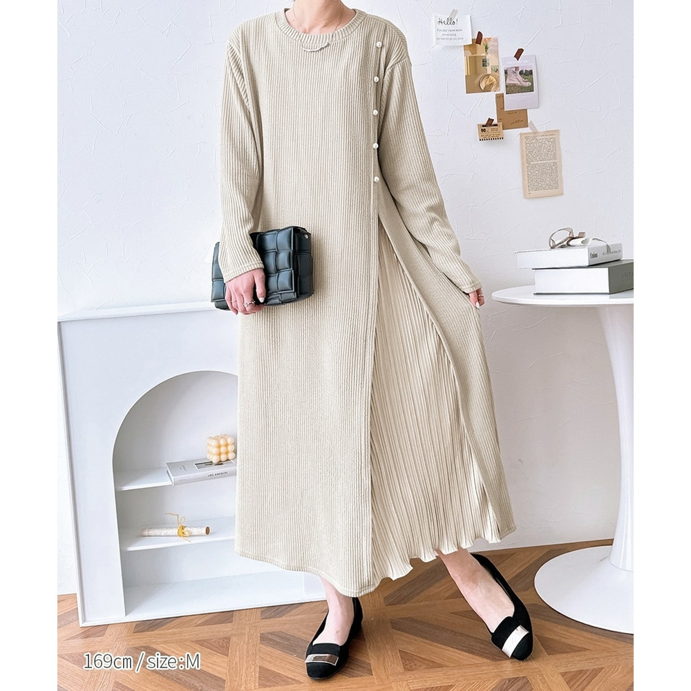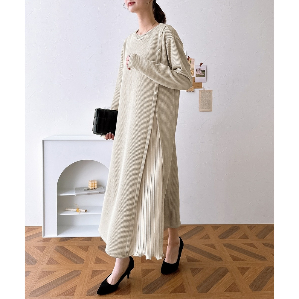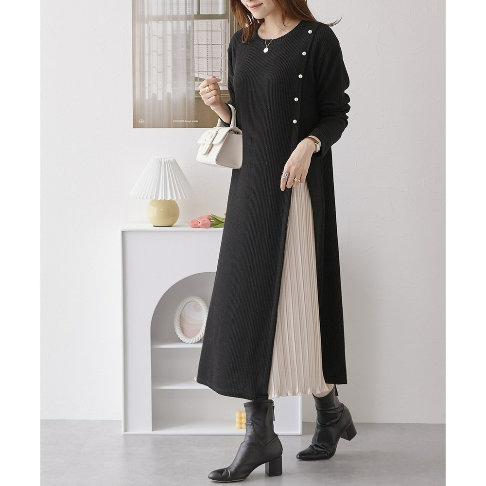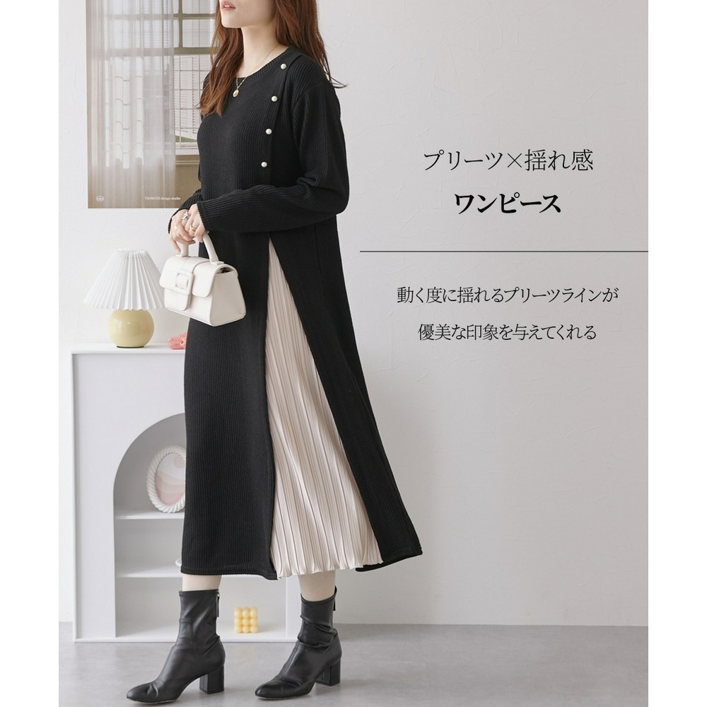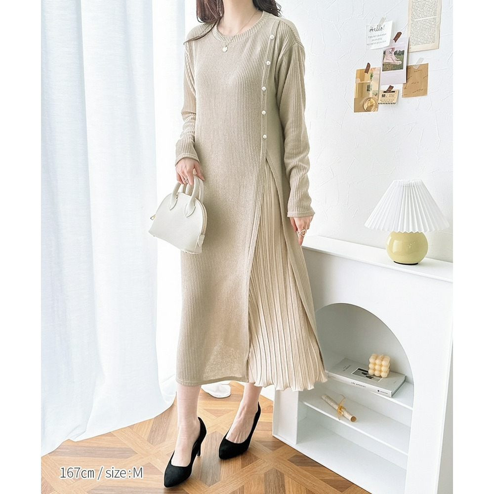 ふんわりリブニットソープリーツ切替ワンピース 大きいサイズ