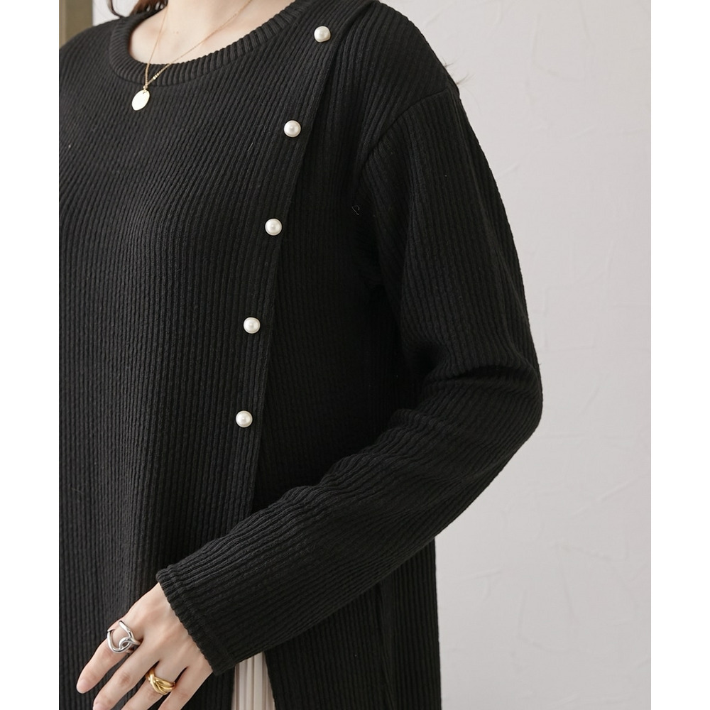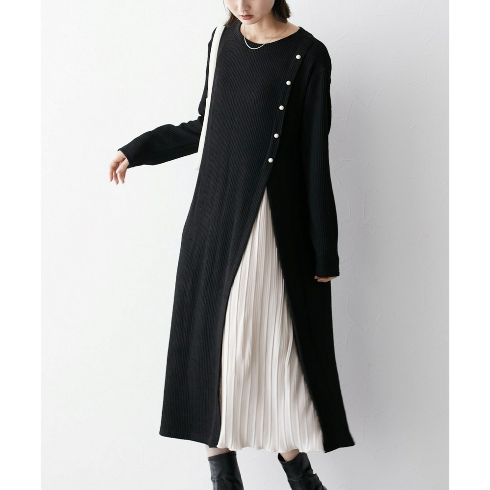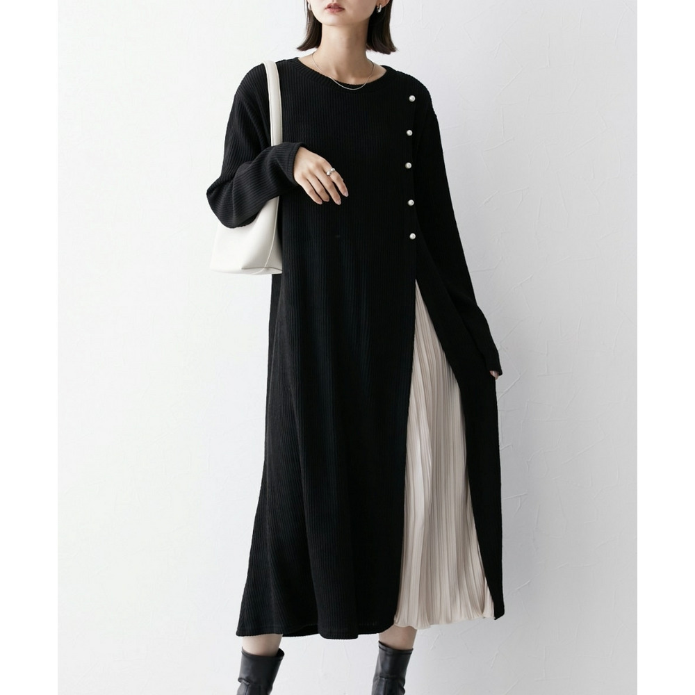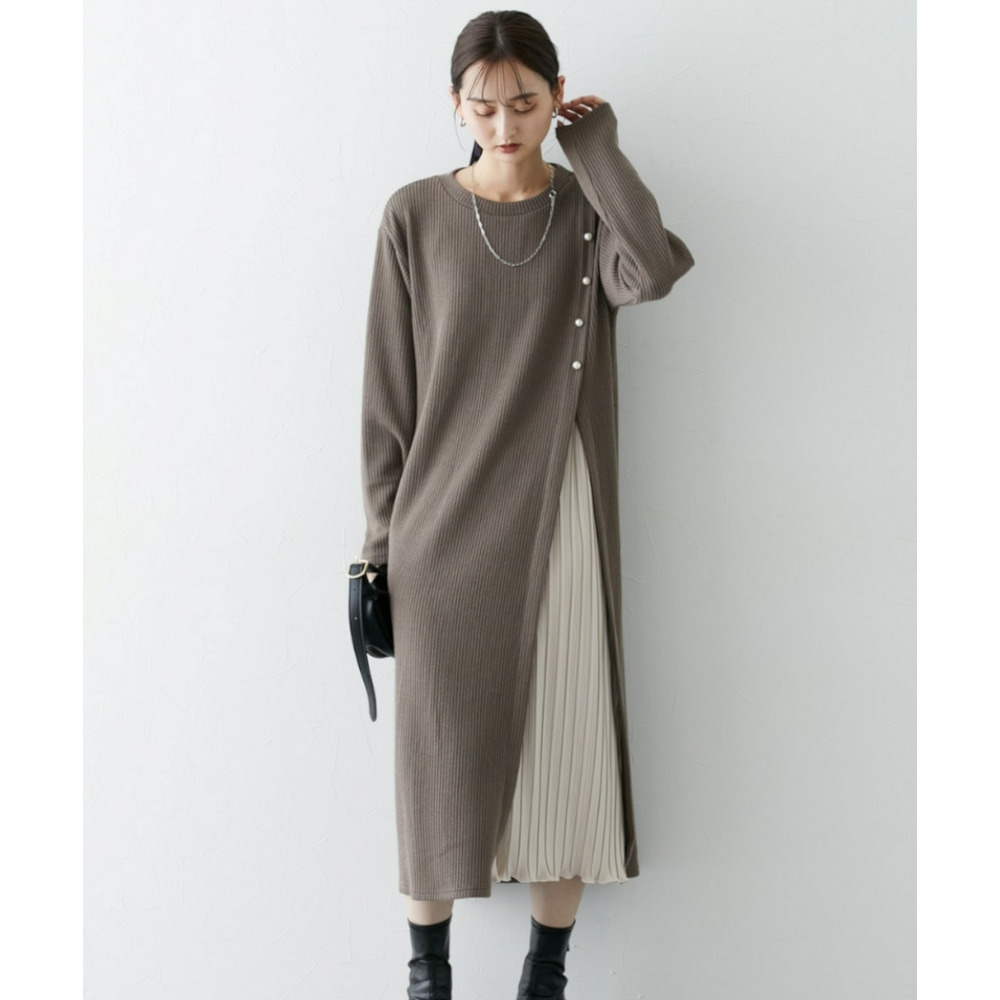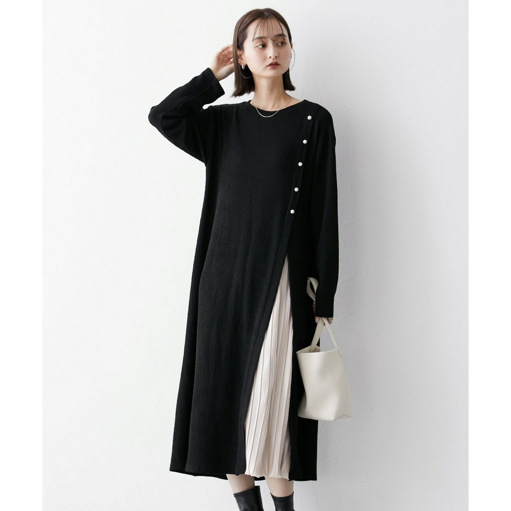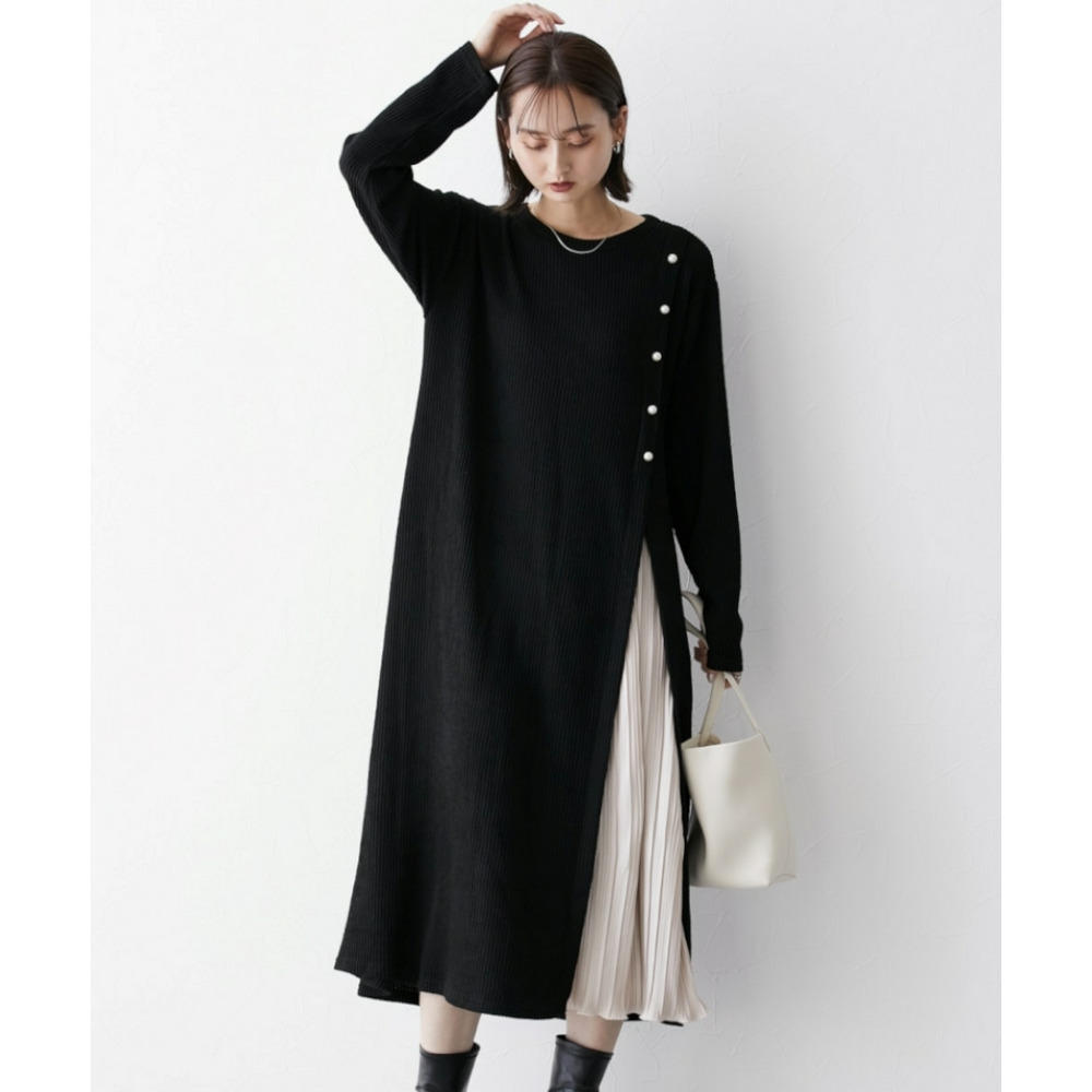 ふんわりリブニットソープリーツ切替ワンピース 大きいサイズ