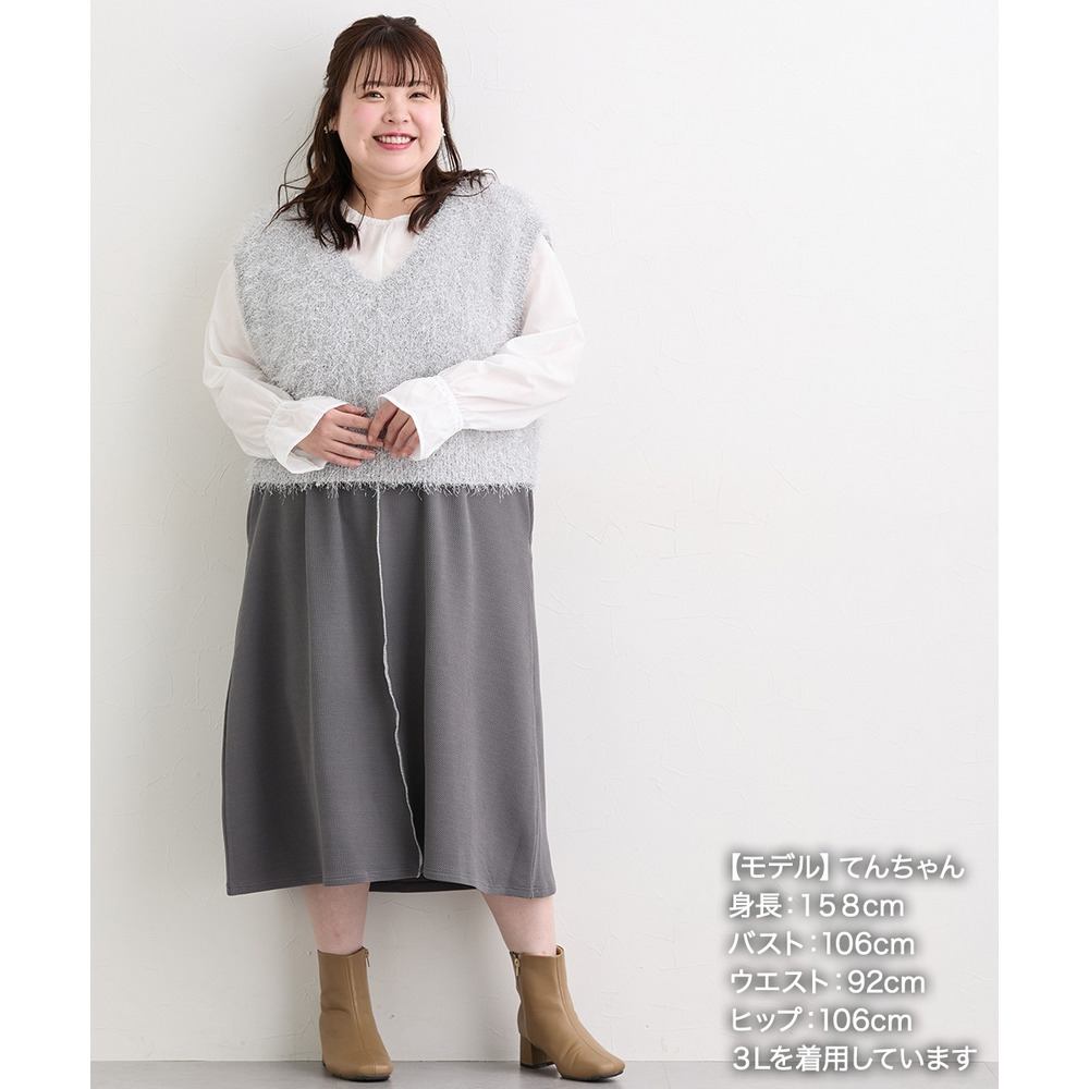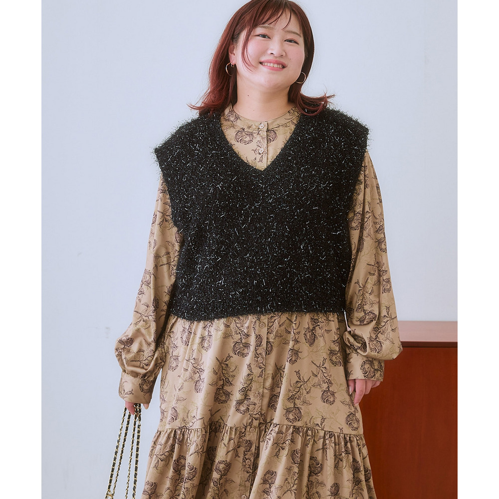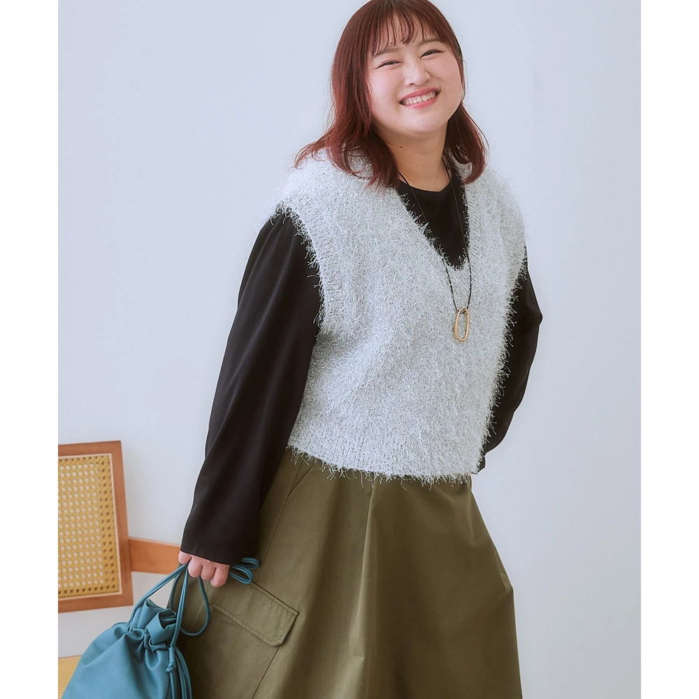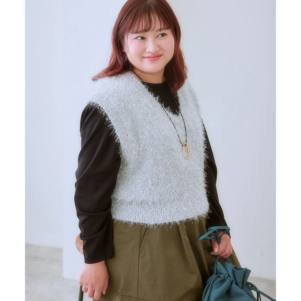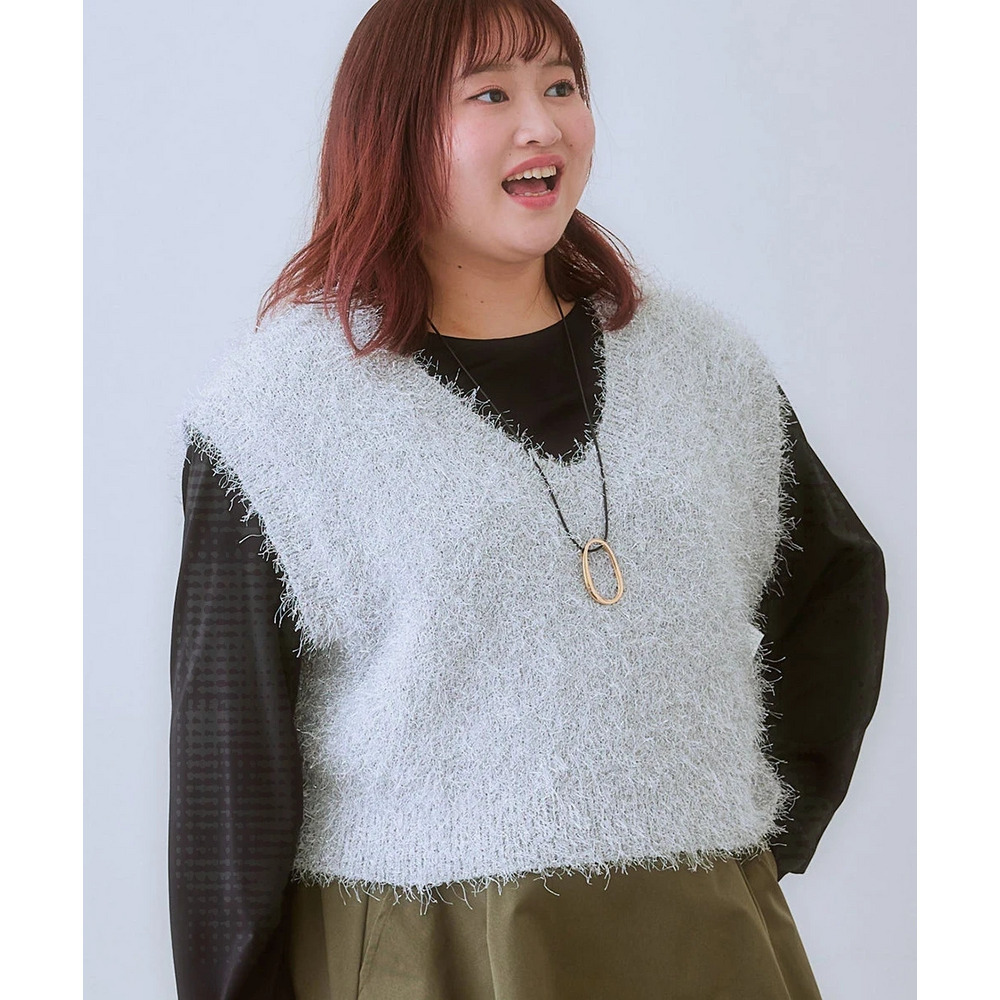 コンパクト丈ラメシャギーニットベスト 大きいサイズ