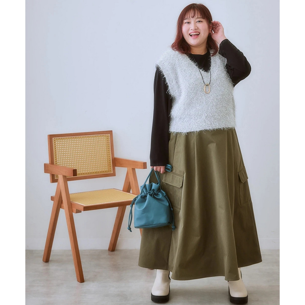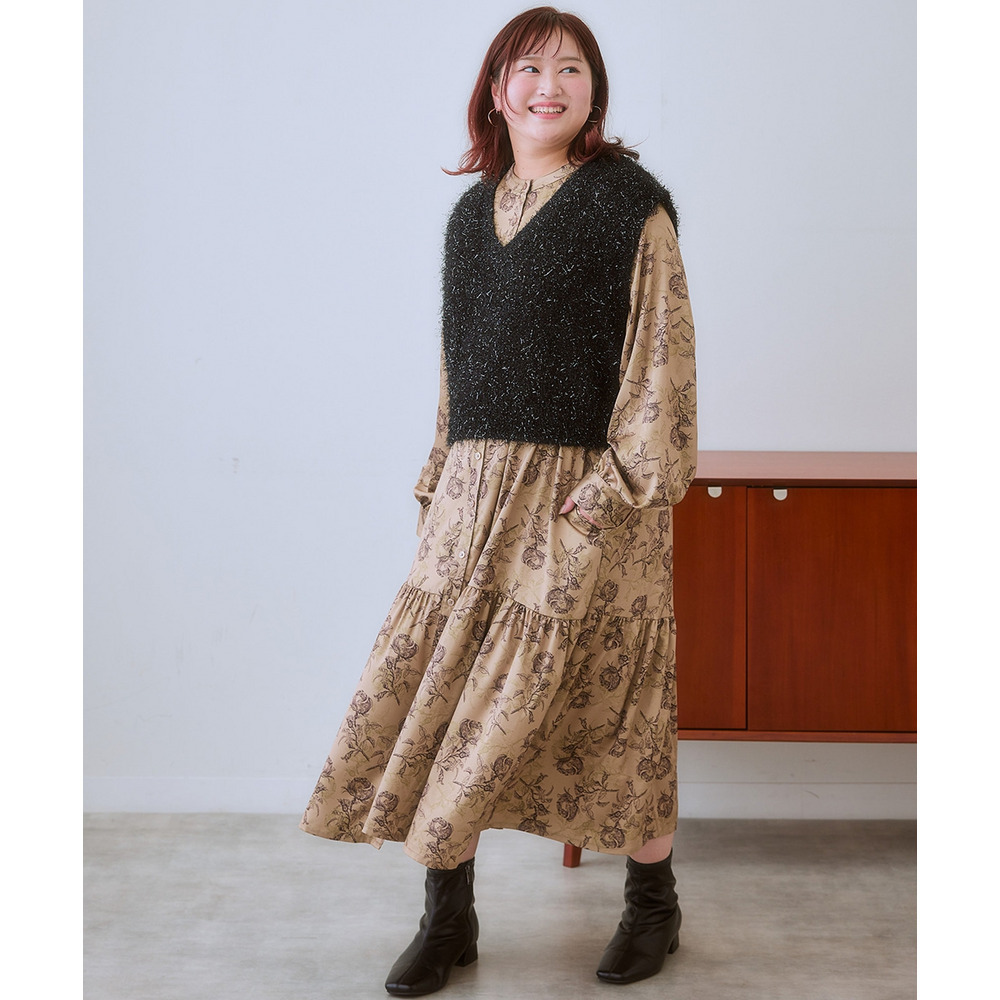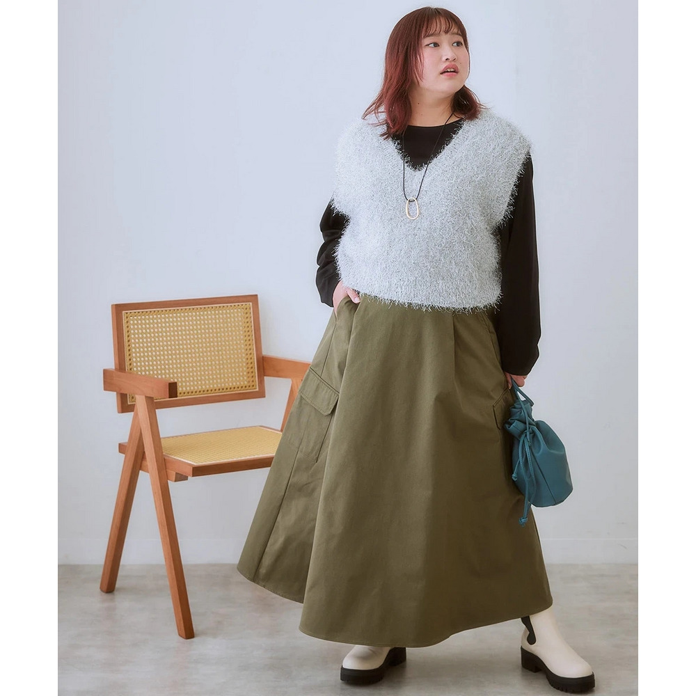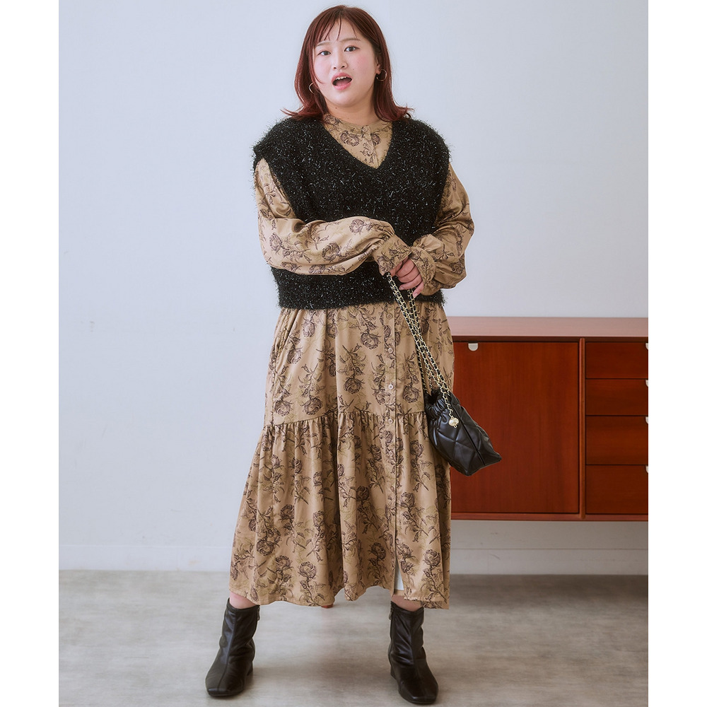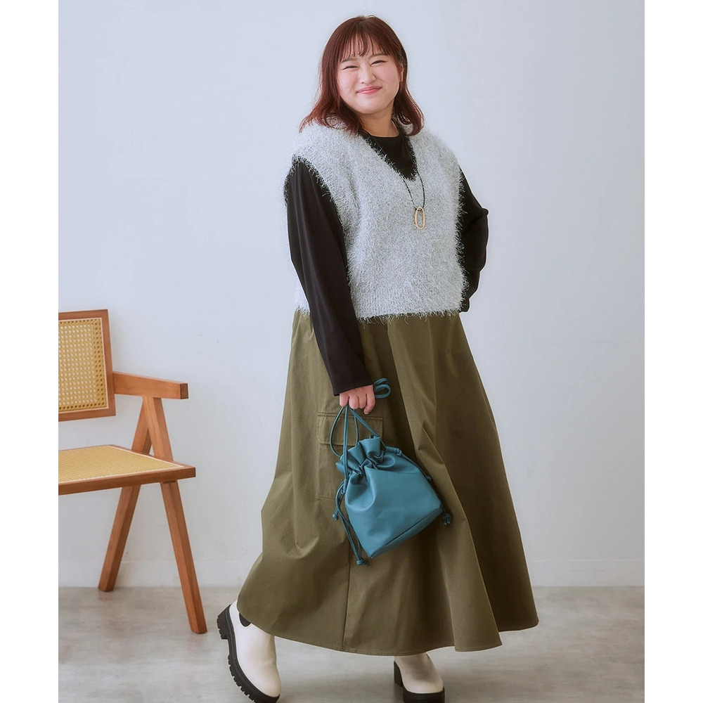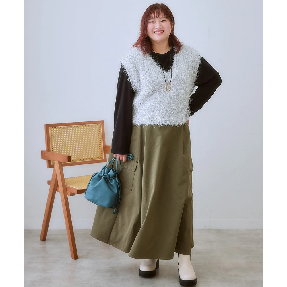 コンパクト丈ラメシャギーニットベスト 大きいサイズ