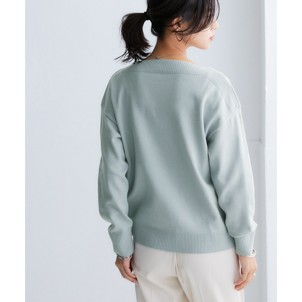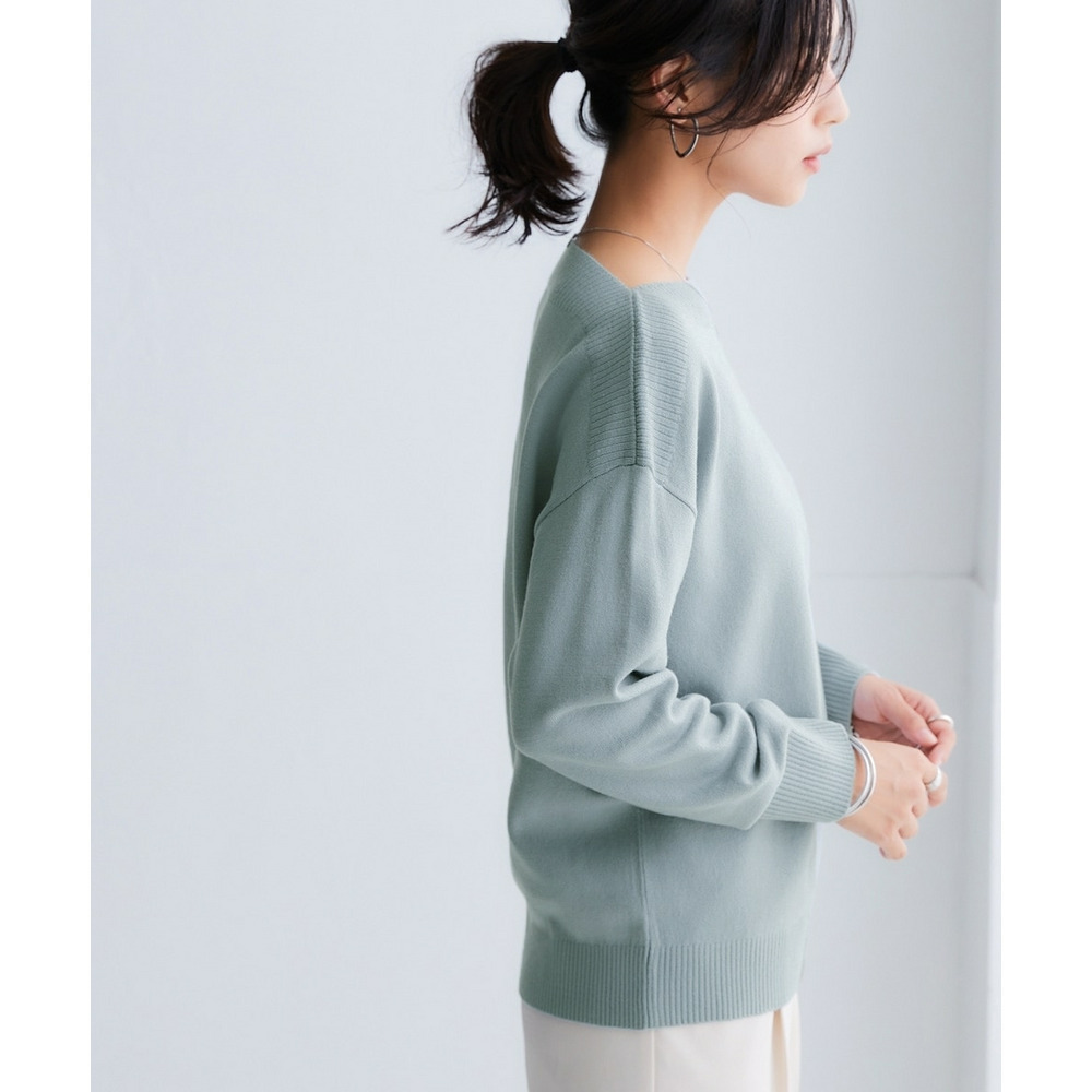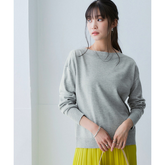 アクセントになる衿まわりの編地切替がさり気なくおしゃれ感を演出。オーバーサイズでゆるっとシルエットが大人可愛い1枚。