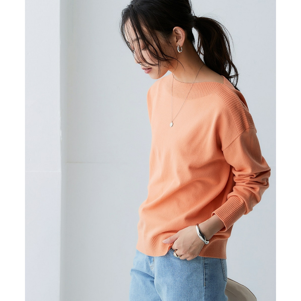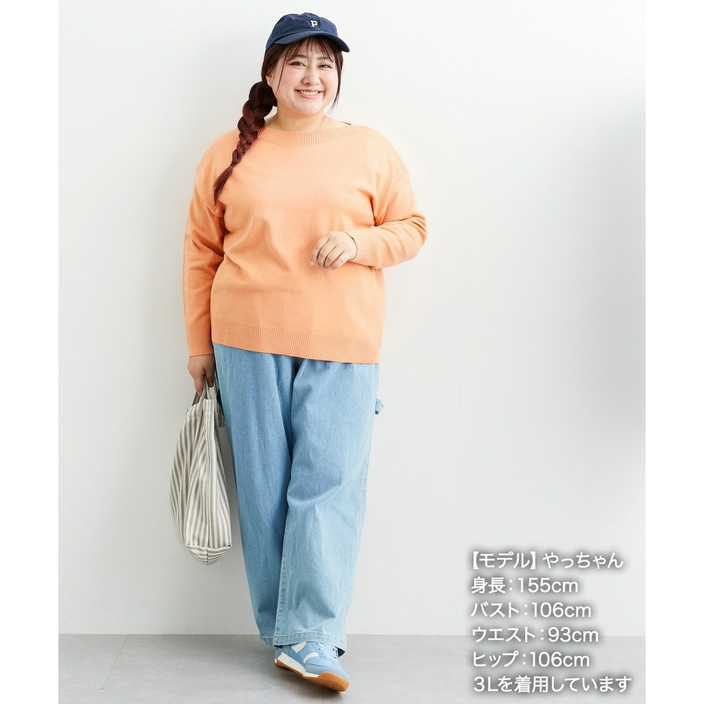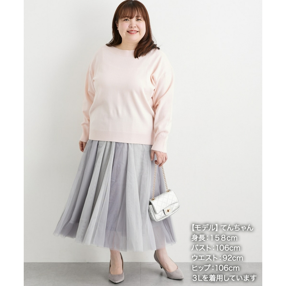 【花粉がつきにくい】 編地切替ボートネックニット 大きいサイズ