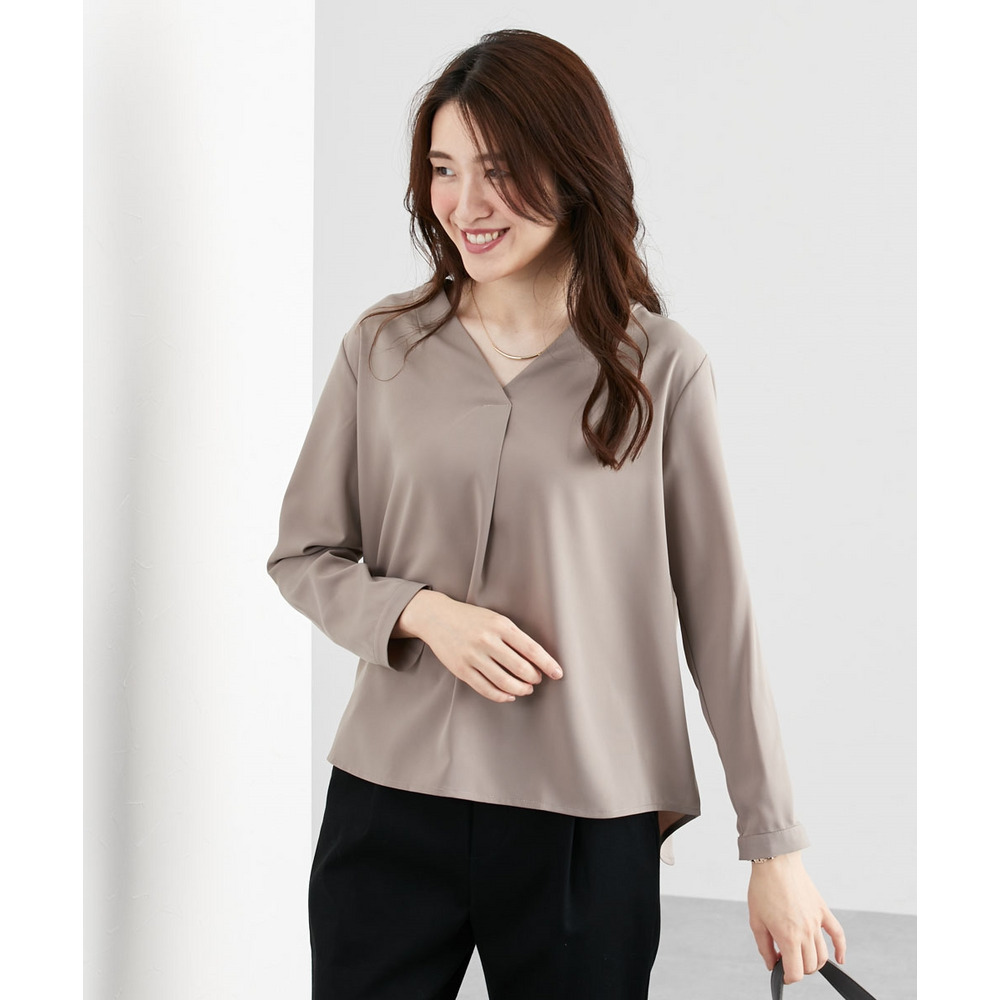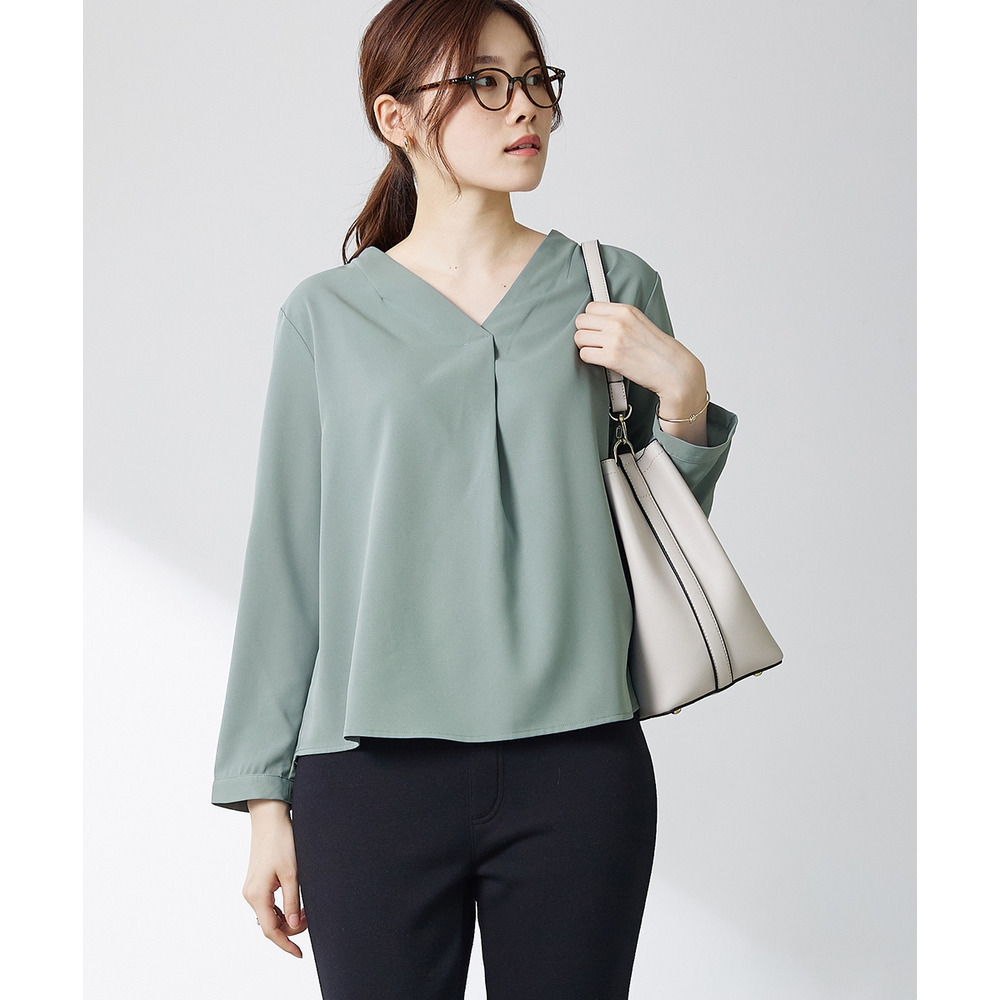Vネックが衿元をシャープに見せる♪スーツインとしても単品でも便利なブラウスです
