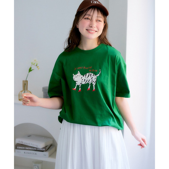 綿100%ゆるシルエットプリントTシャツ(接触冷感・UVカット) 大きいサイズ