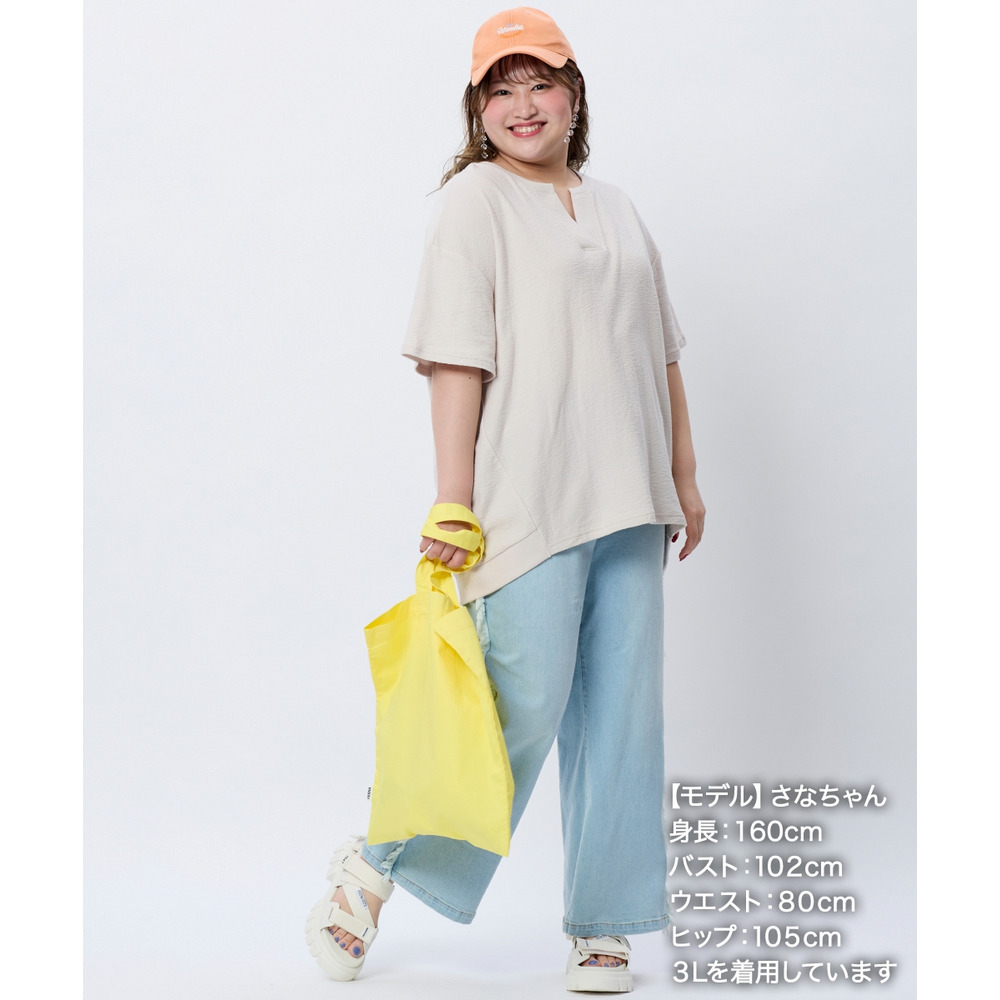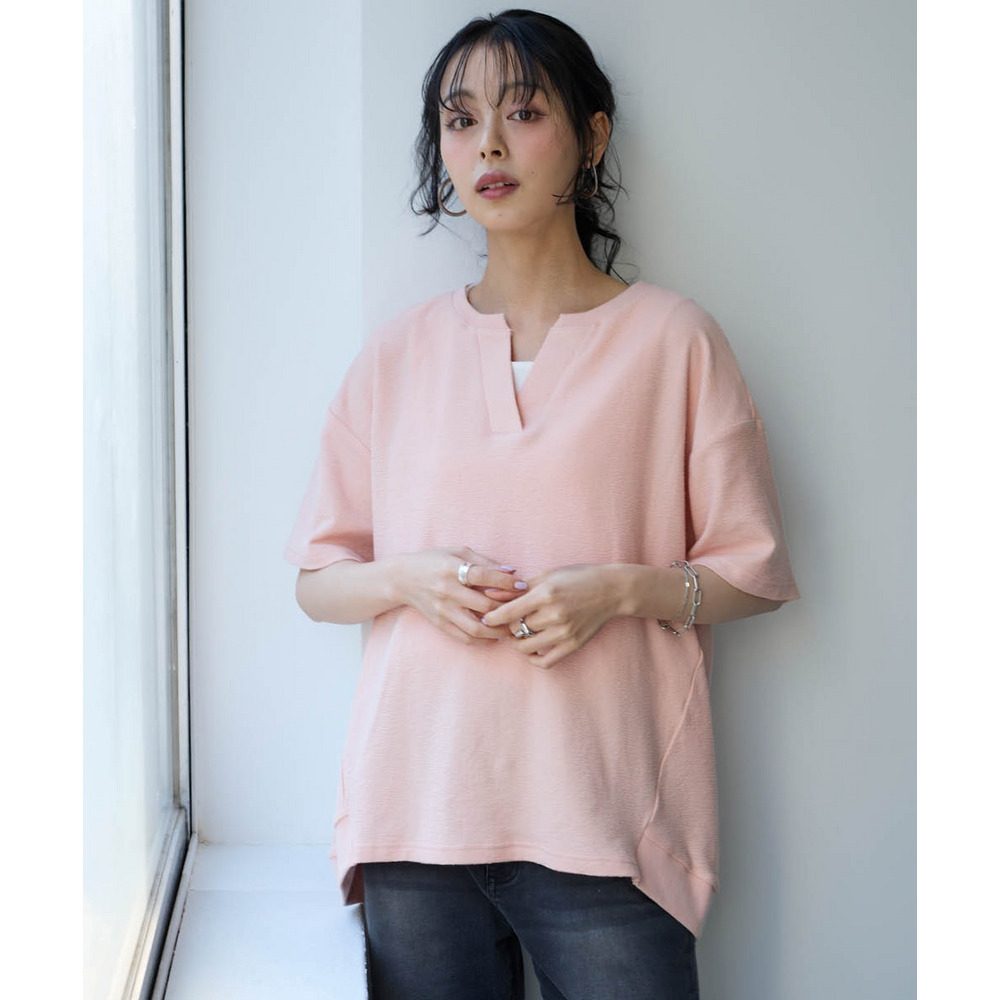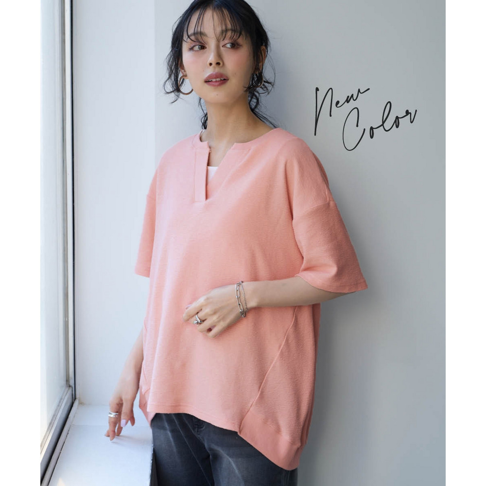 綿100%やわらかドライタッチパイル5分袖キーネックゆるプルオーバー(吸汗速乾) 大きいサイズ