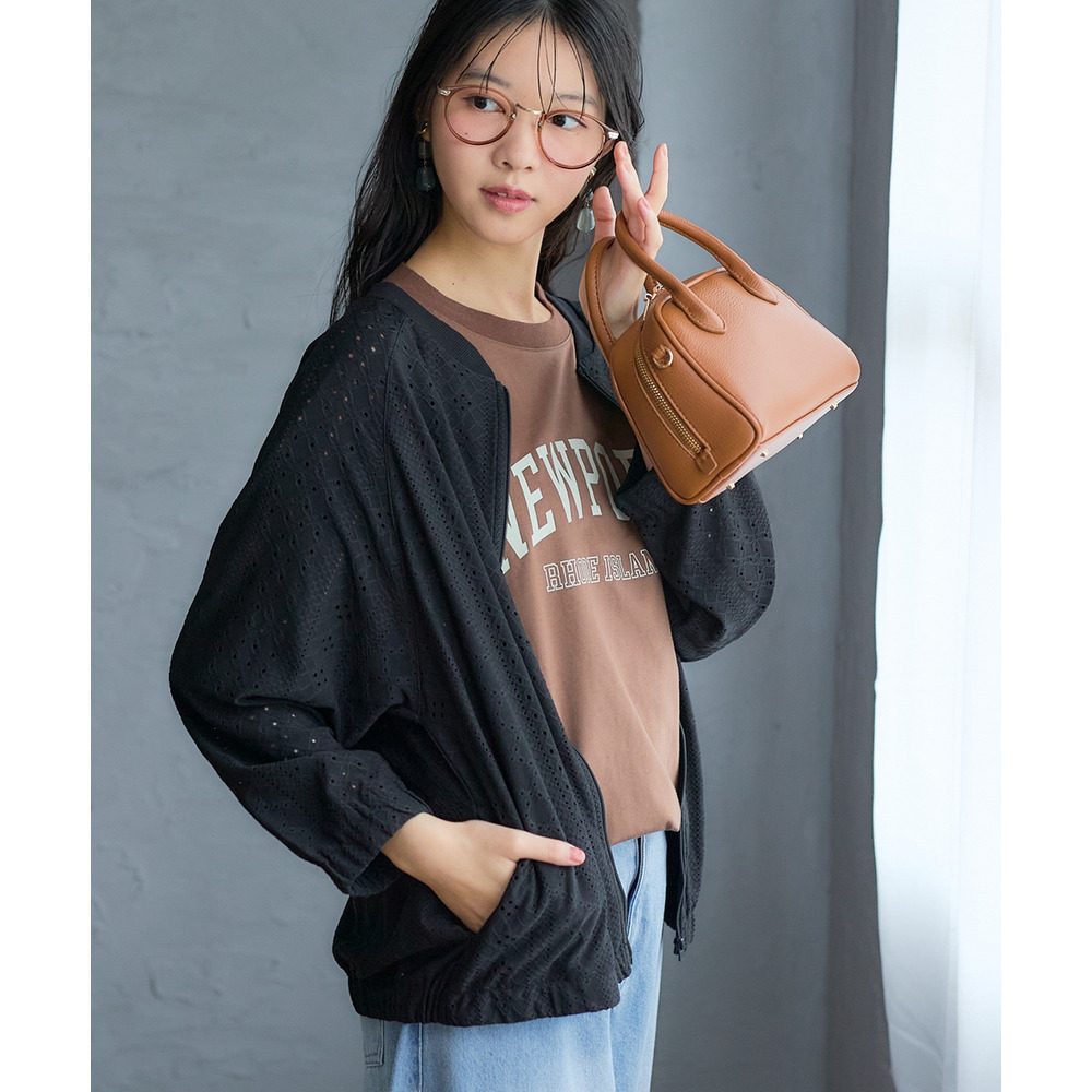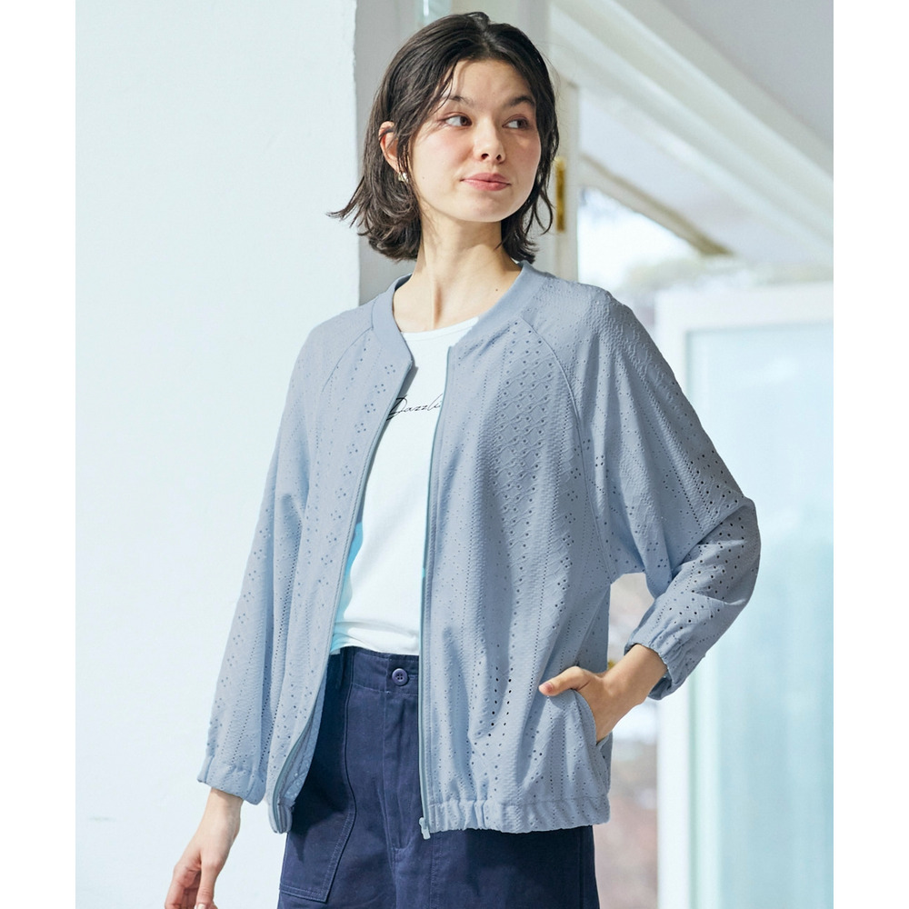 カットレース軽やかジップアップブルゾン 大きいサイズ