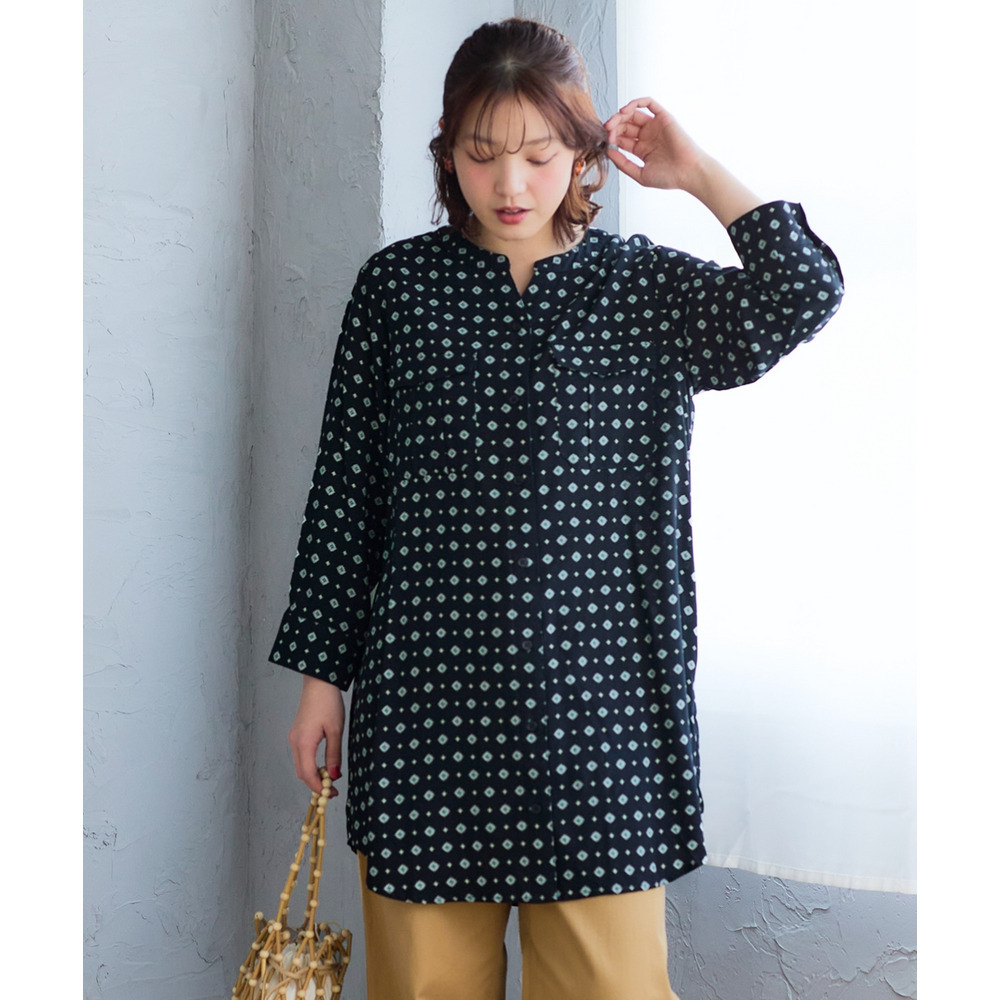 接触冷感うすカル柔らか7分袖ダブルポケットシャツチュニック 大きいサイズ