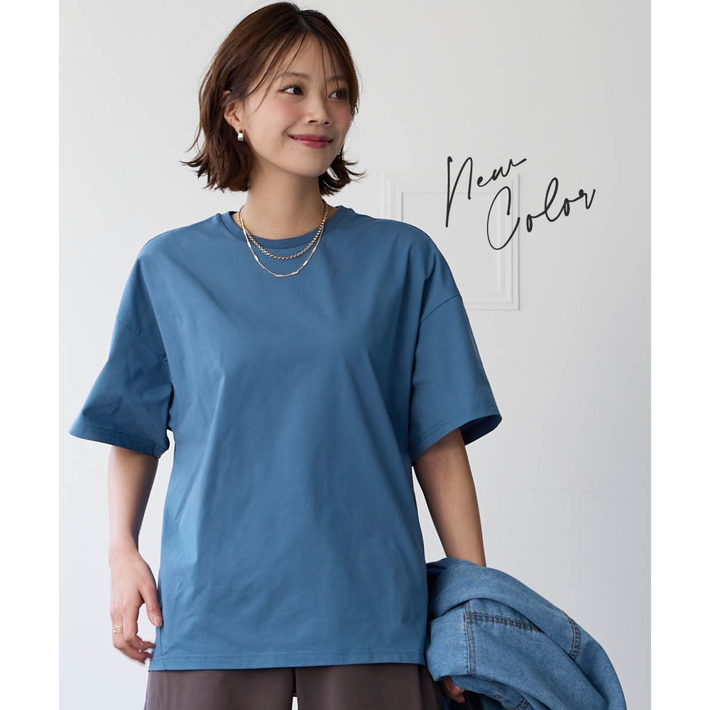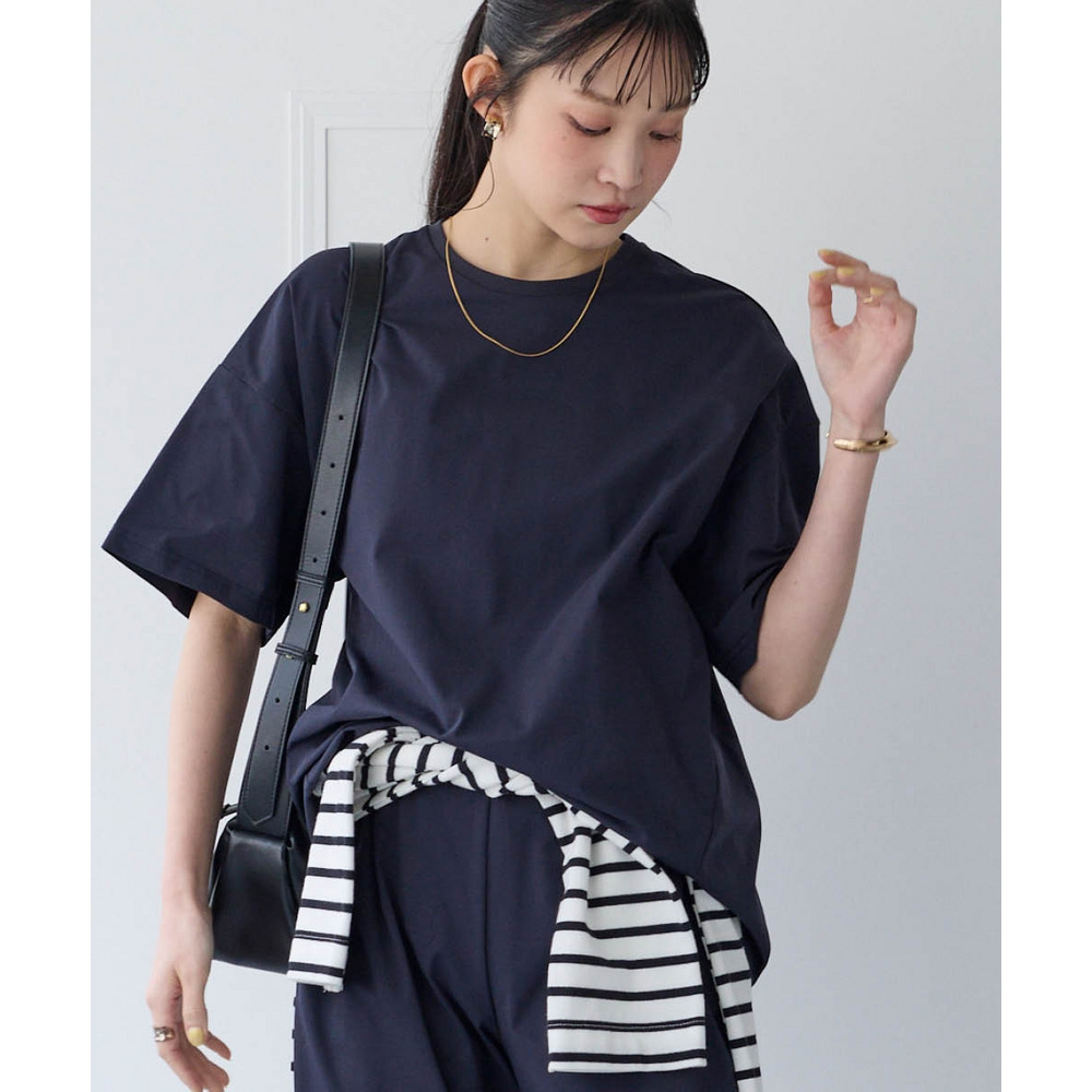 シンプルなクルーネックでカジュアルもキレイ目も両方OK。